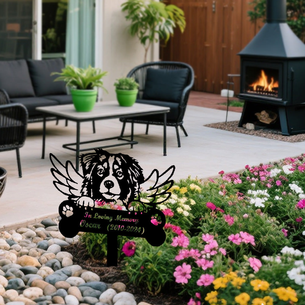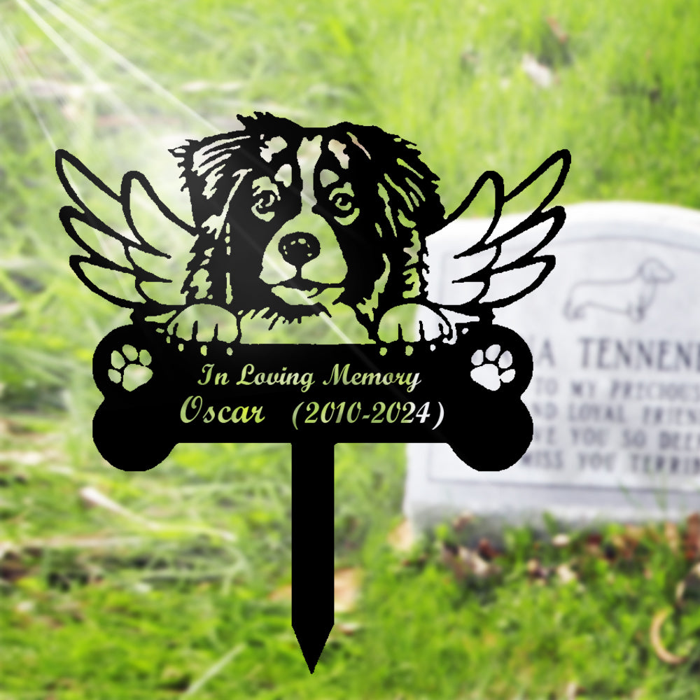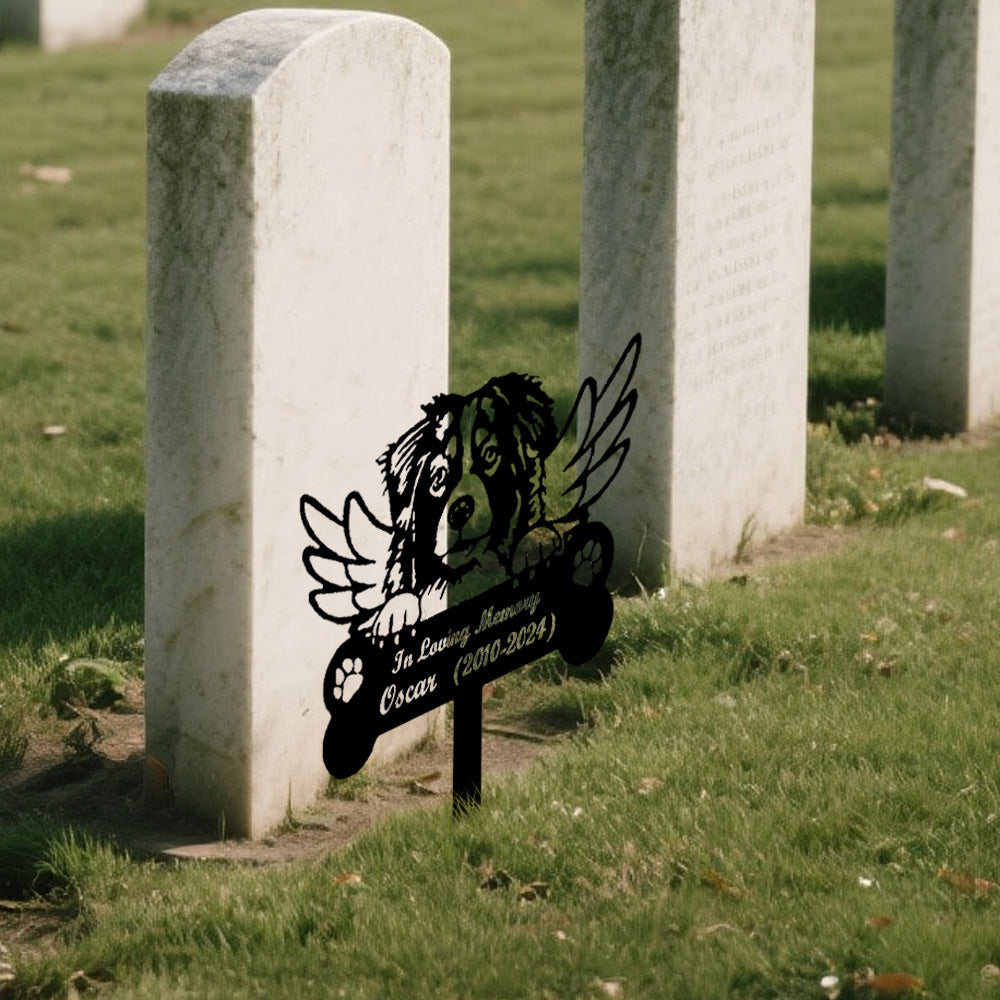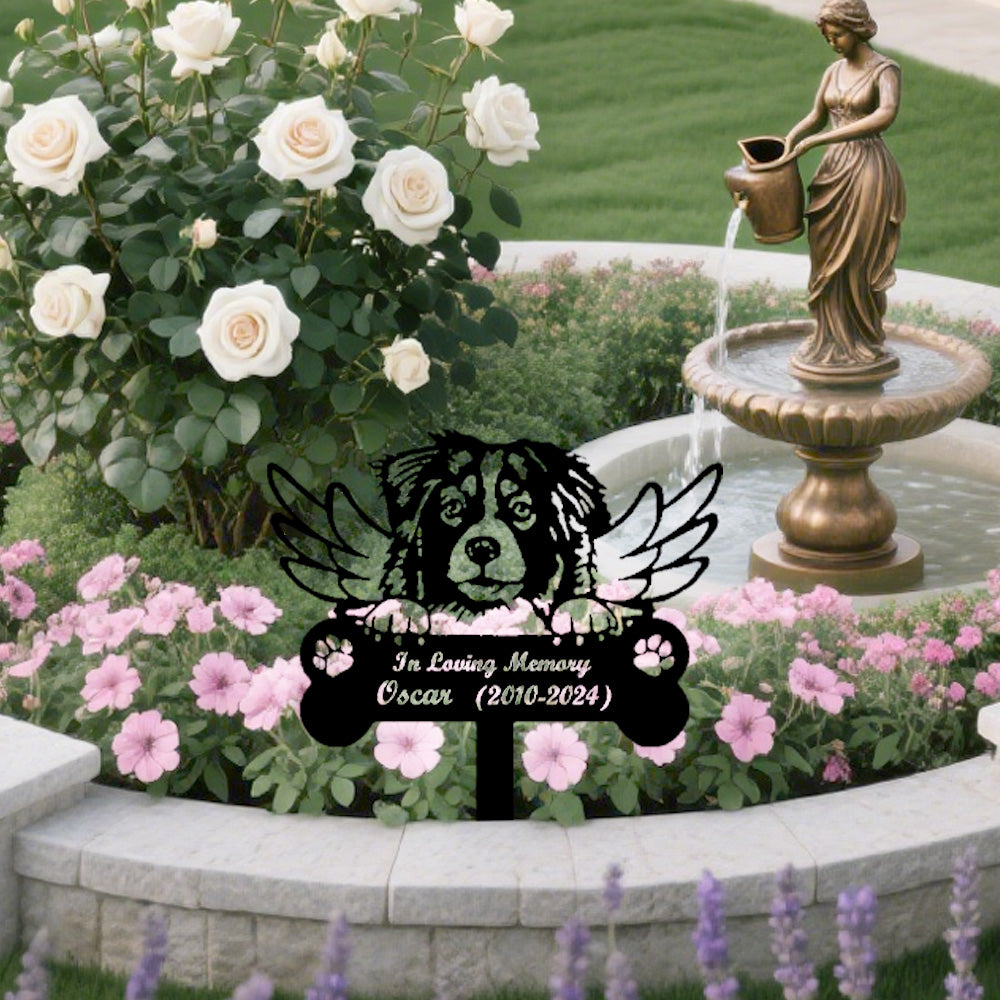 Australian Shepherd Dog Custom Memorial Stake with Wings