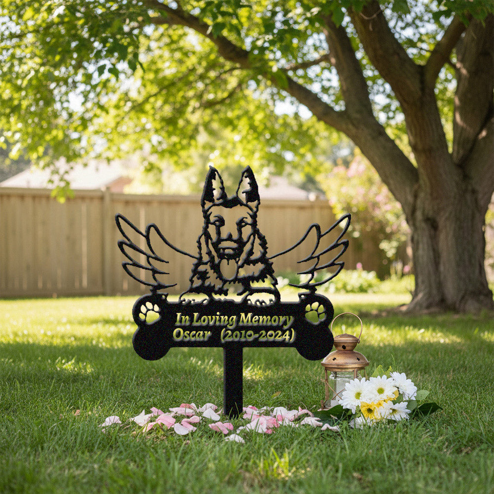 Belgian Laekenois Dog Custom Memorial Stake with Wings