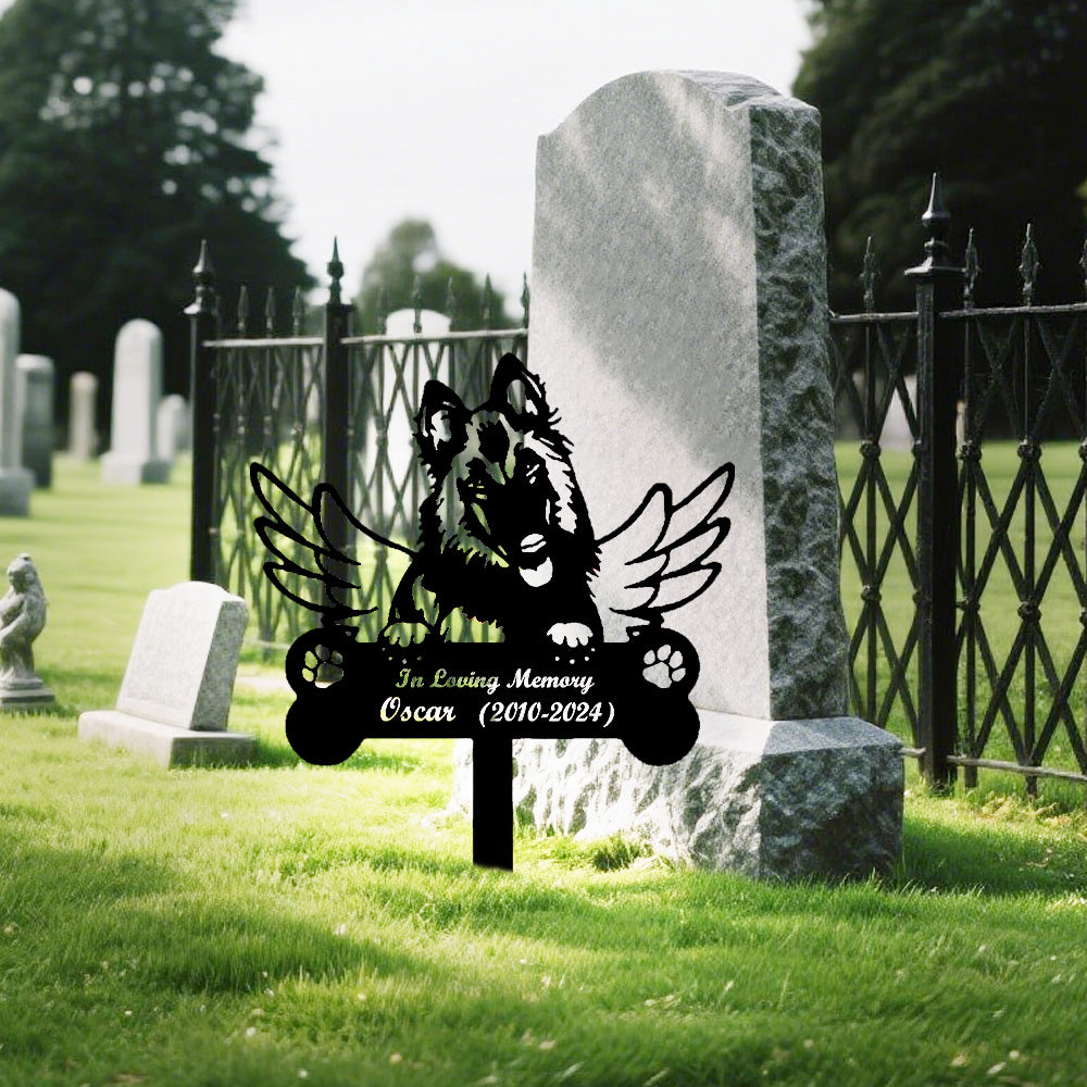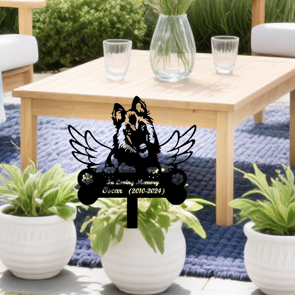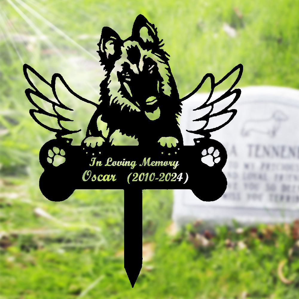 Belgian Sheepdog Custom Memorial Stake with Wings