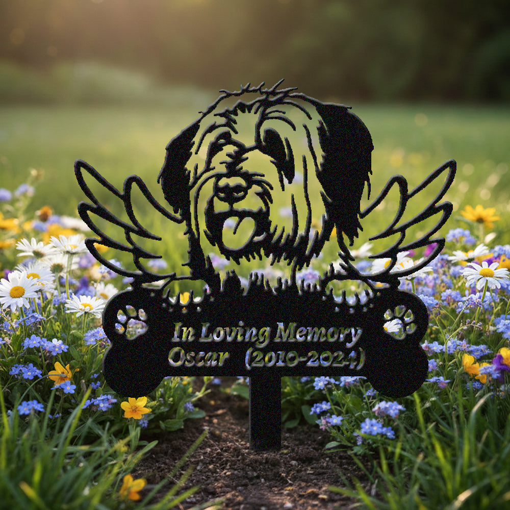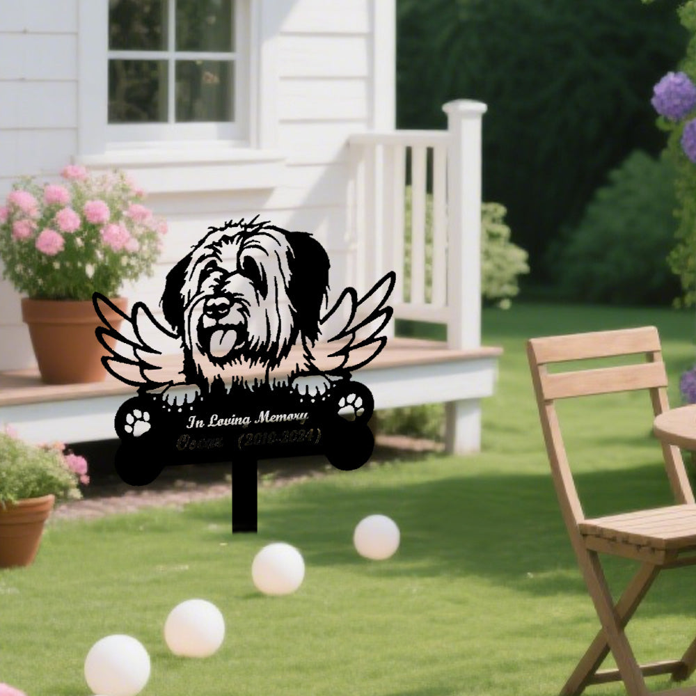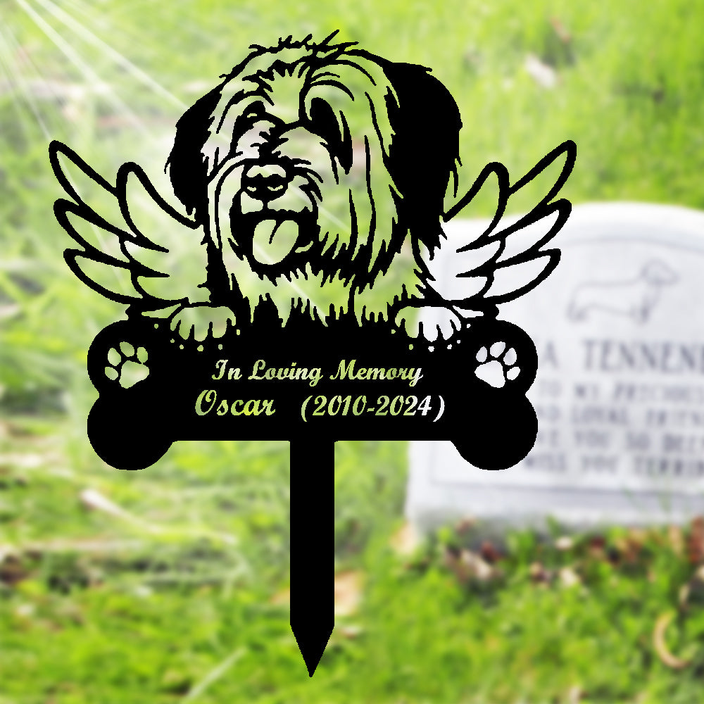 Briard Dog Custom Memorial Stake with Wings