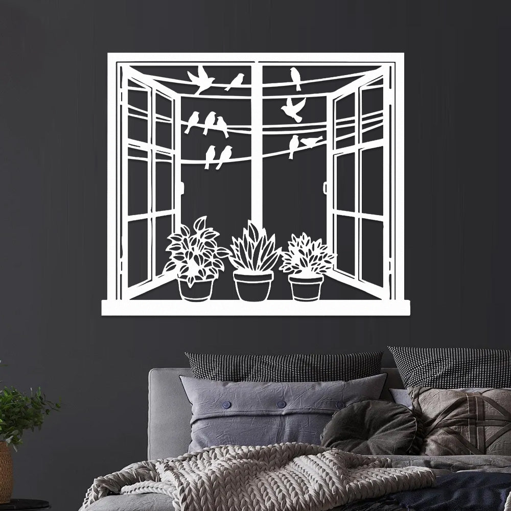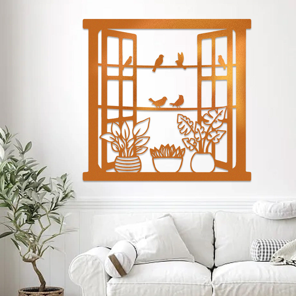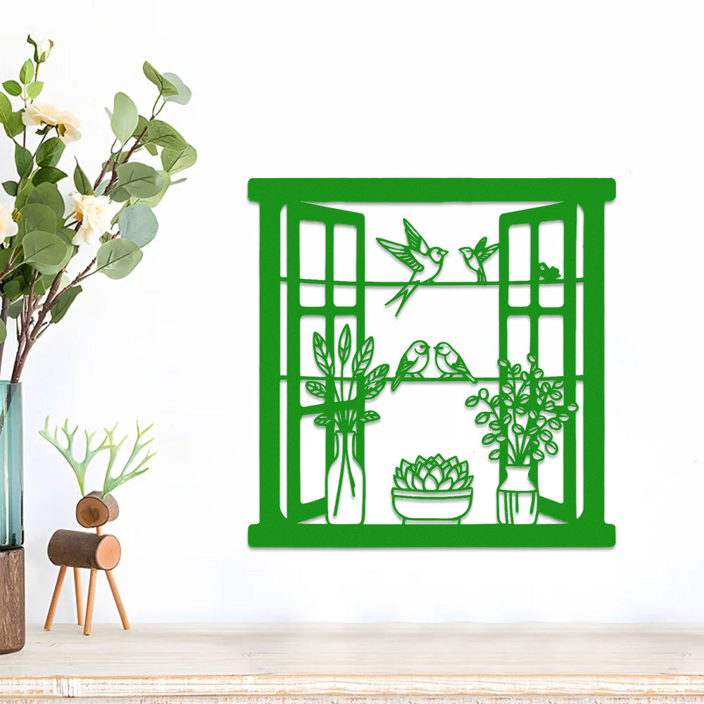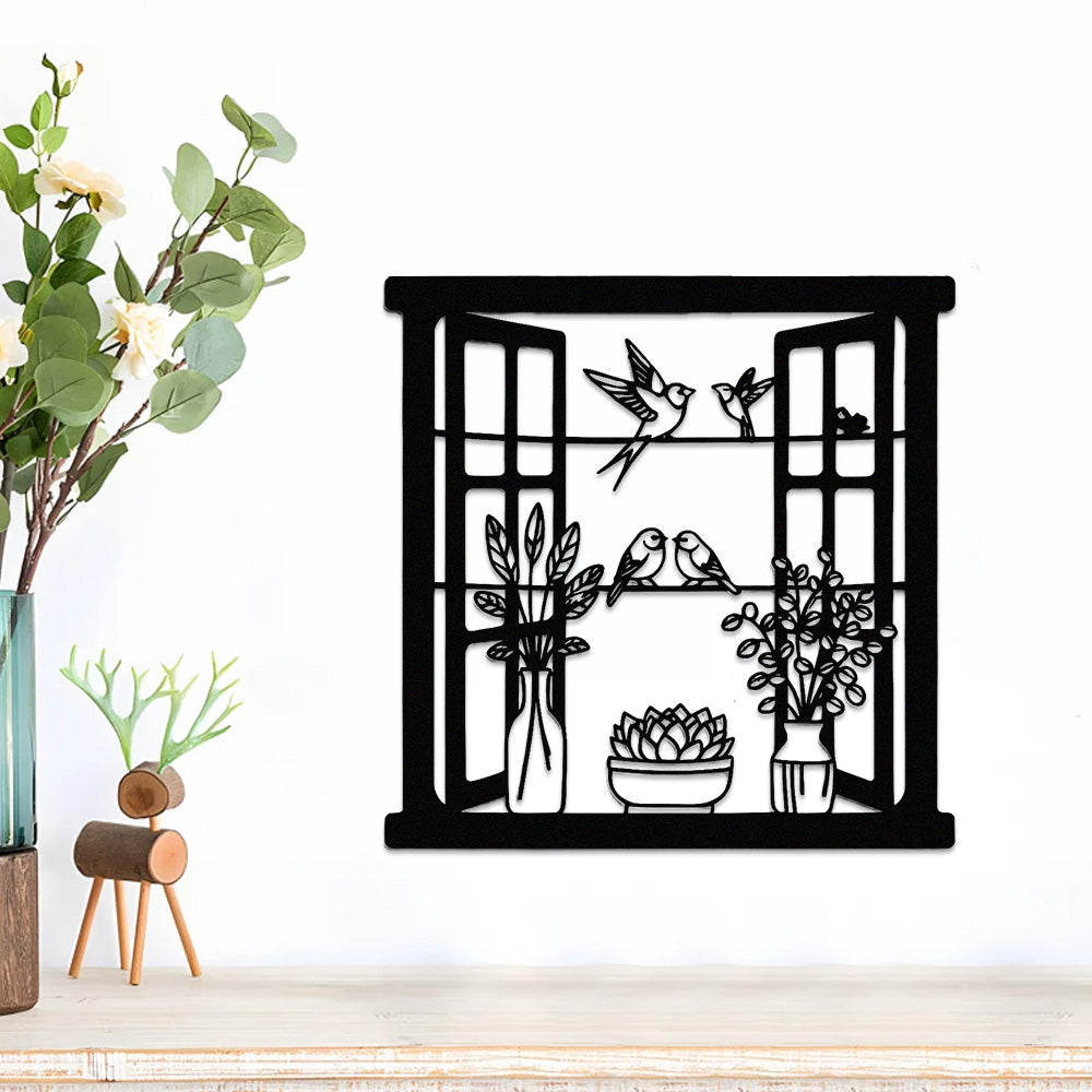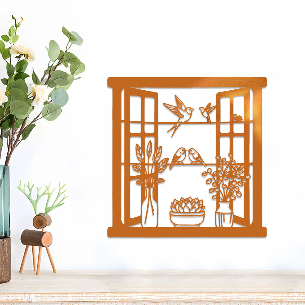 Bird Window Metal Wall Art
