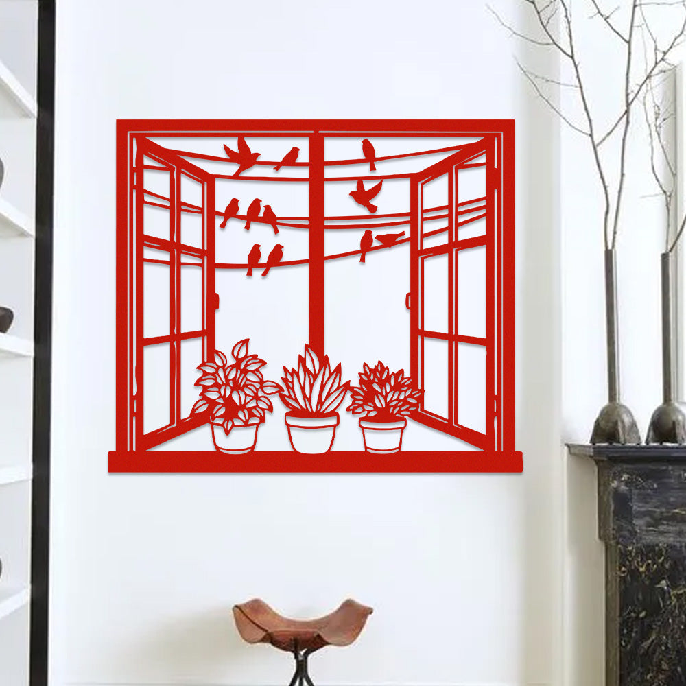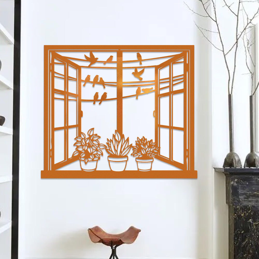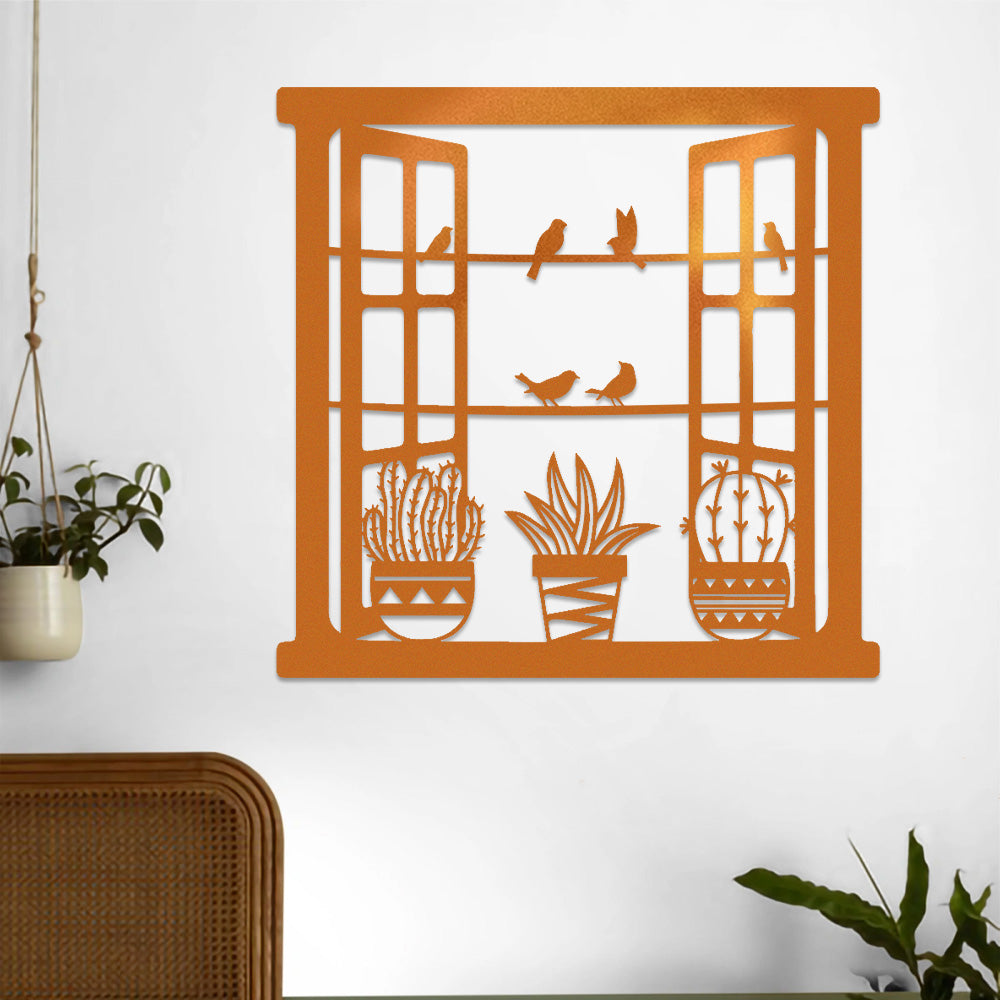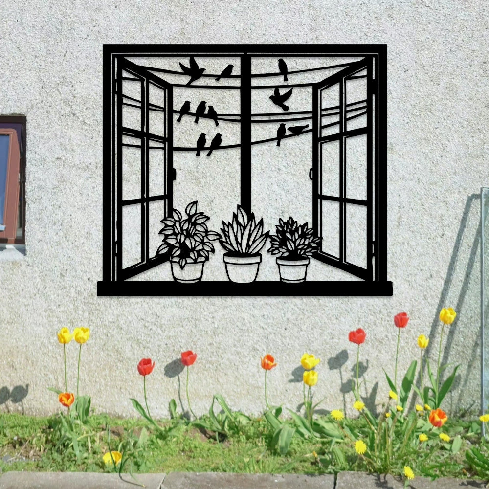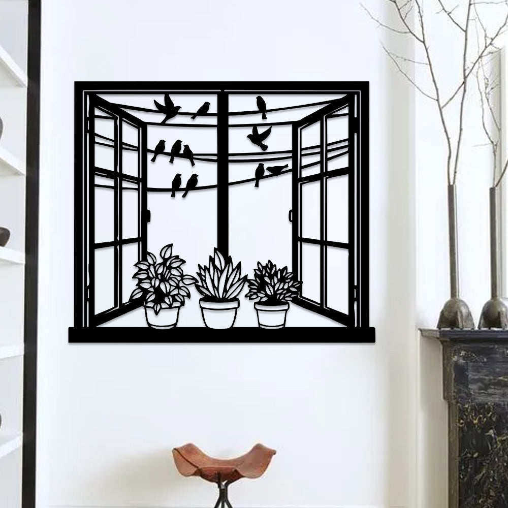 Bird Window Metal Wall Art