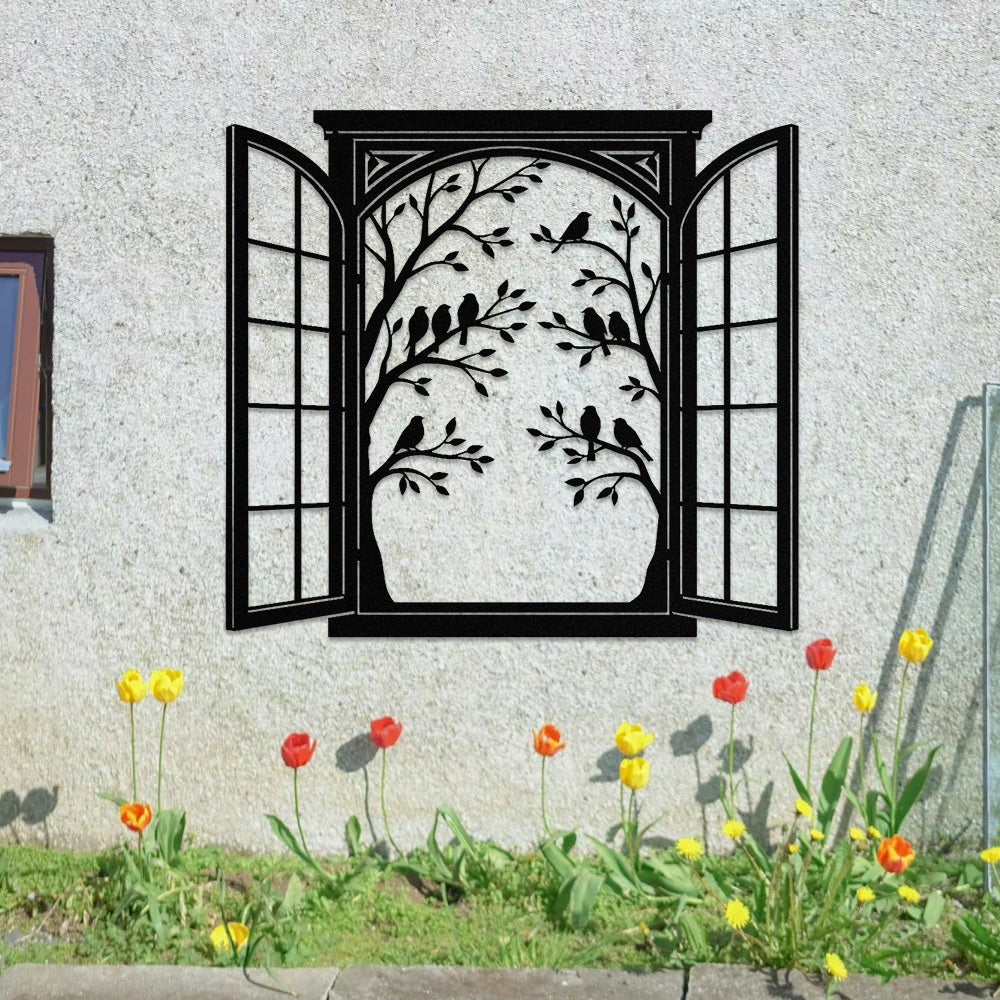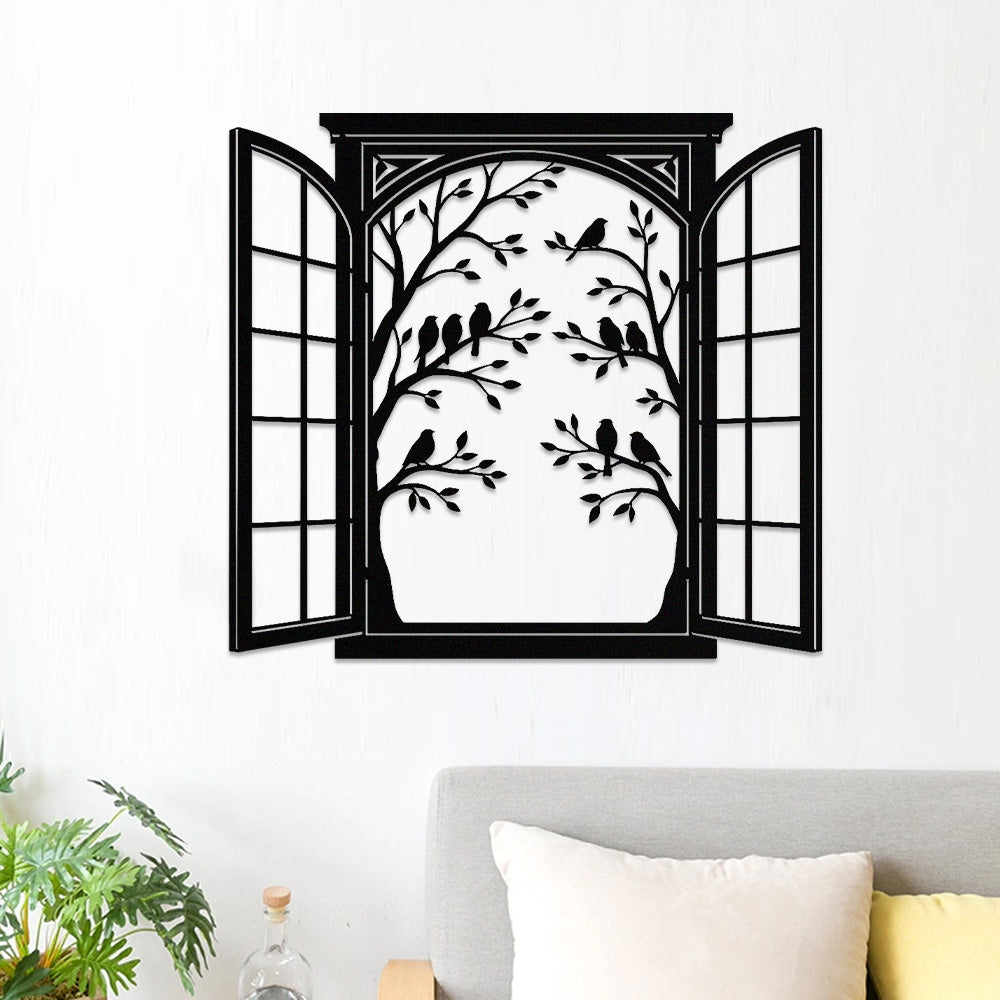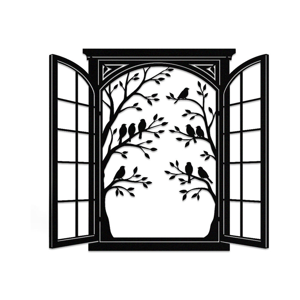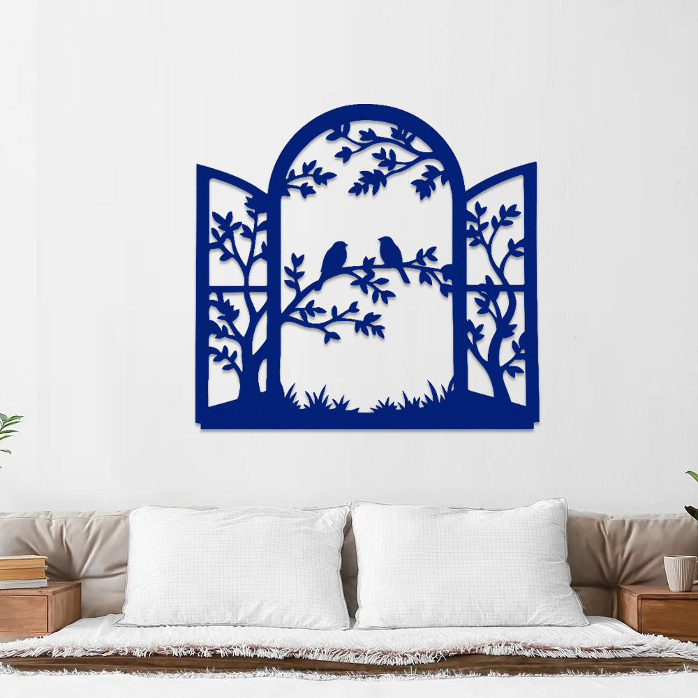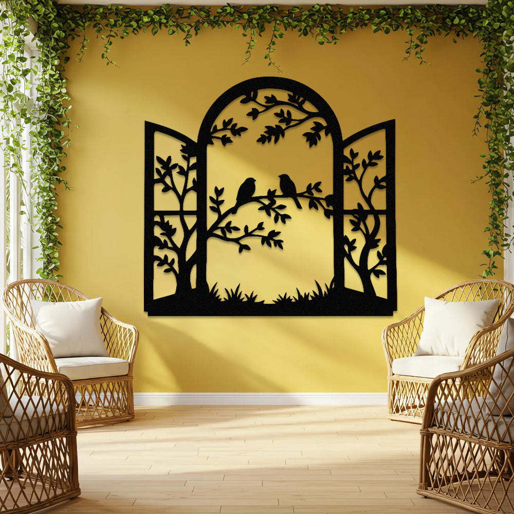 Bird Tree Window Metal Wall Art