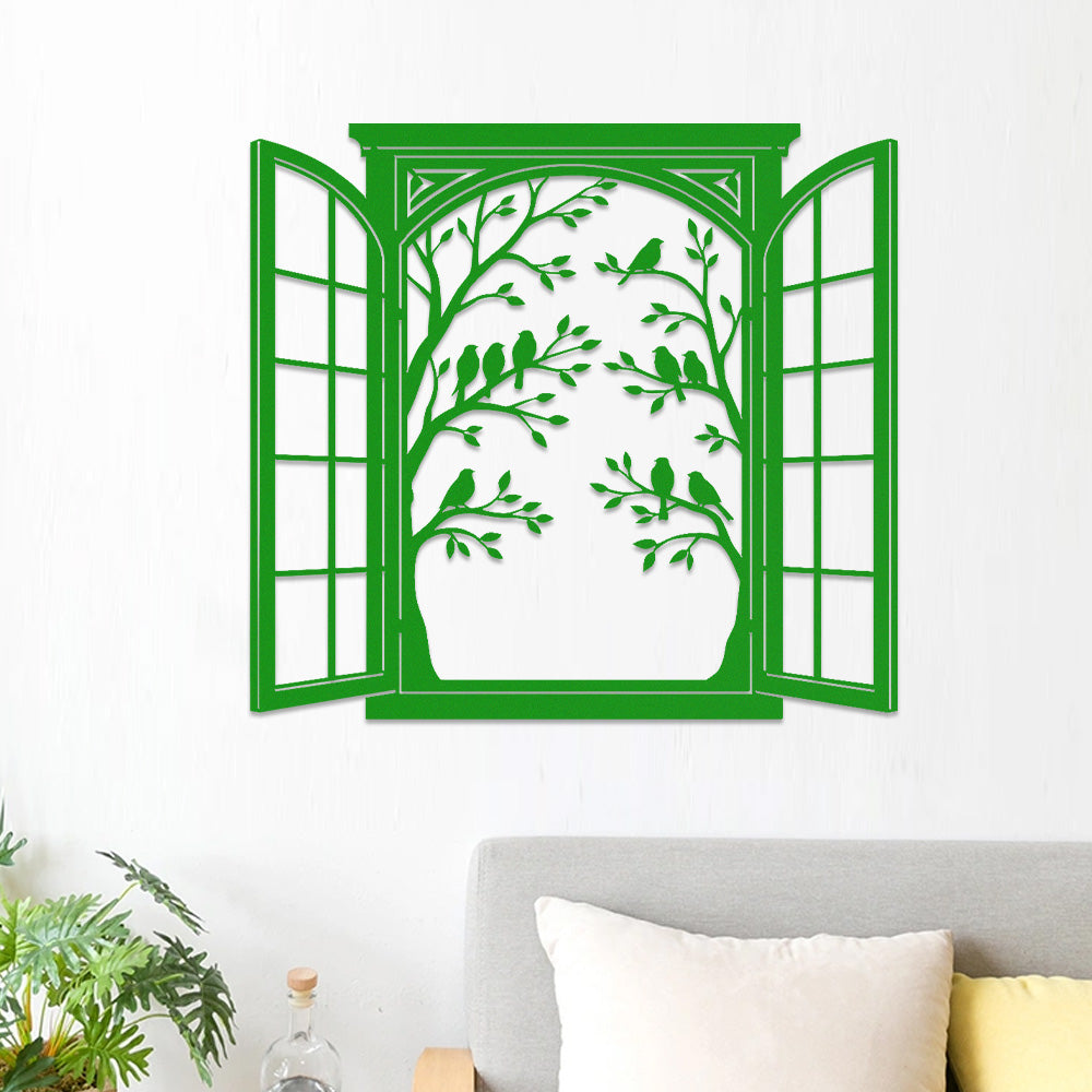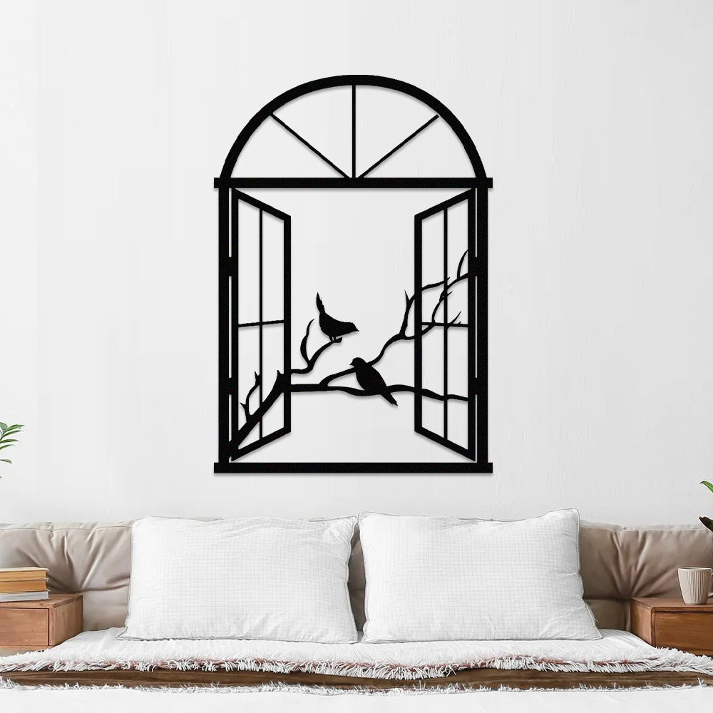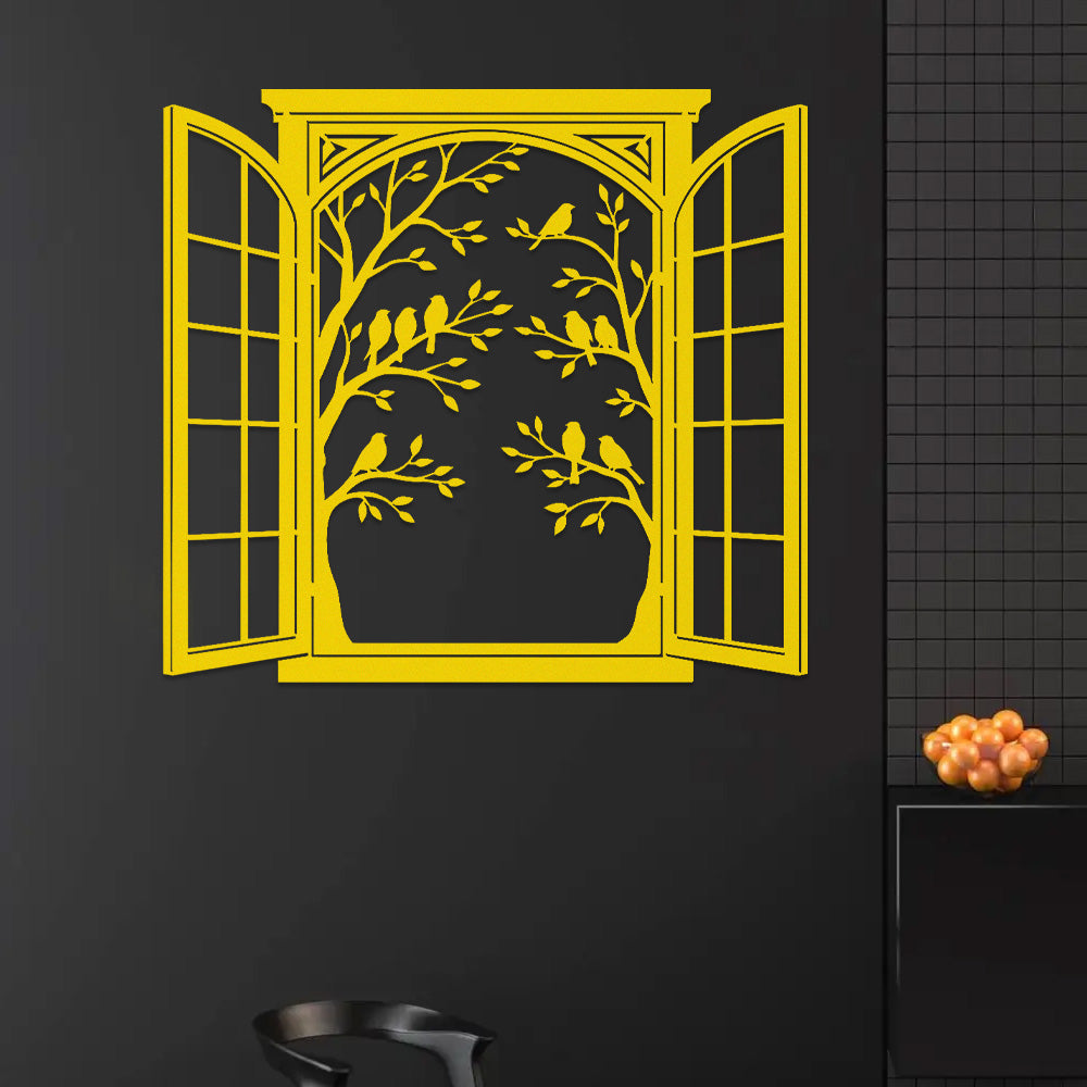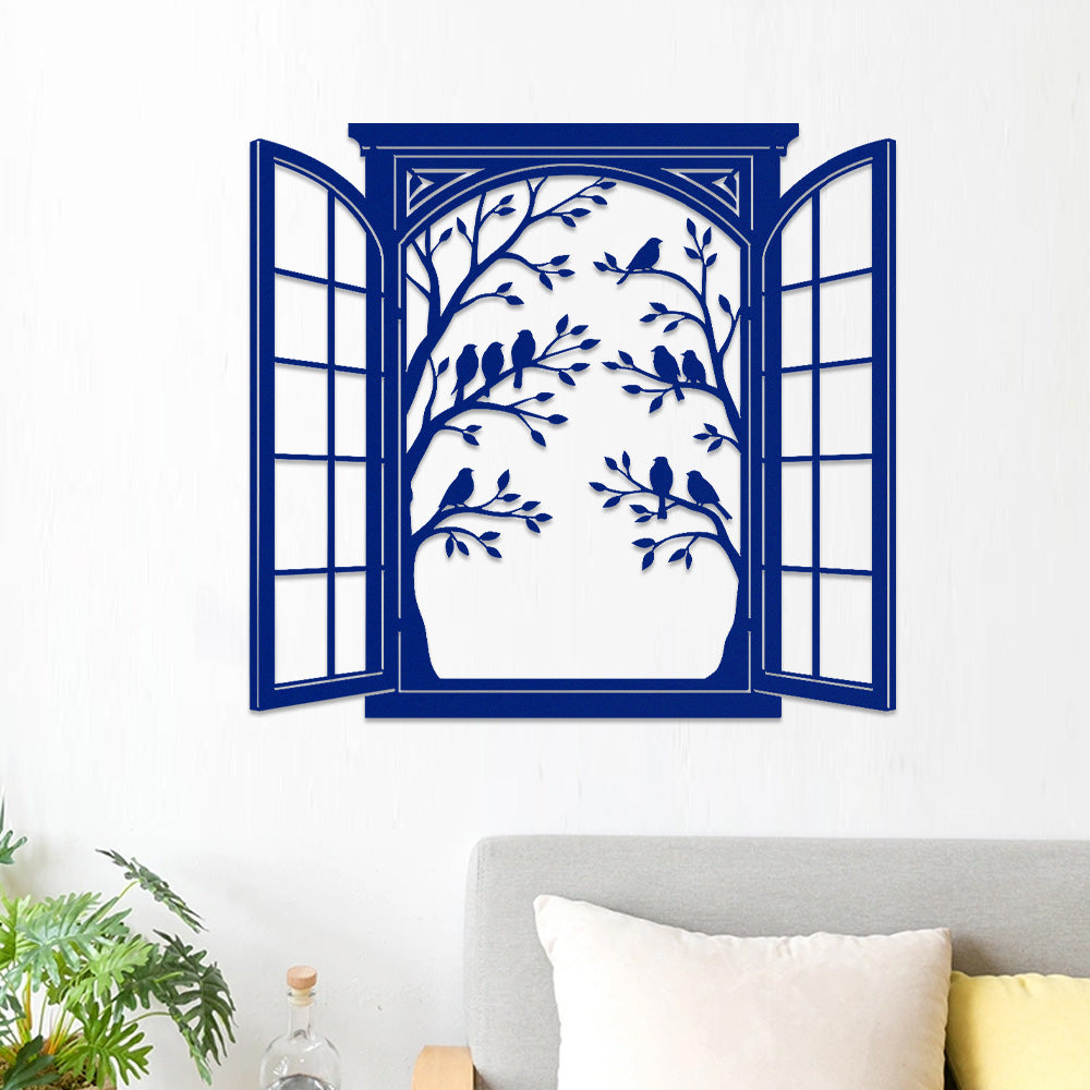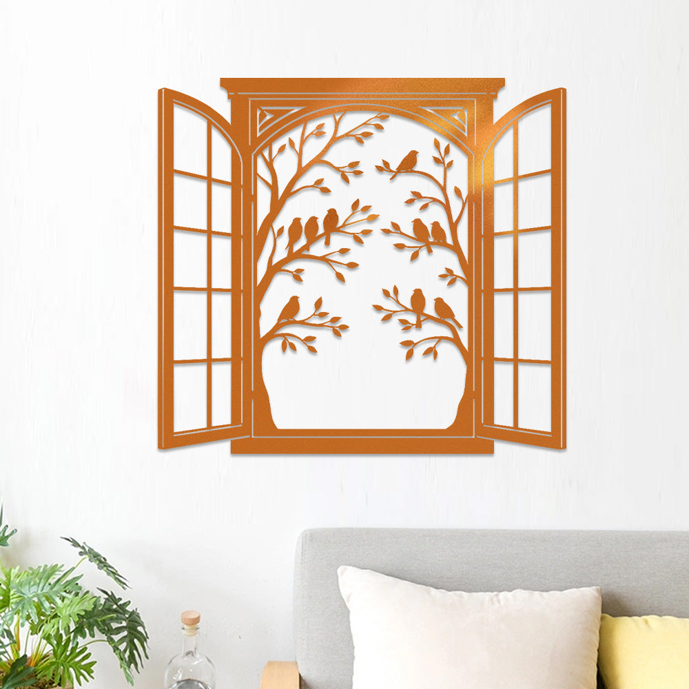 Bird Tree Window Metal Wall Art