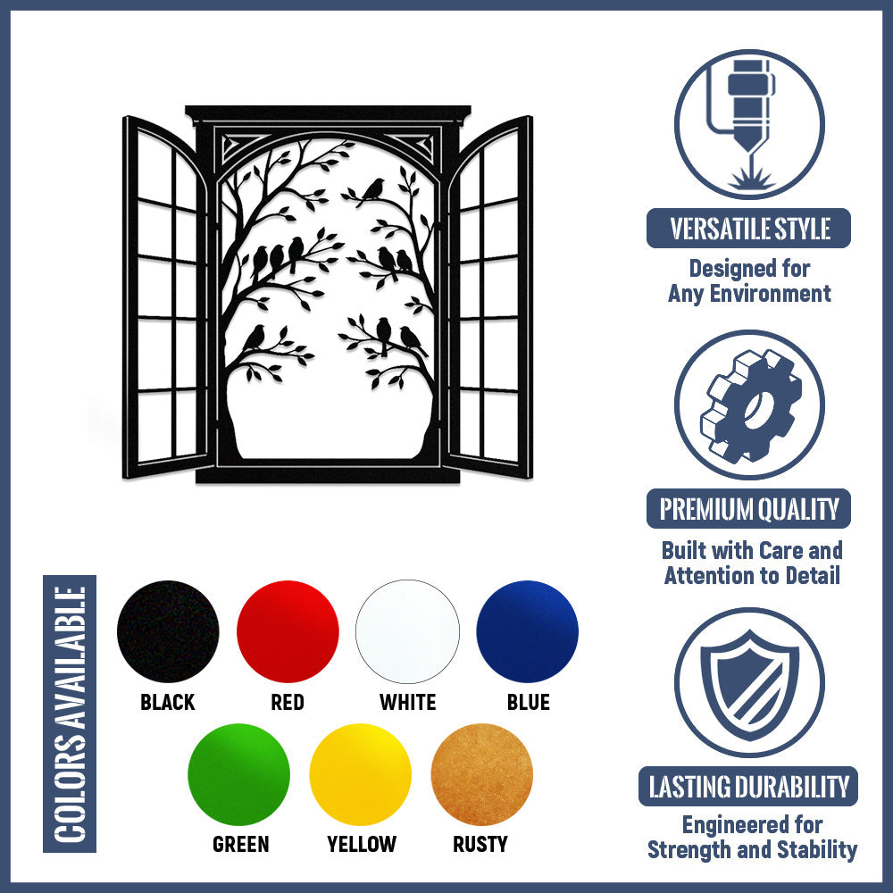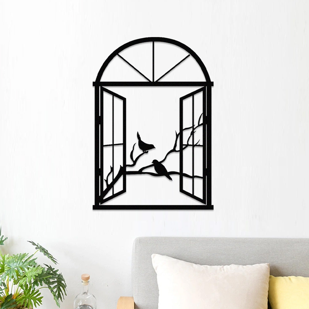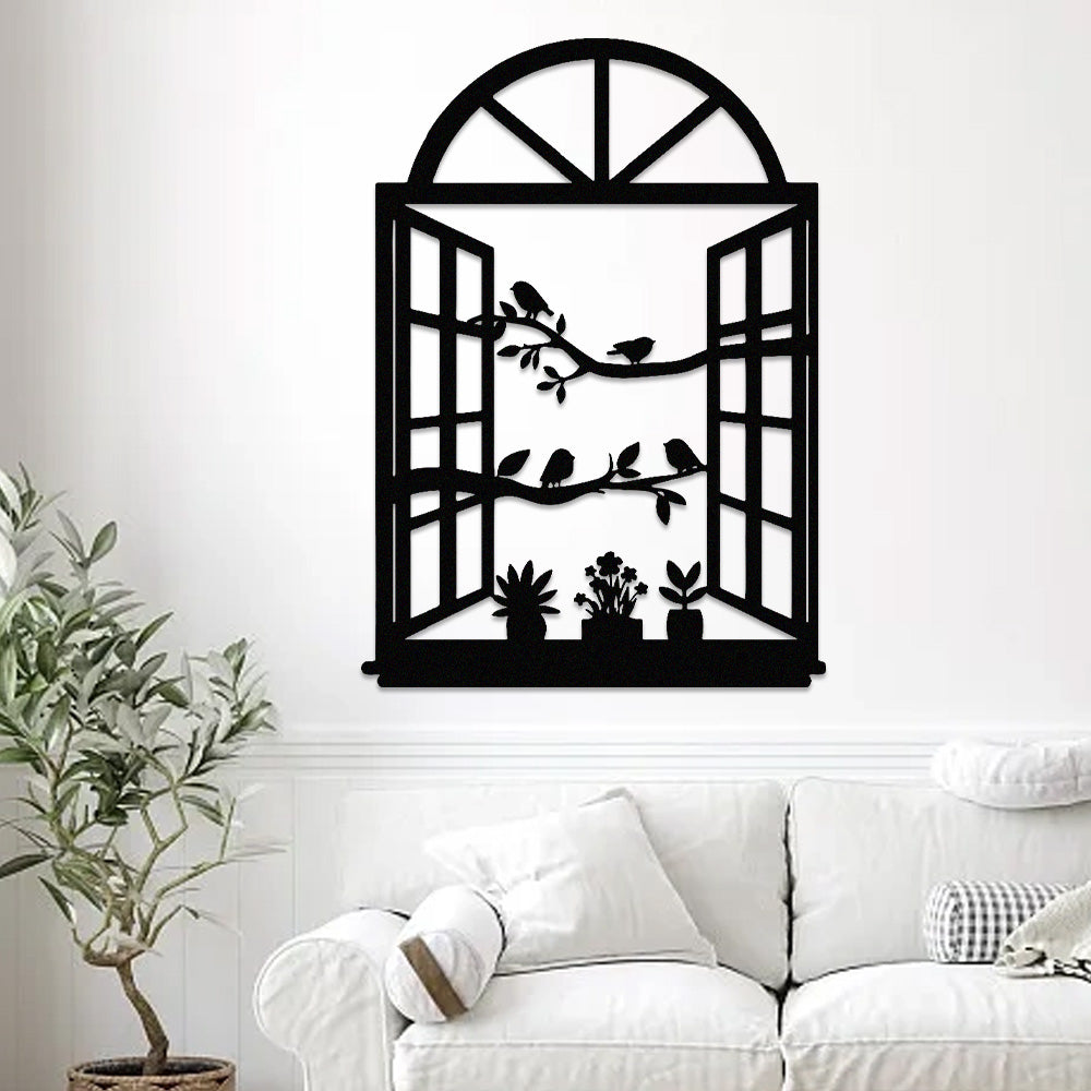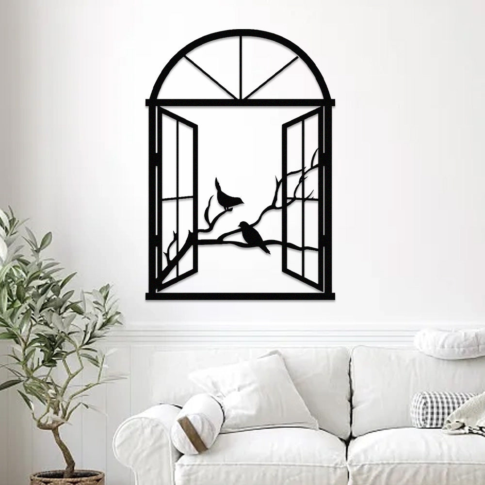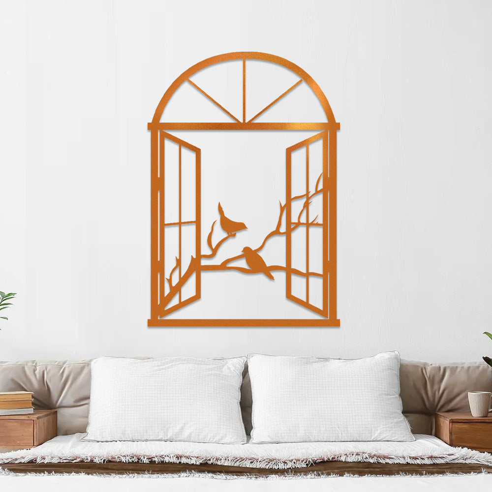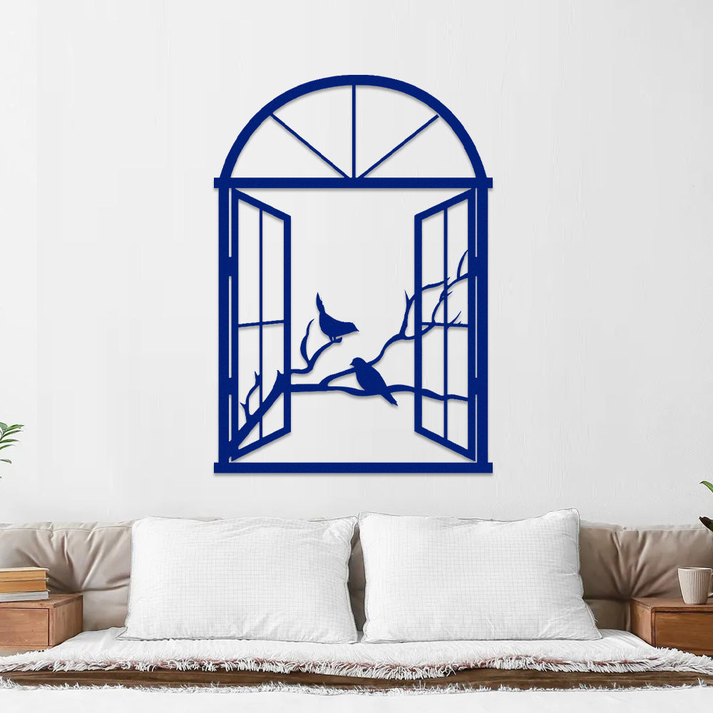 Bird Tree Window Metal Wall Art