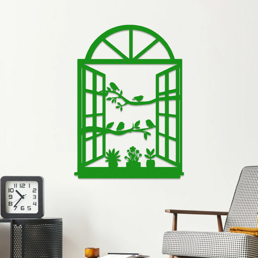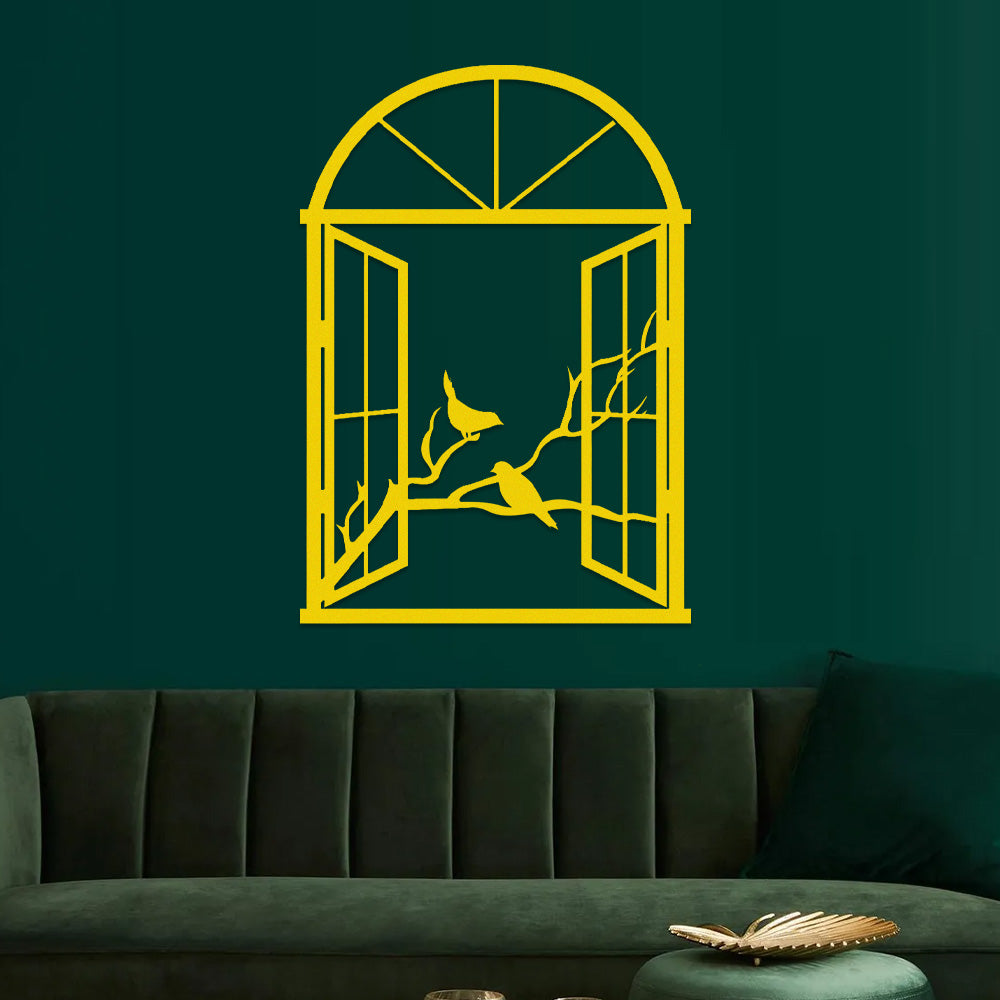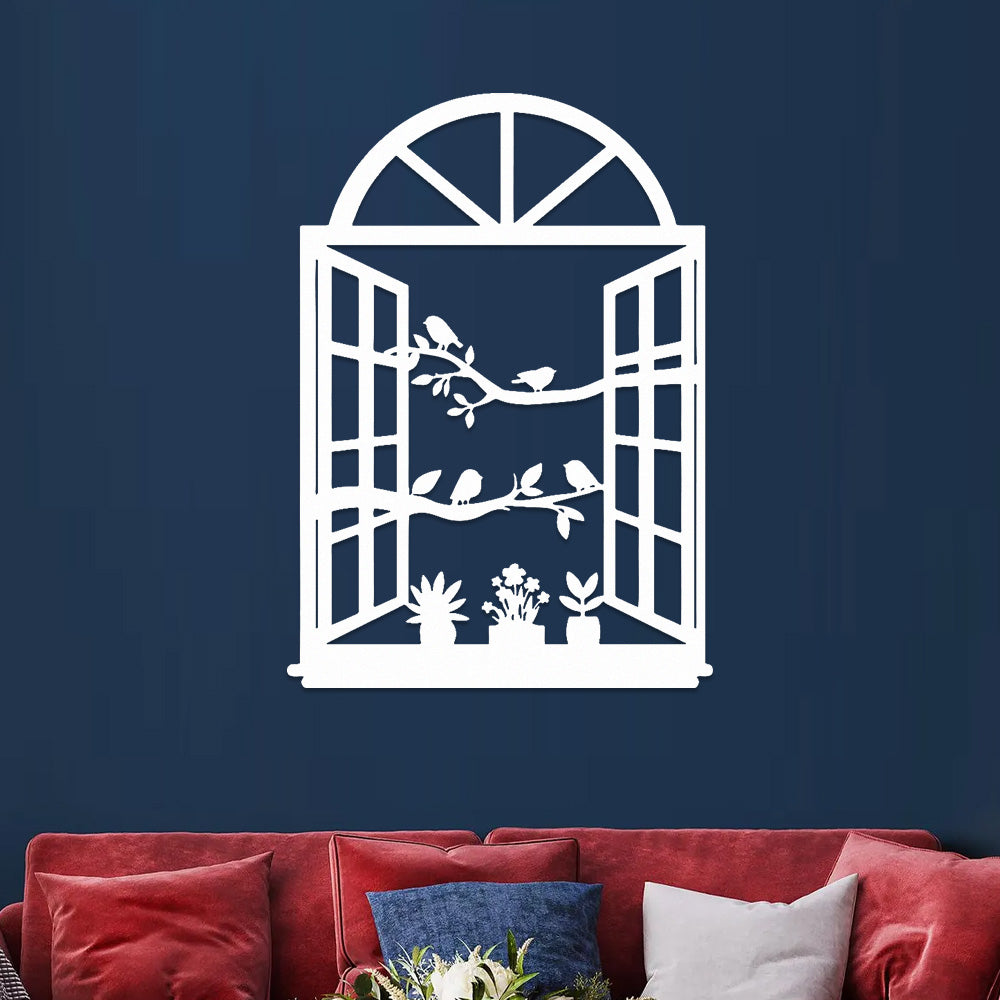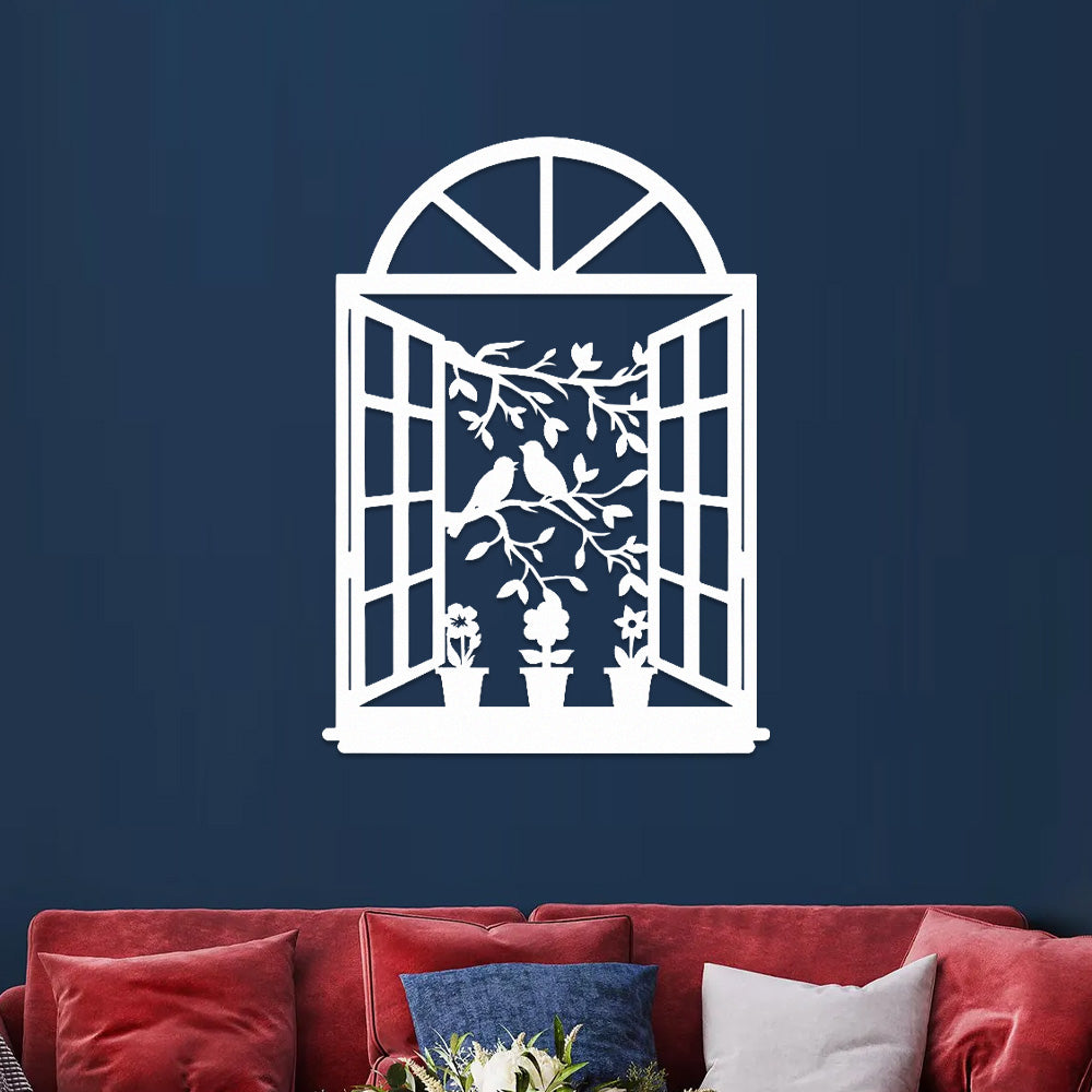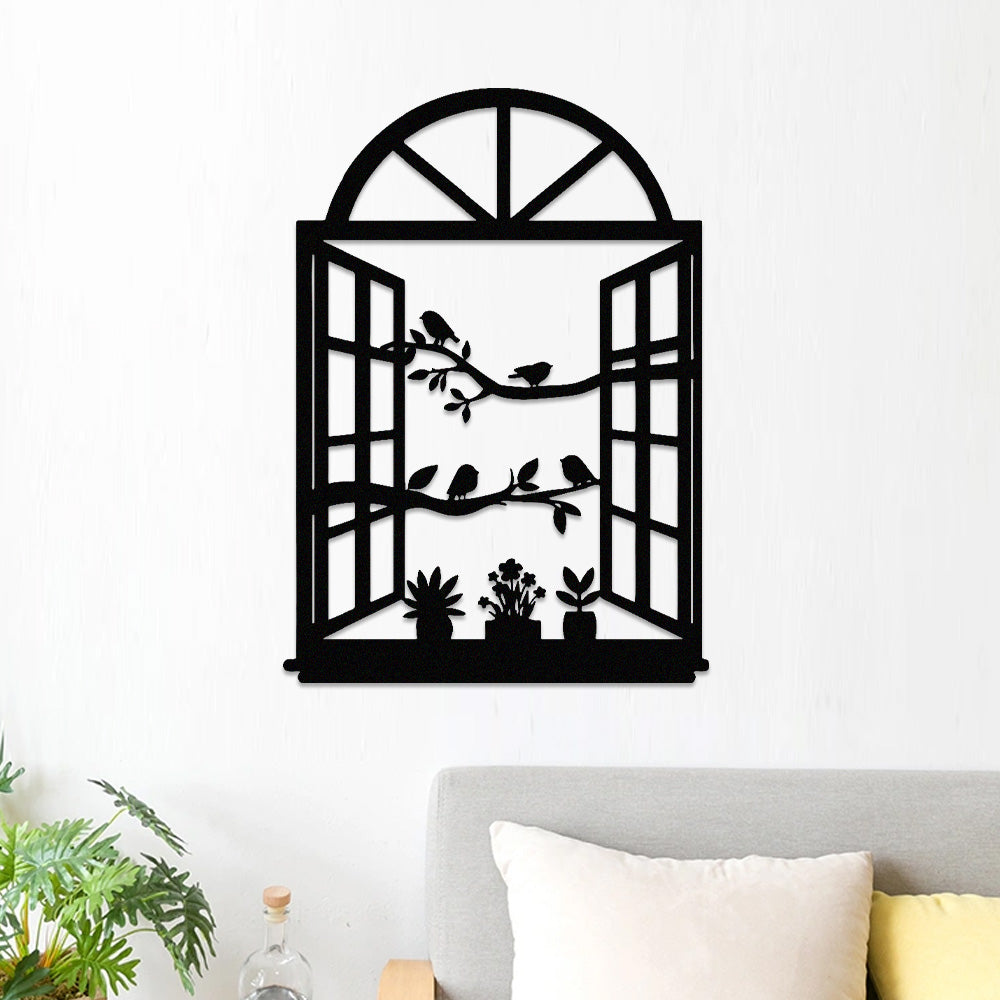 Bird Tree Window Metal Wall Art