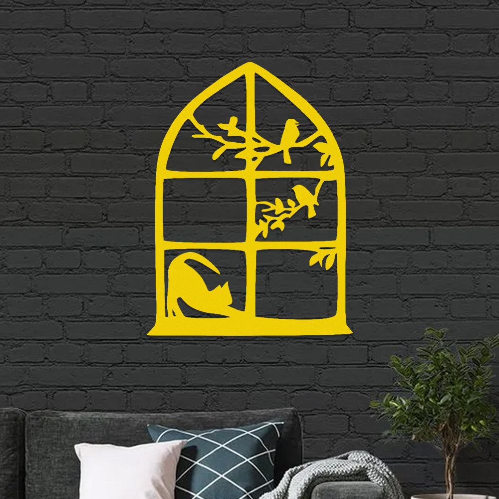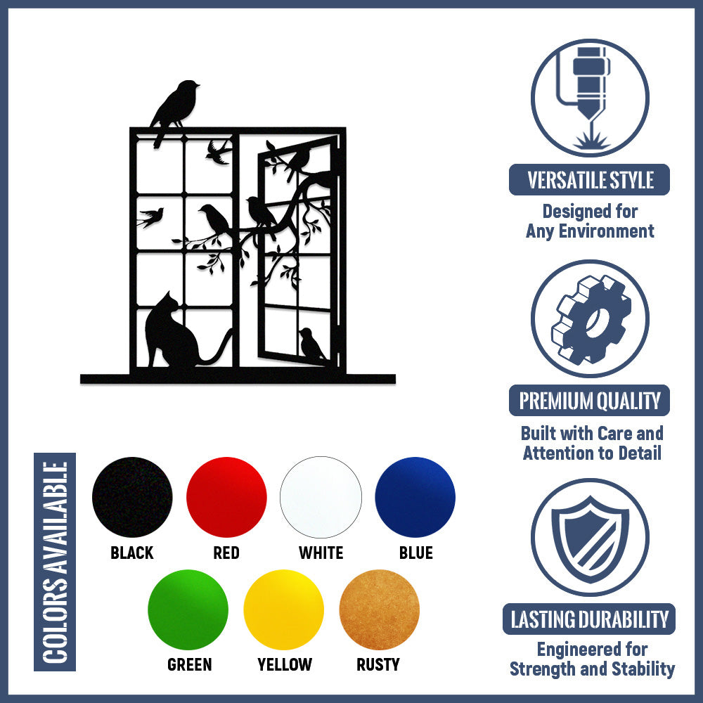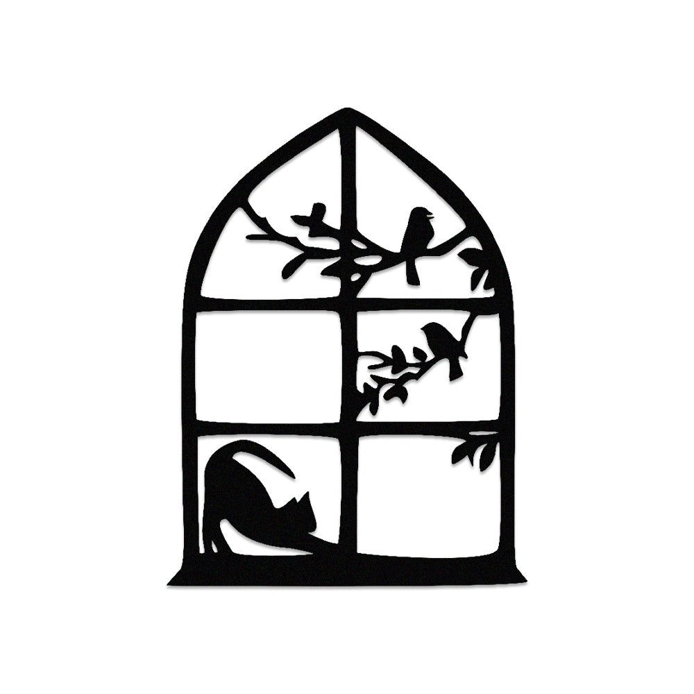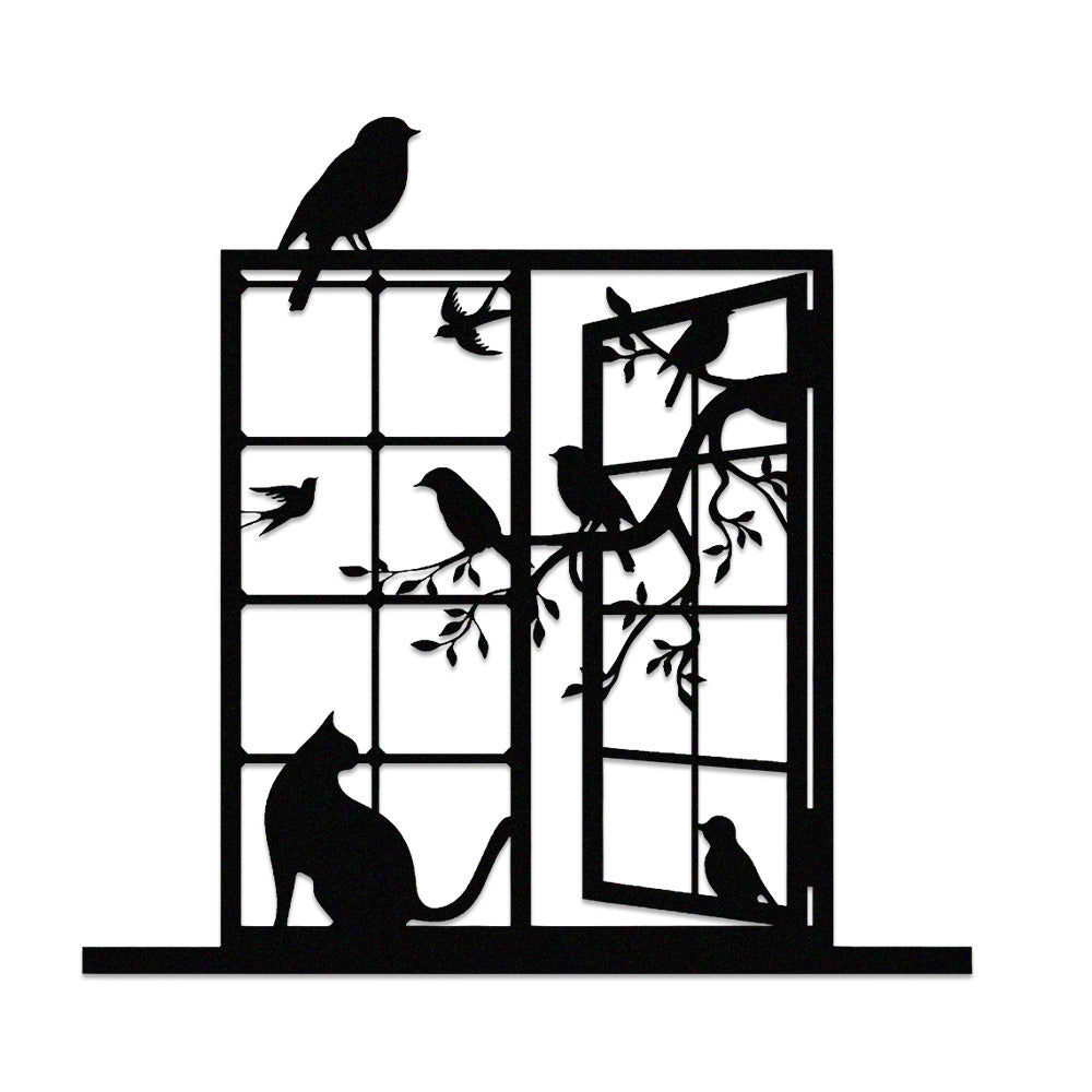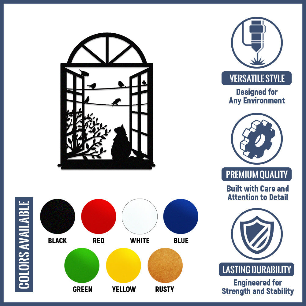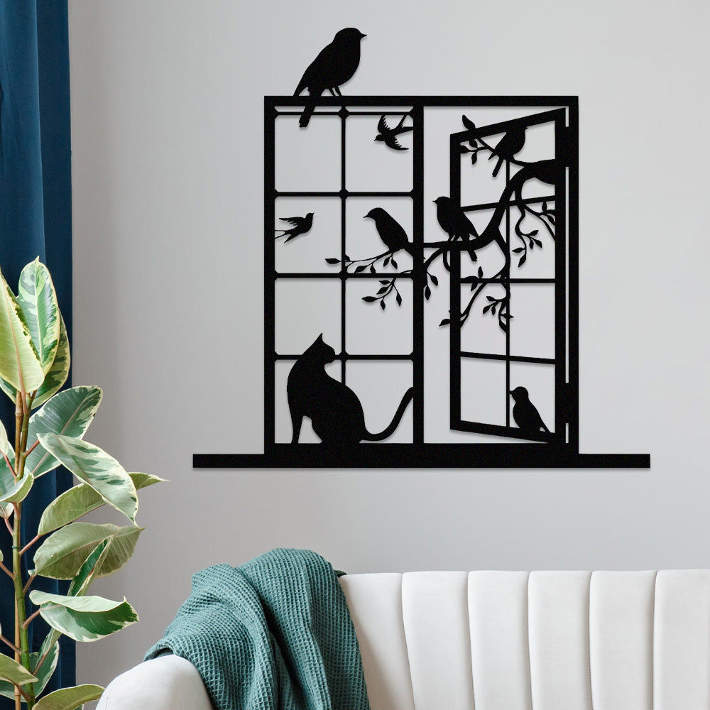 Cat and Bird Window Metal Wall Art