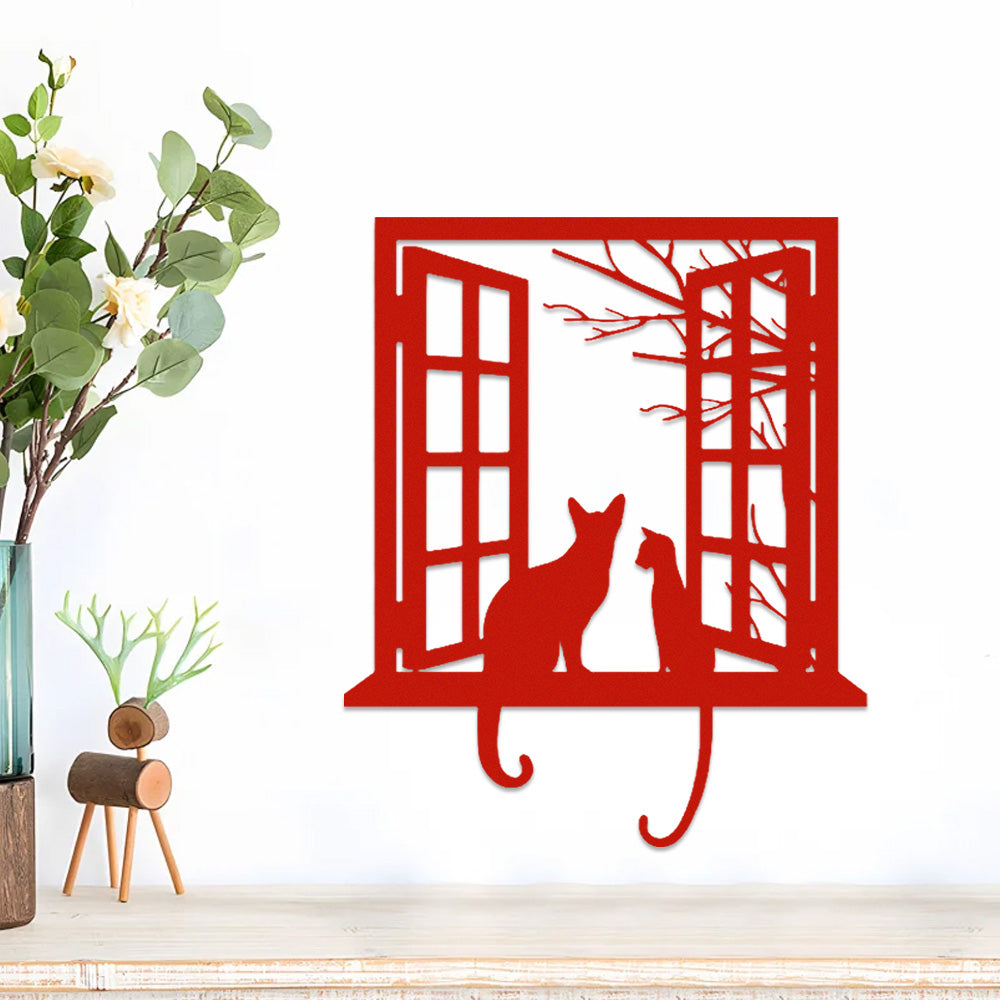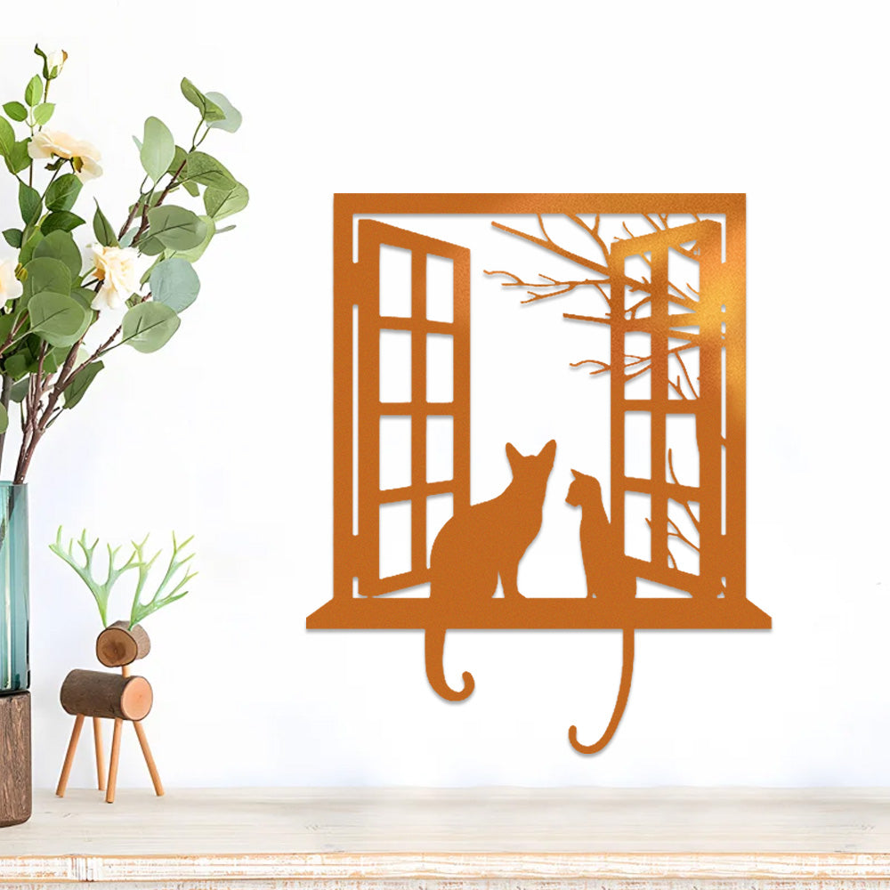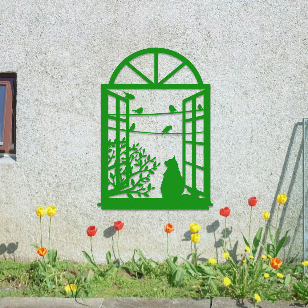 Cat Window Style Metal Wall Art