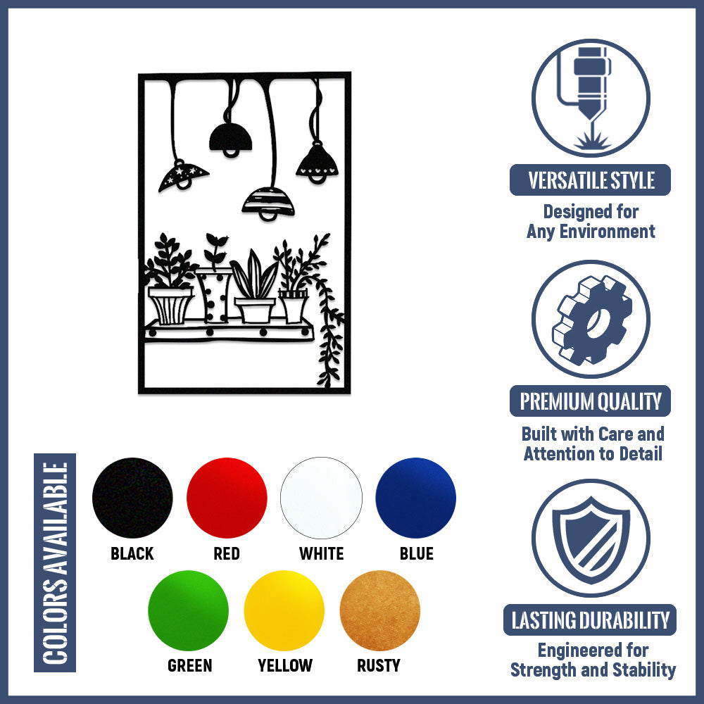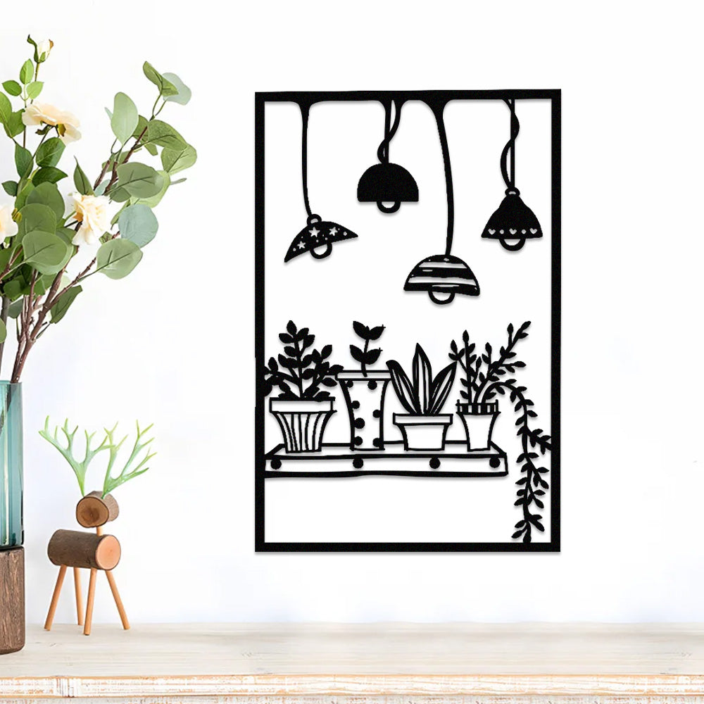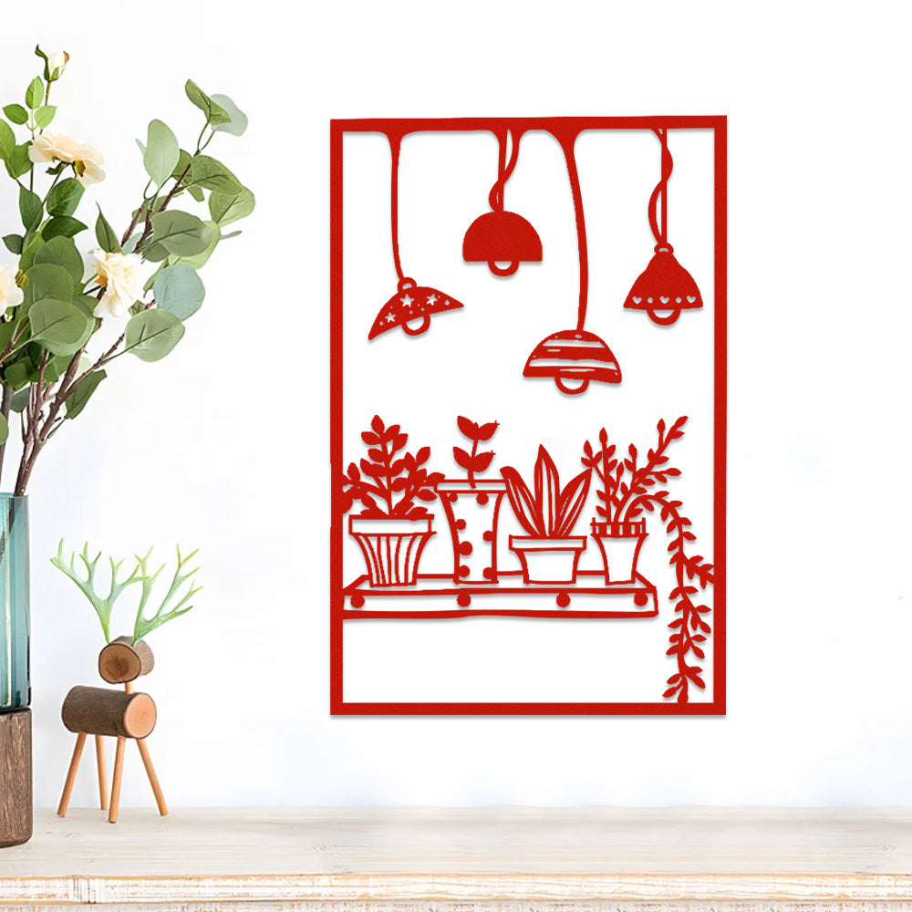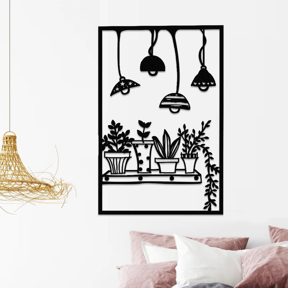Hanging Lamp and Plant Metal Wall Art
