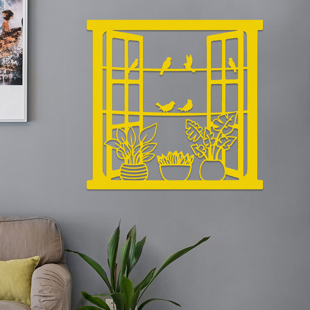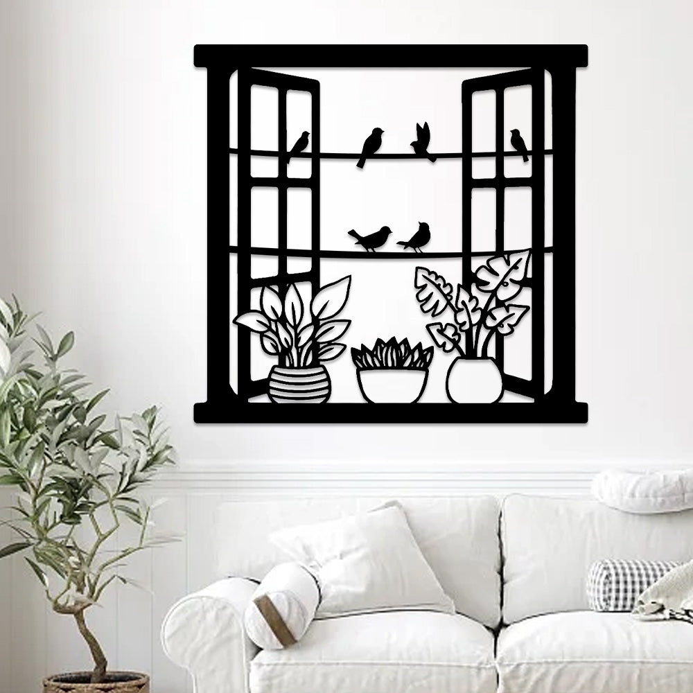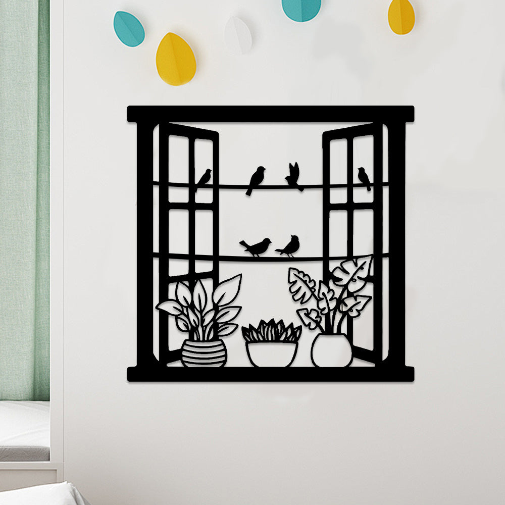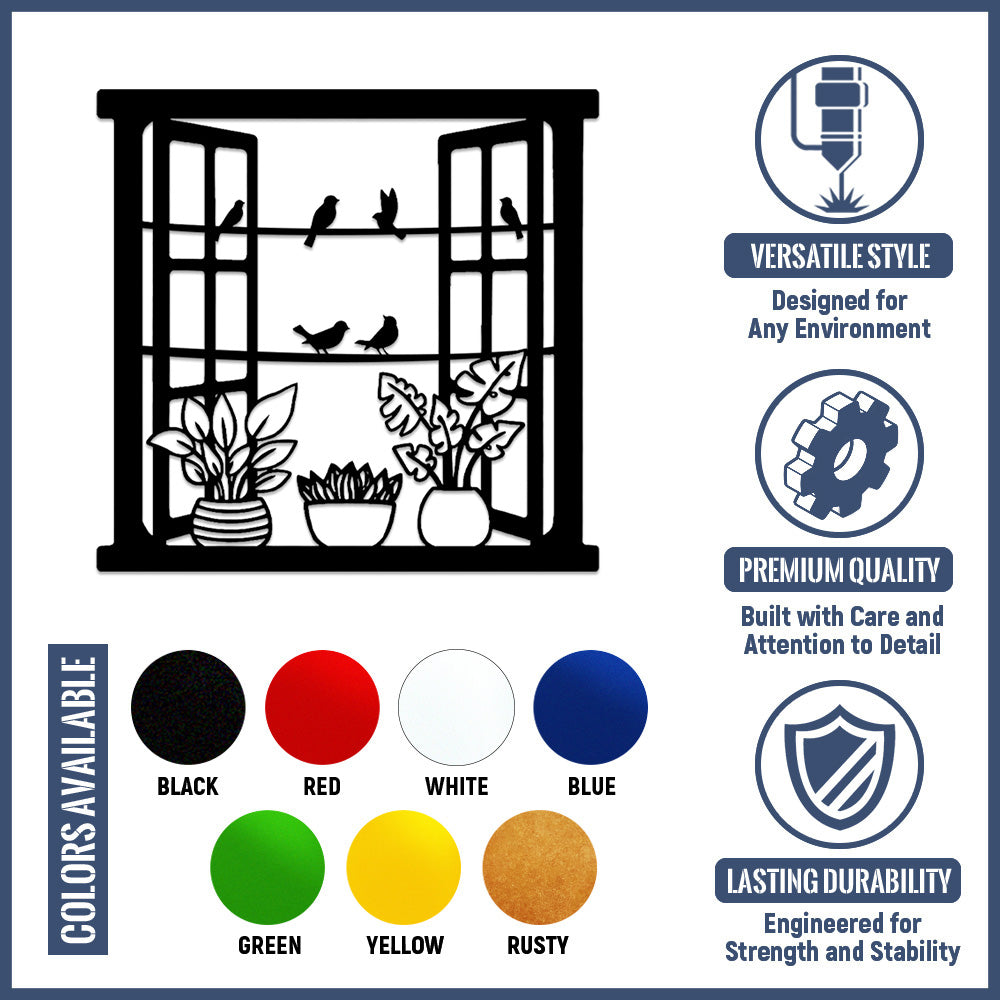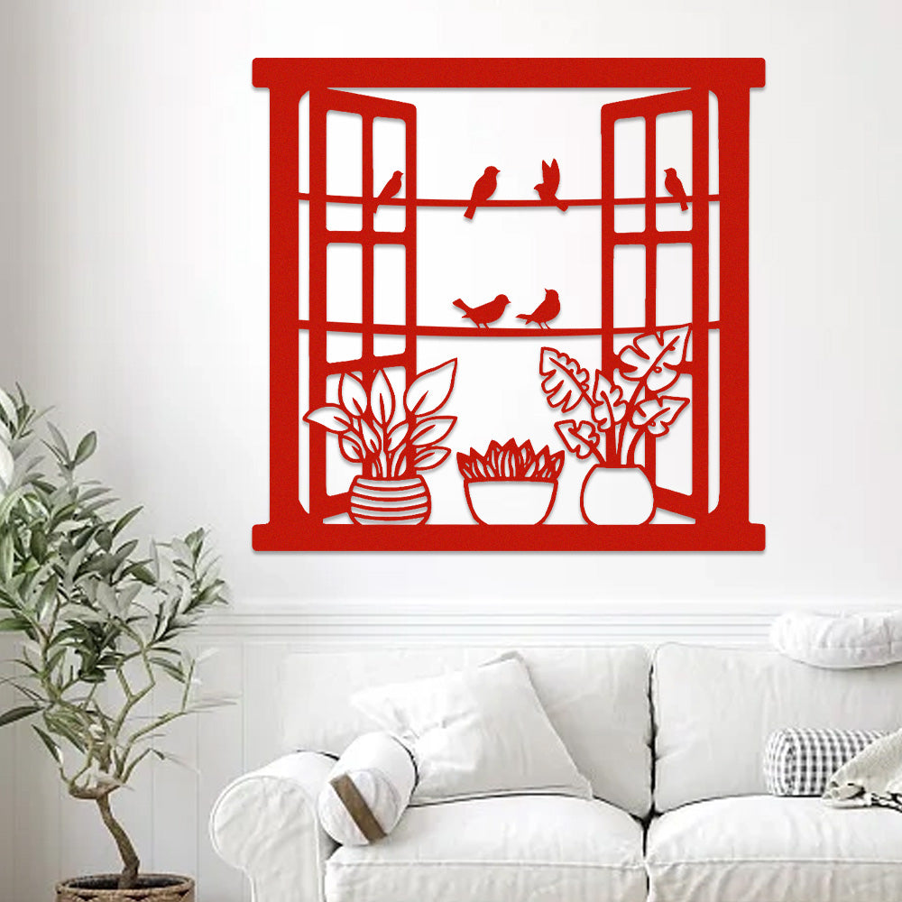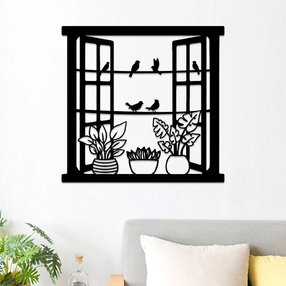 Window Bird and Flower Metal Wall Art