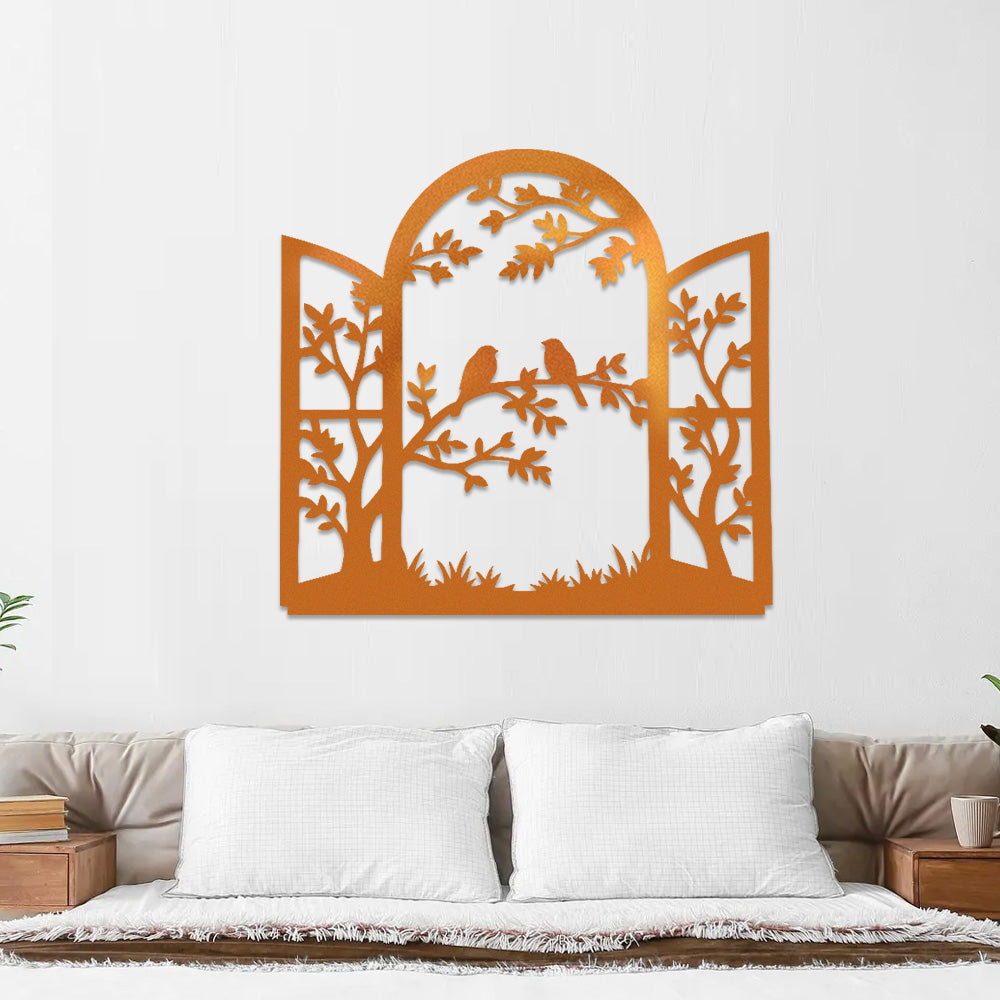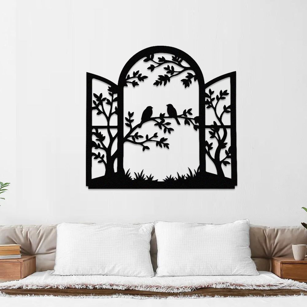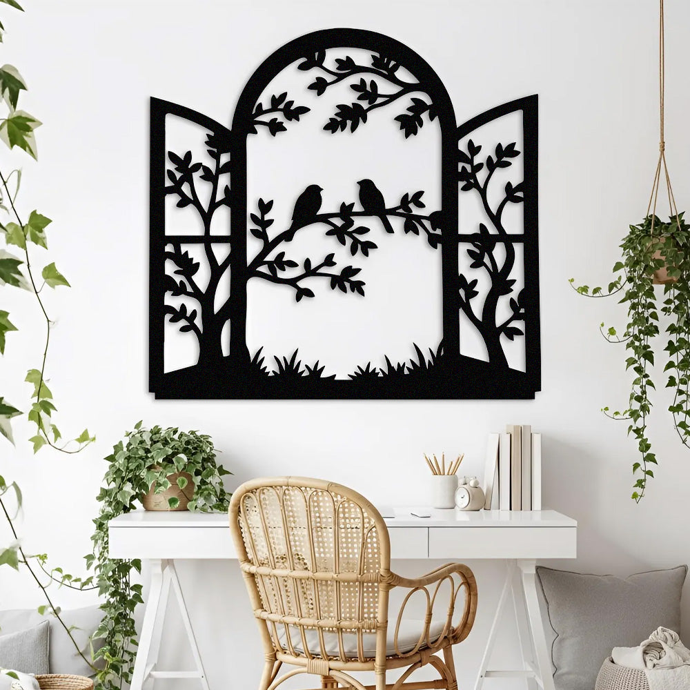 Window Bird and Tree Metal Wall Art