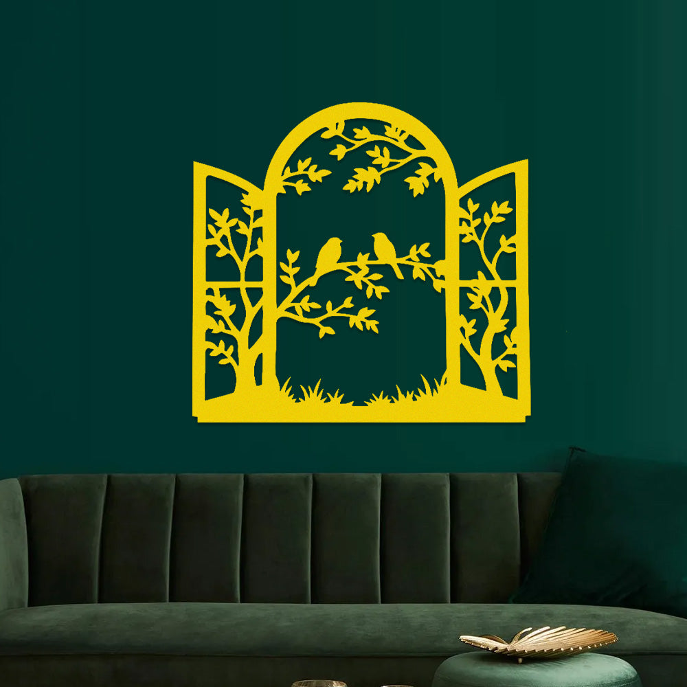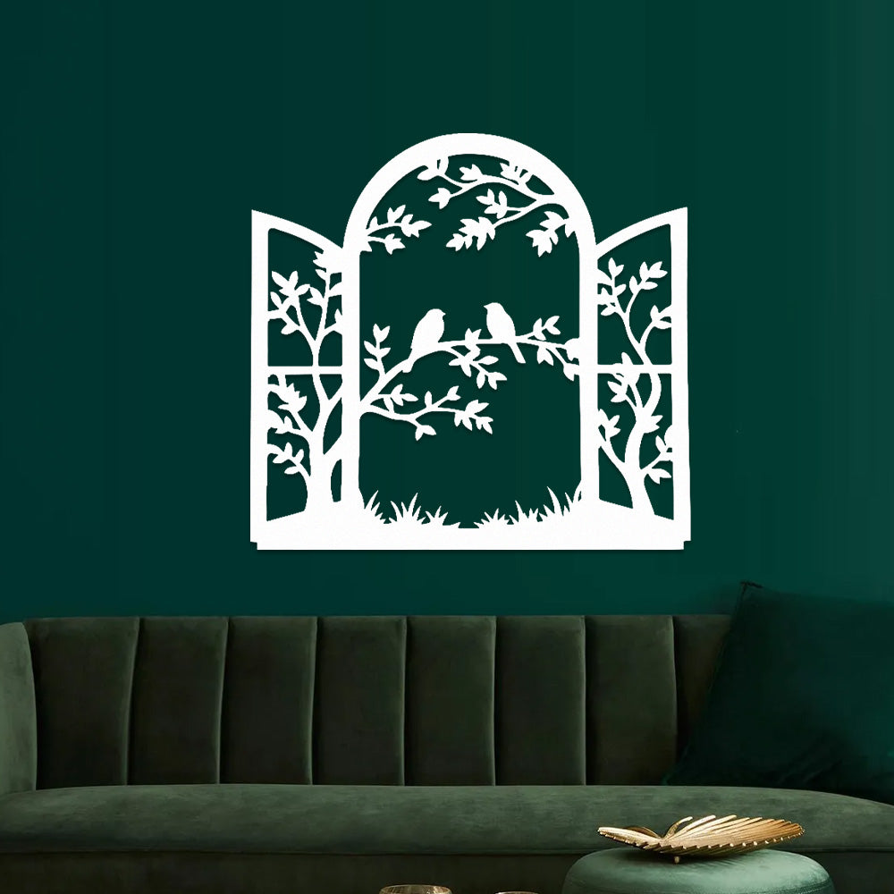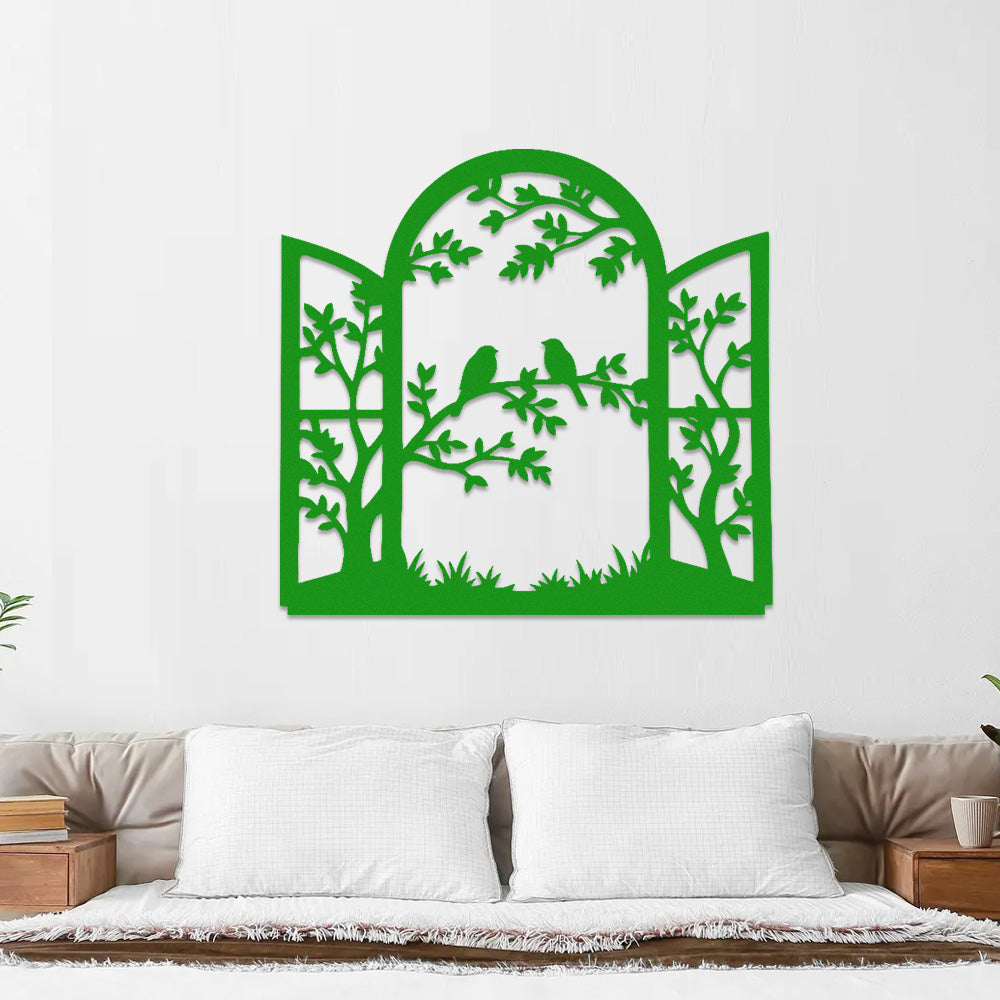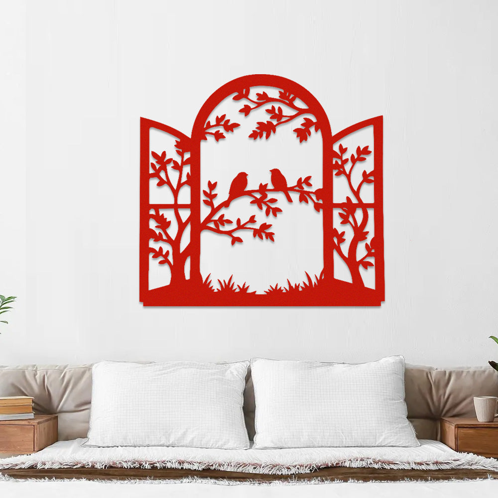 Window Bird and Tree Metal Wall Art