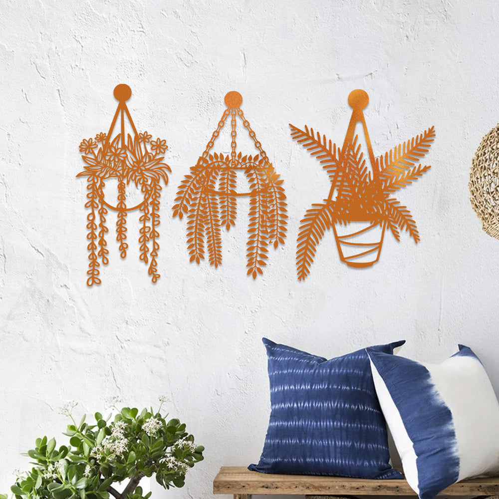 3 PCS Flower Garden Metal Wall Art - Indoor Outdoor Wall Decor