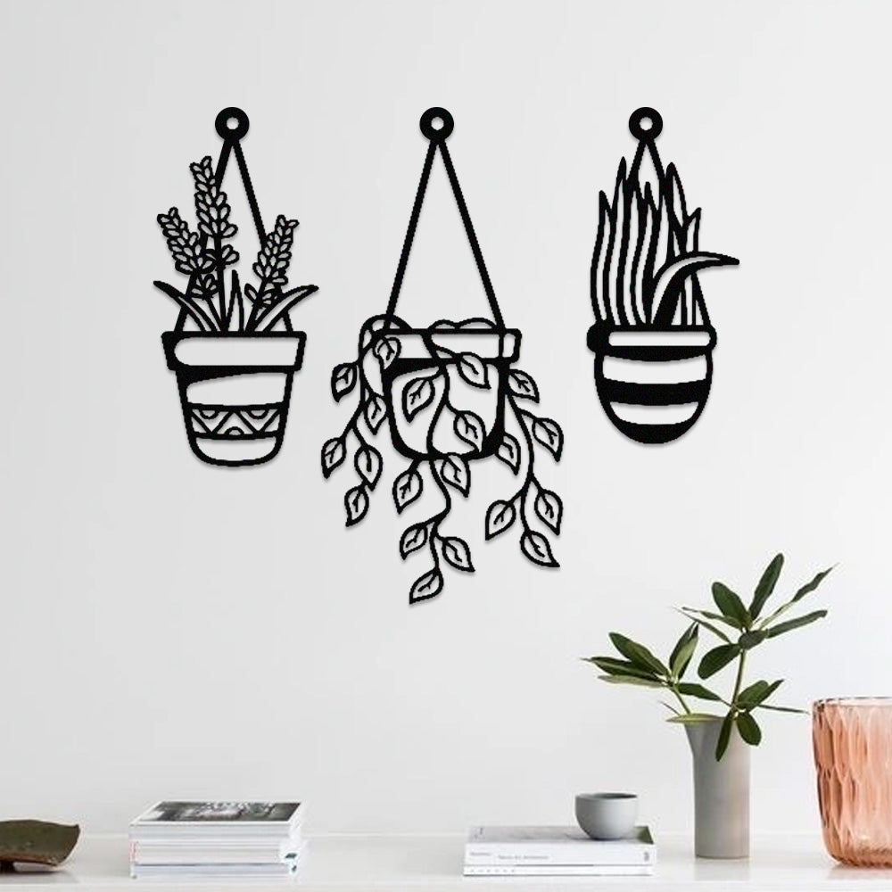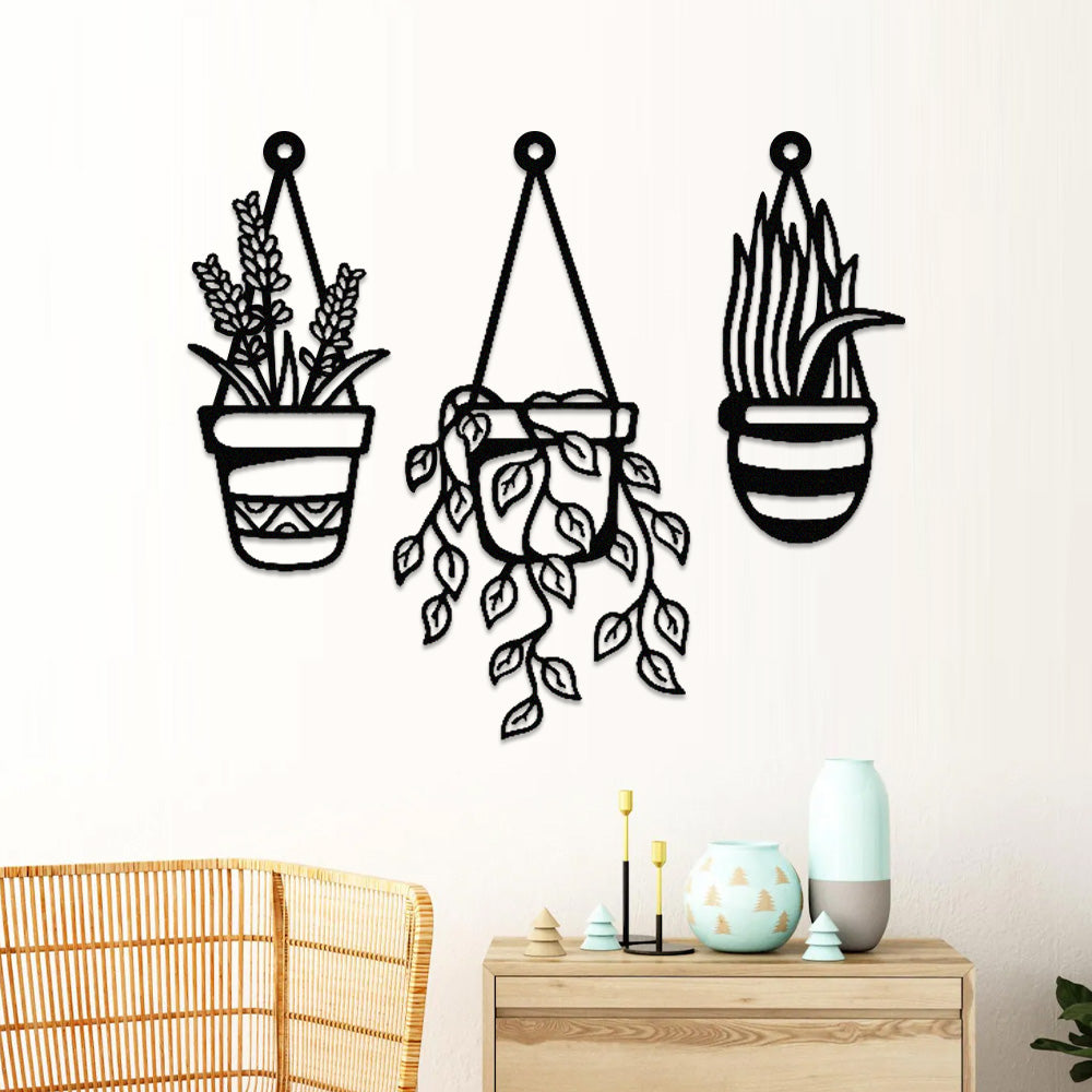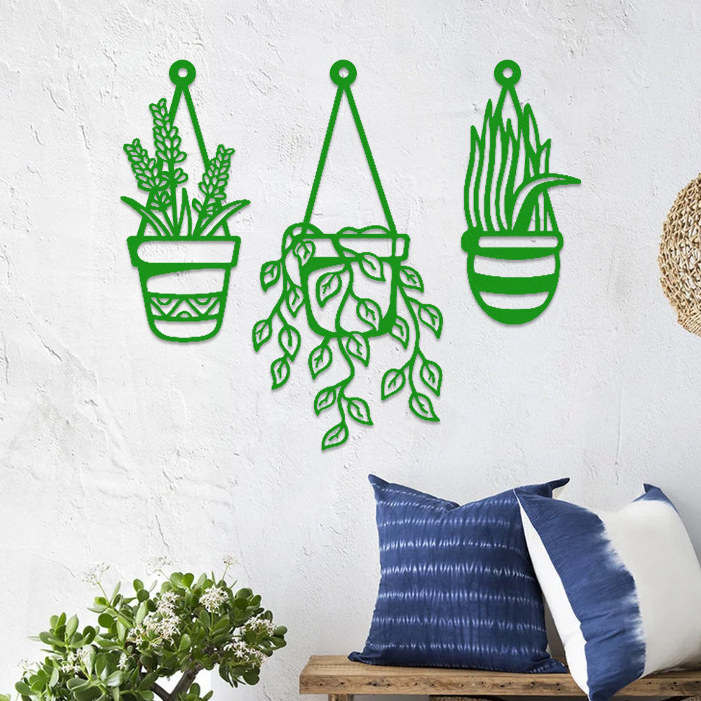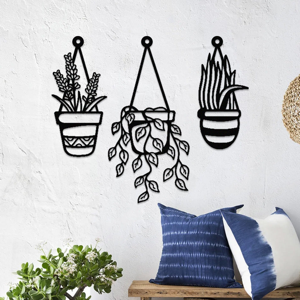3 PCS Flower Garden Metal Wall Art - Indoor Outdoor Wall Decor