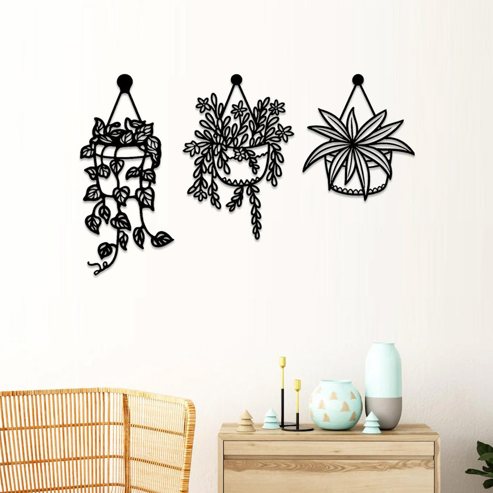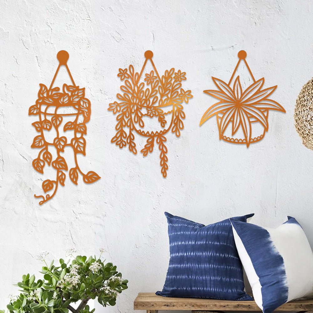 3 PCS Flower Garden Metal Wall Art - Indoor Outdoor Wall Decor