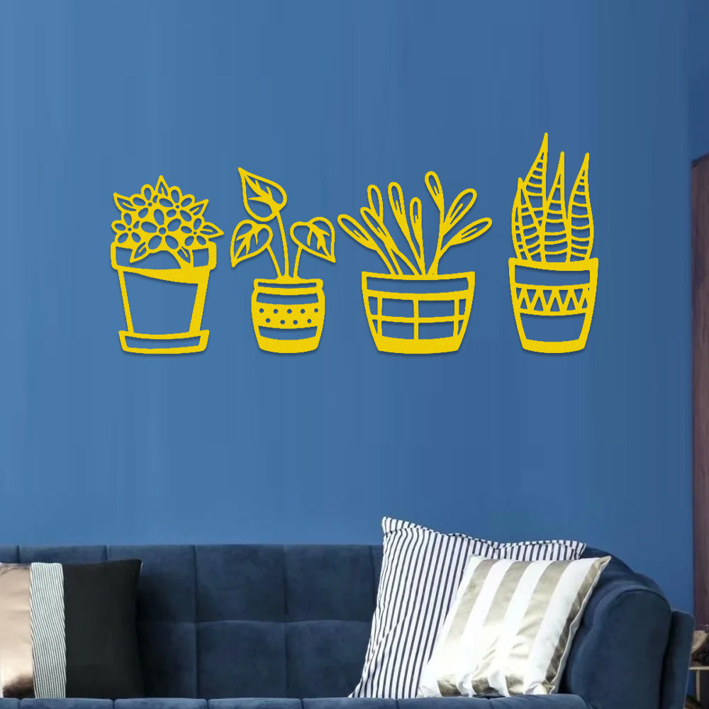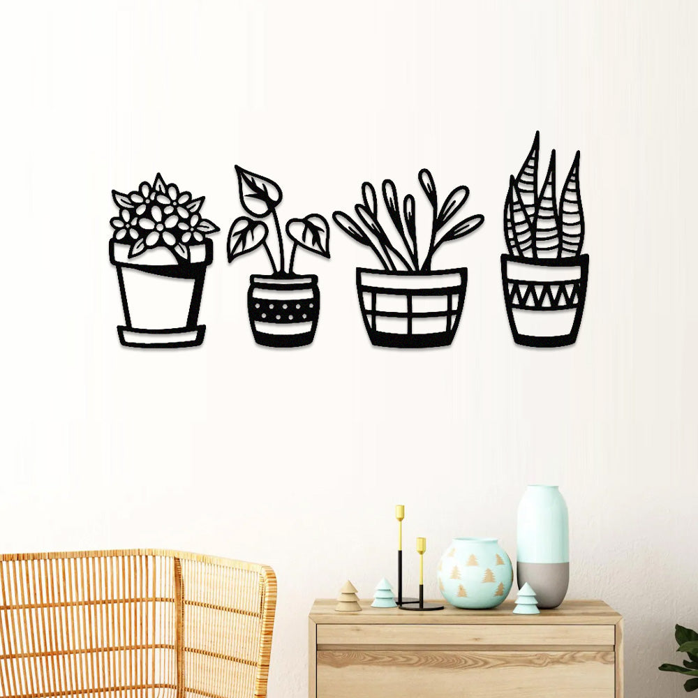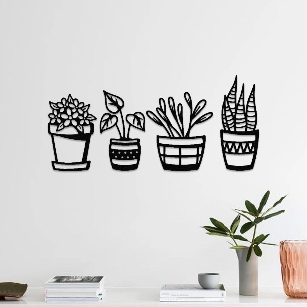4 PCS Flower Garden Metal Wall Art - Indoor Outdoor Wall Decor