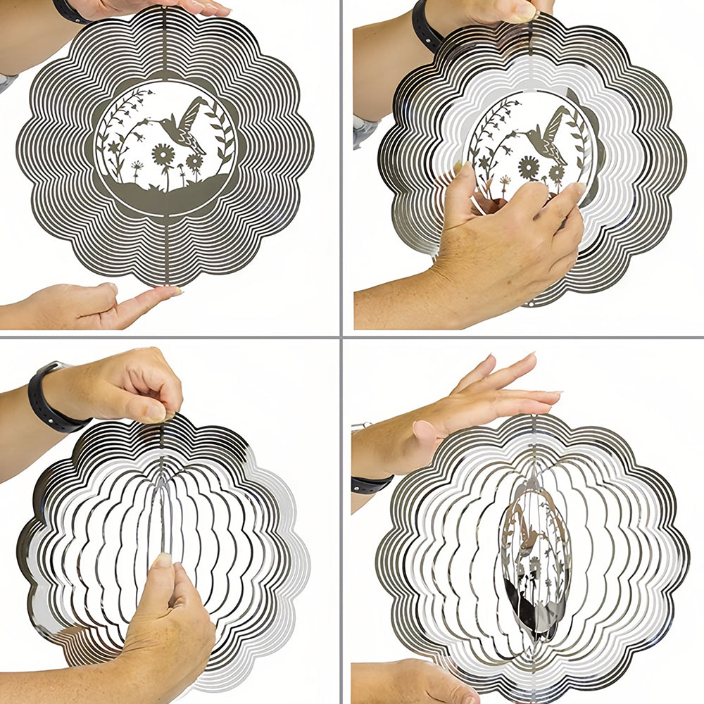 Bird and Flower Wind Spinner 3D Stainless Steel Wind Chime Crop Bird Repeller