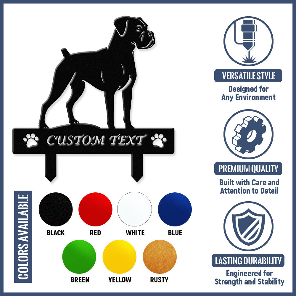 Boxer Custom Dog Silhouette Metal Yard Stake