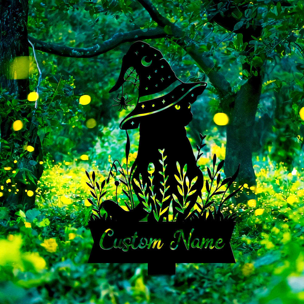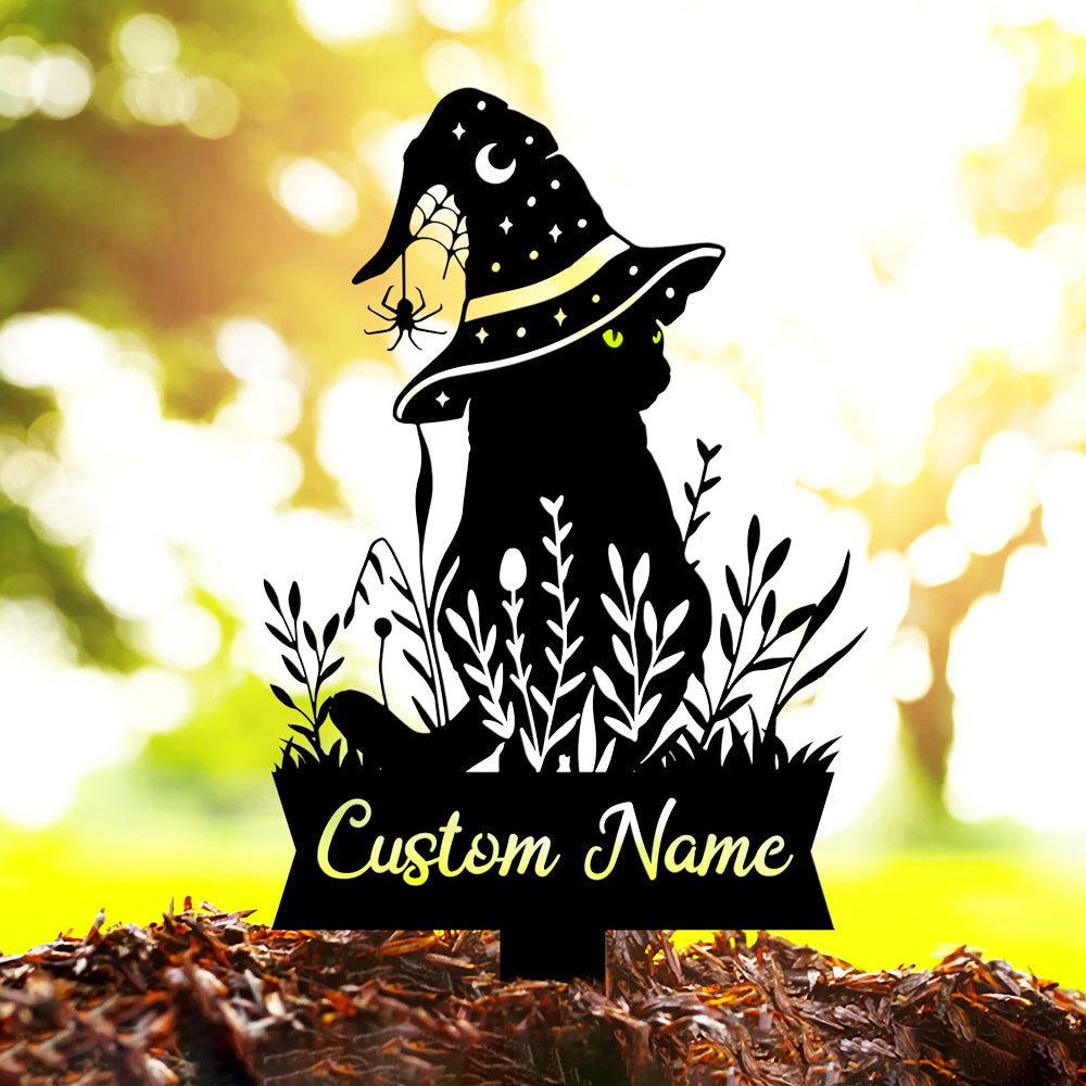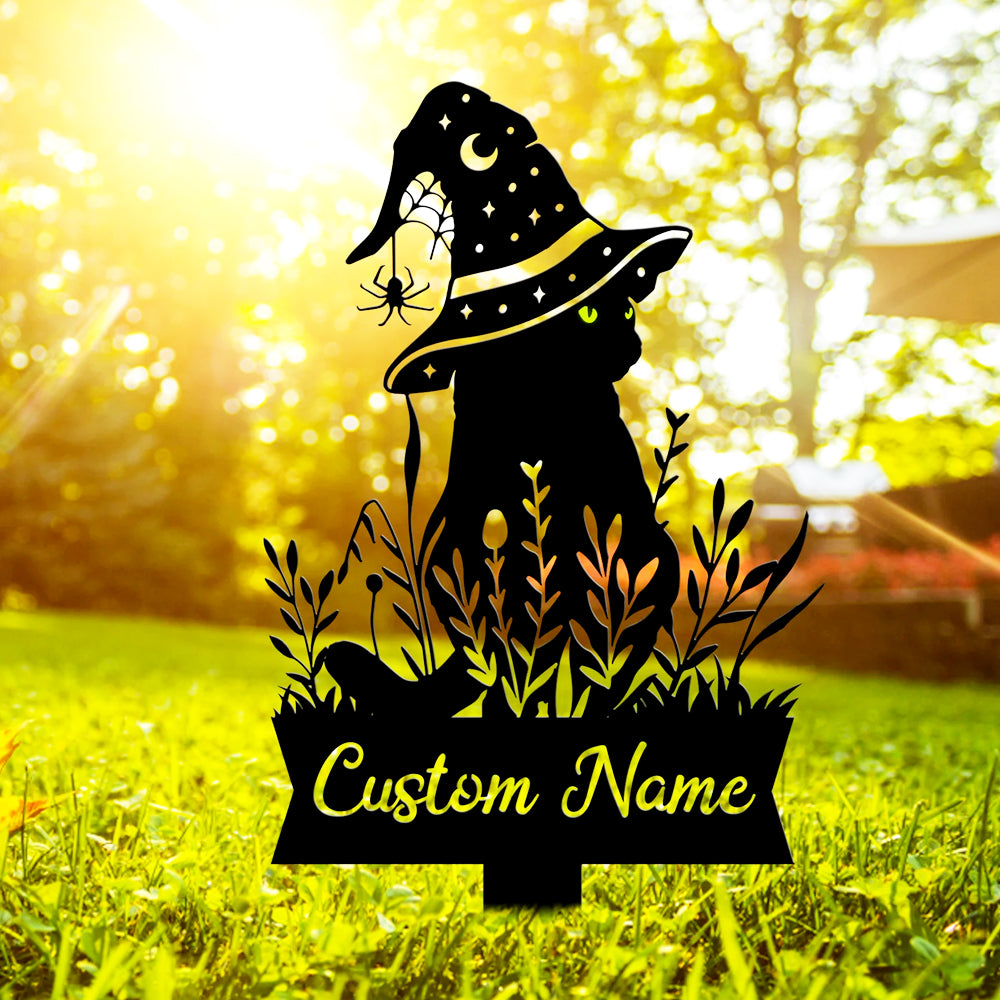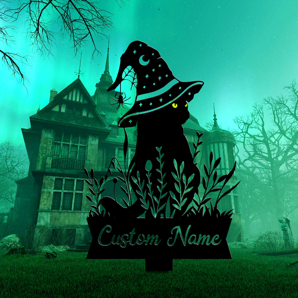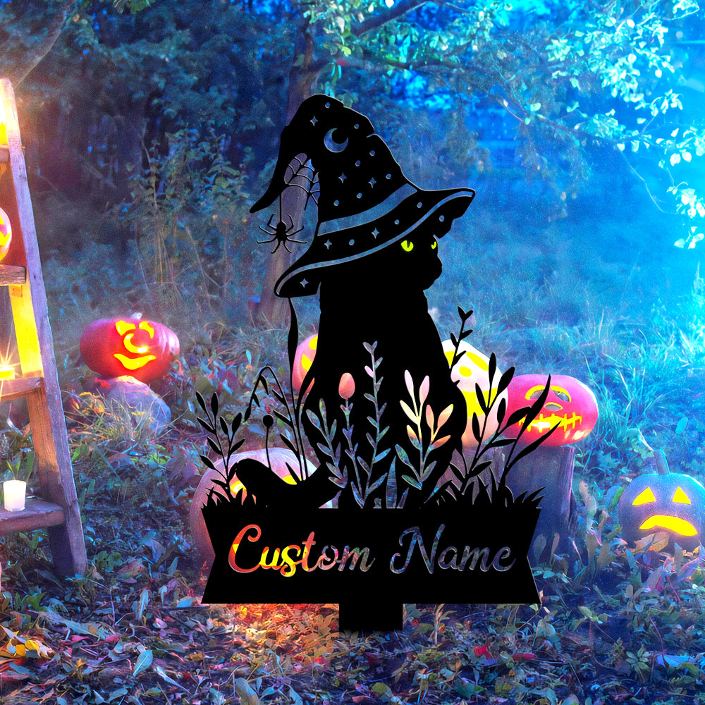 Custom Name Witch Cat Halloween Metal Yard Stake