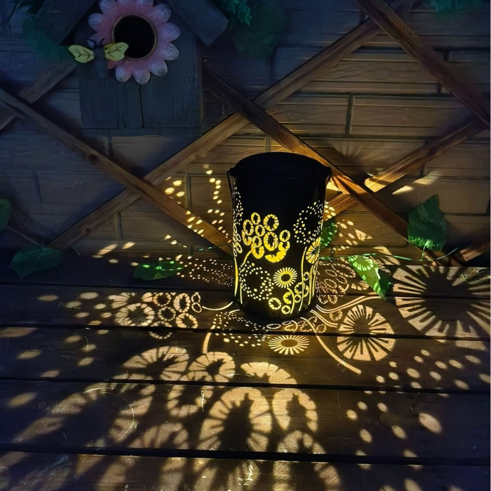 Dandelion Pattern Solar Lantern Metal Engraving Outdoor Garden Solar Light