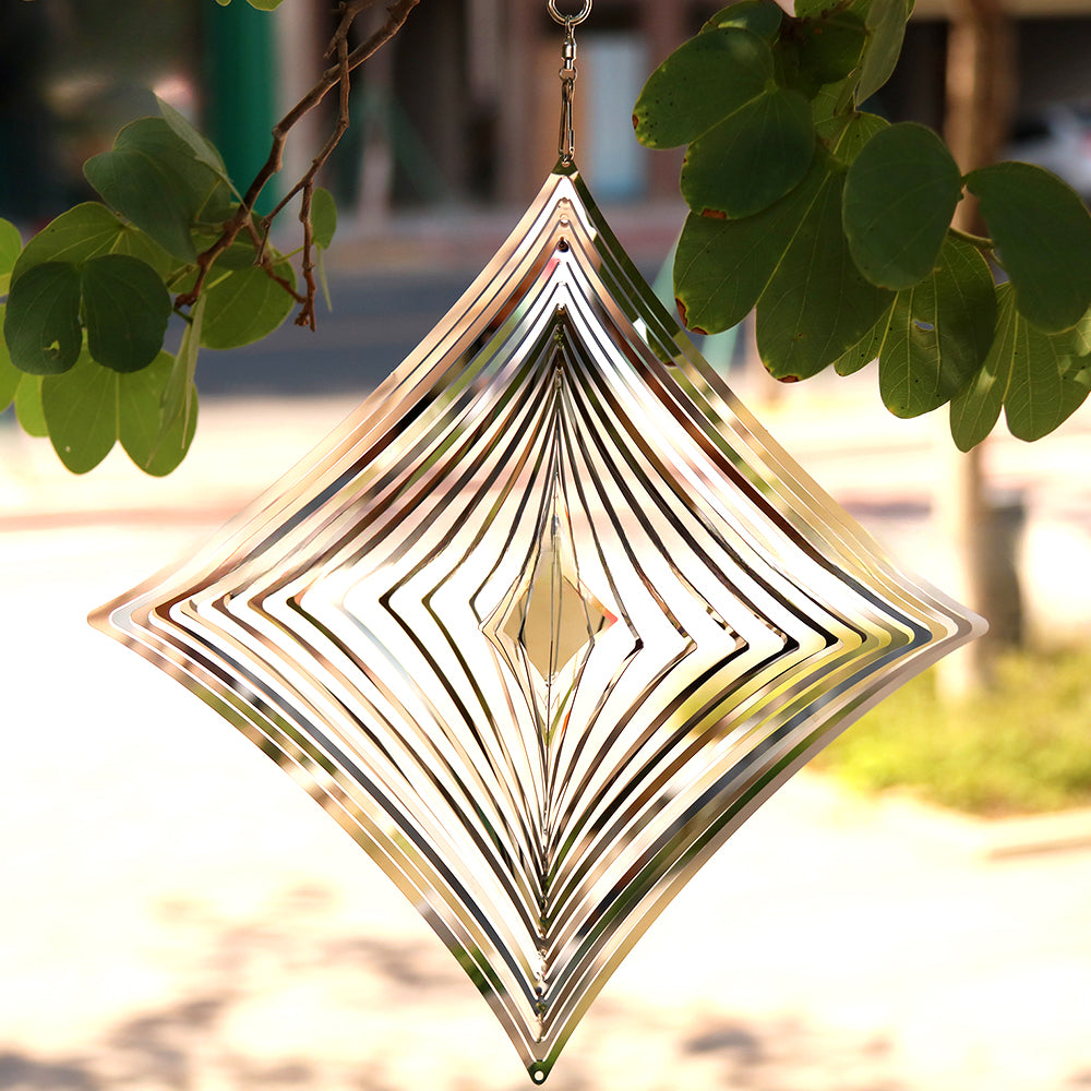 Diamond Wind Spinner 3D Stainless Steel Wind Chime Crop Bird Repeller