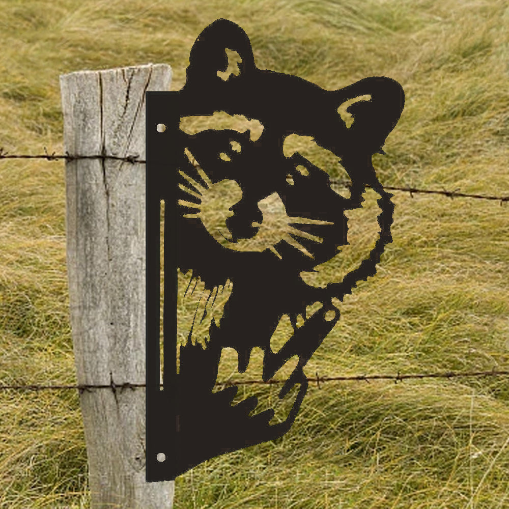 Funny Raccoon Flipping Off Metal Sign - Peeking Animal Yard Art Decor