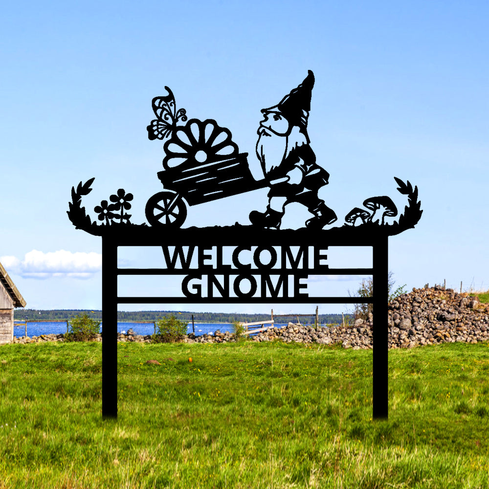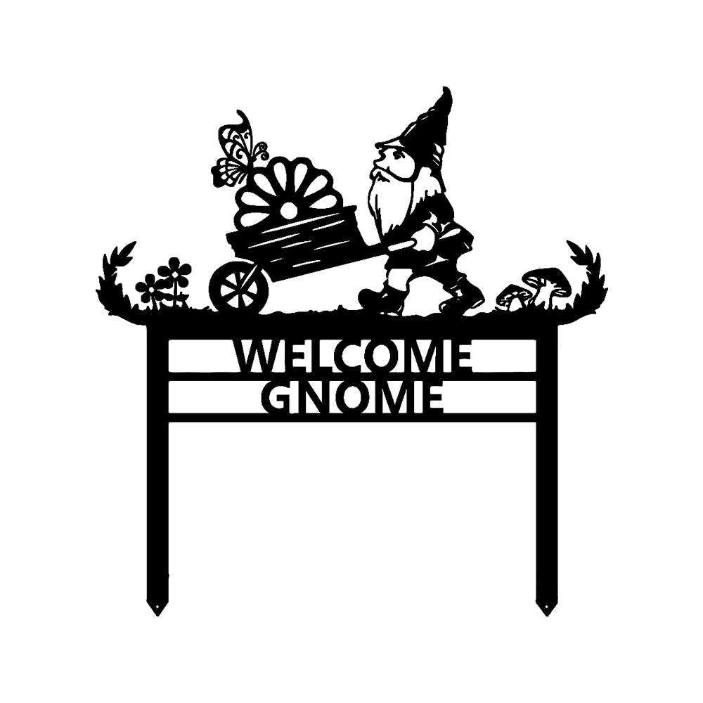 Welcome Garden Sign Gnome Wheelbarrow Outdoor Metal Markers