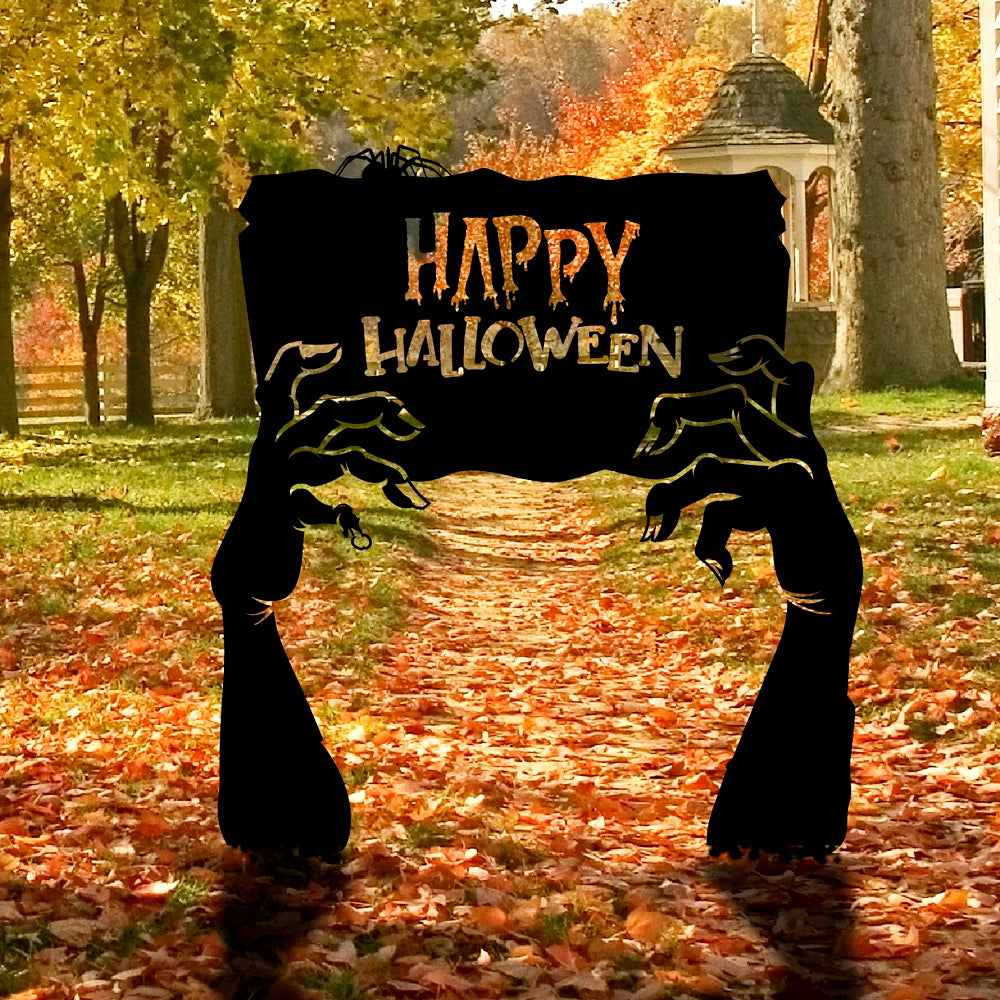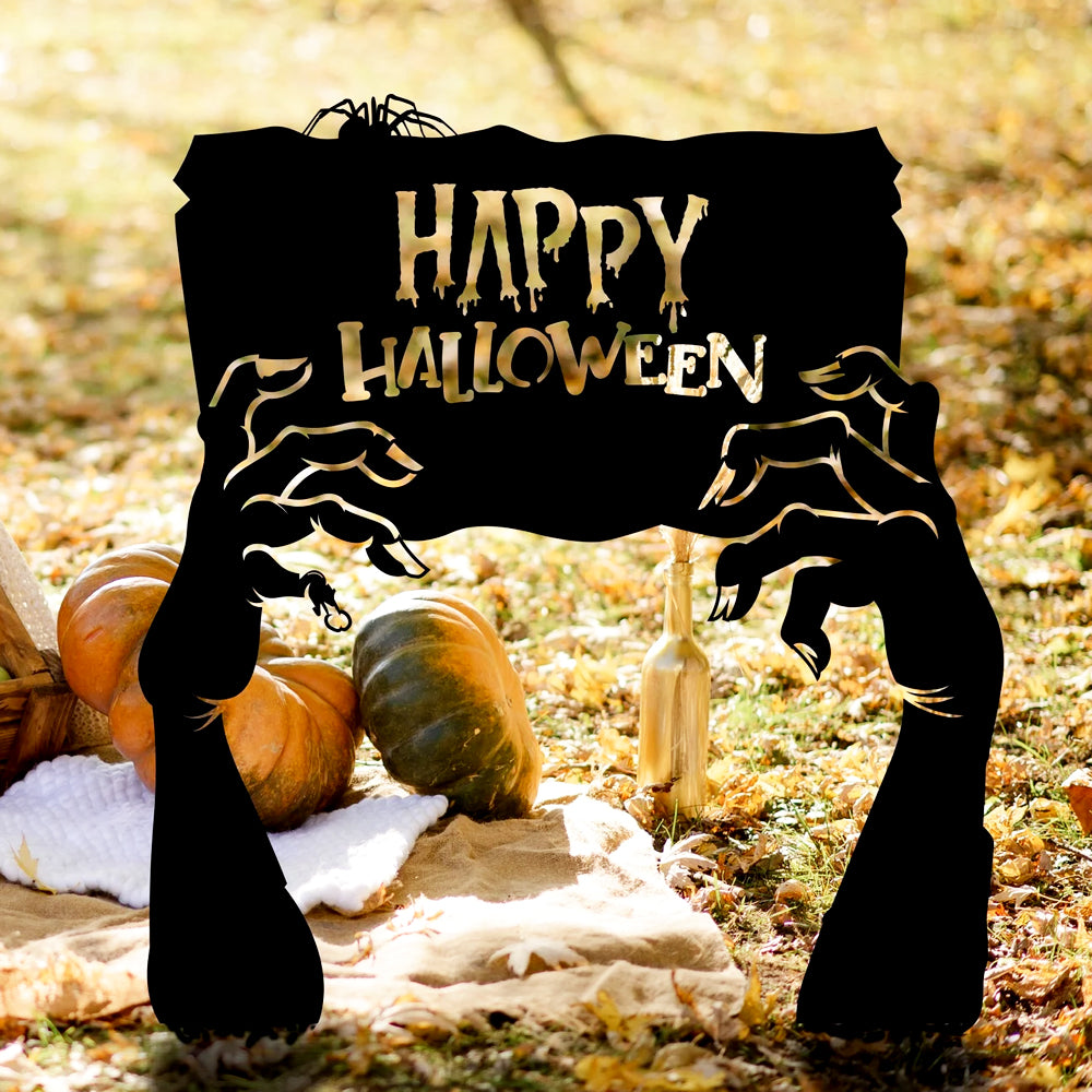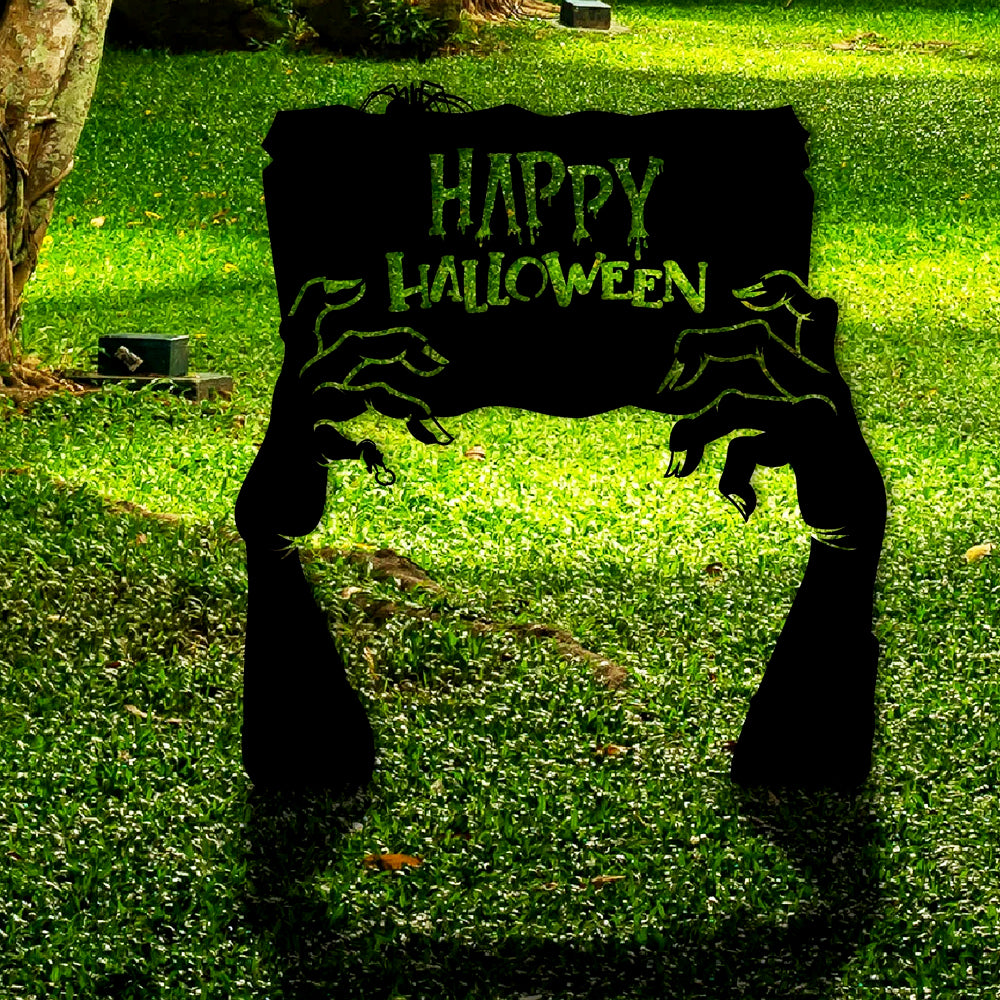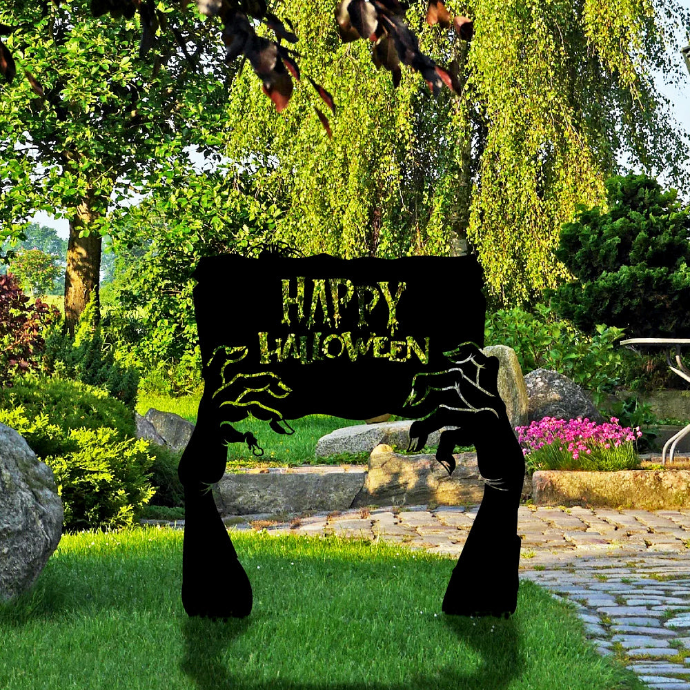 Happy Halloween Zombie Hands Metal Yard Stake