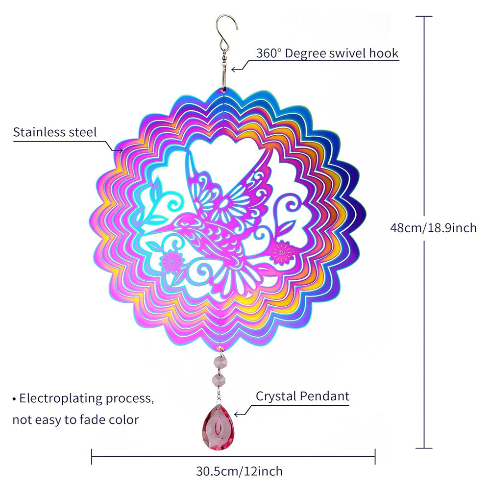Hummingbird Wind Spinner 3D Stainless Steel Wind Chime Crop Bird Repeller