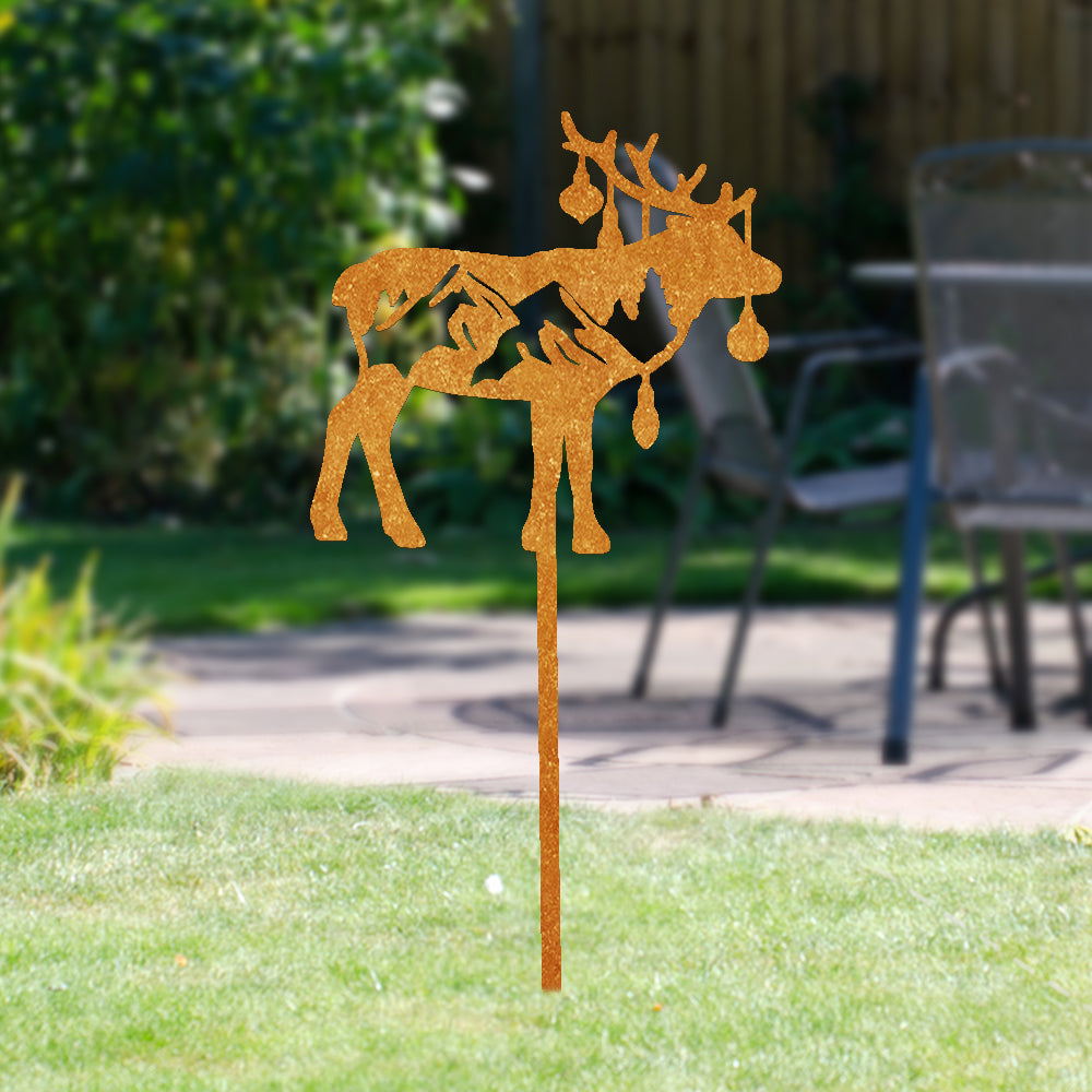 Snow Mountain Elk Christmas Decorations Outdoor Metal Garden Art