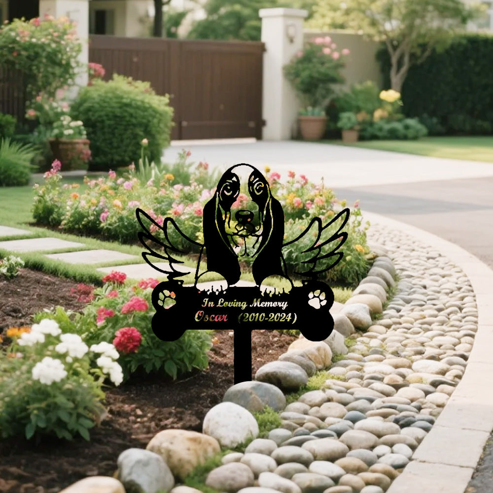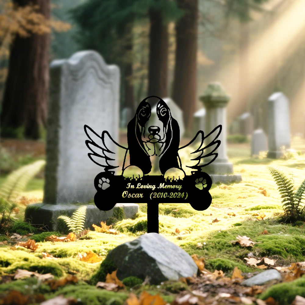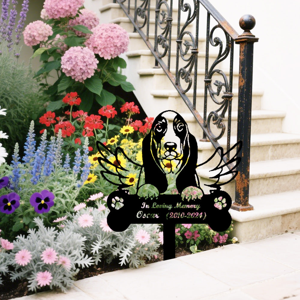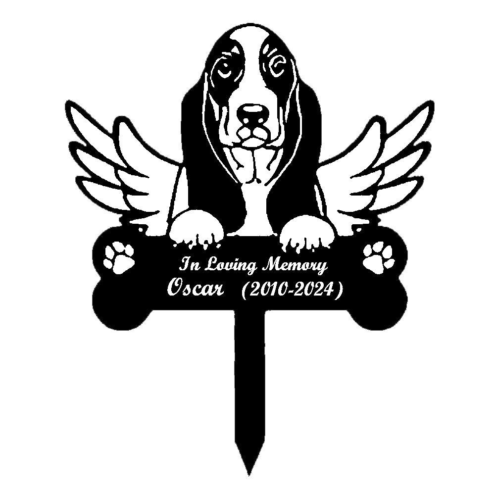 Basset Hound Dog Custom Memorial Stake with Wings