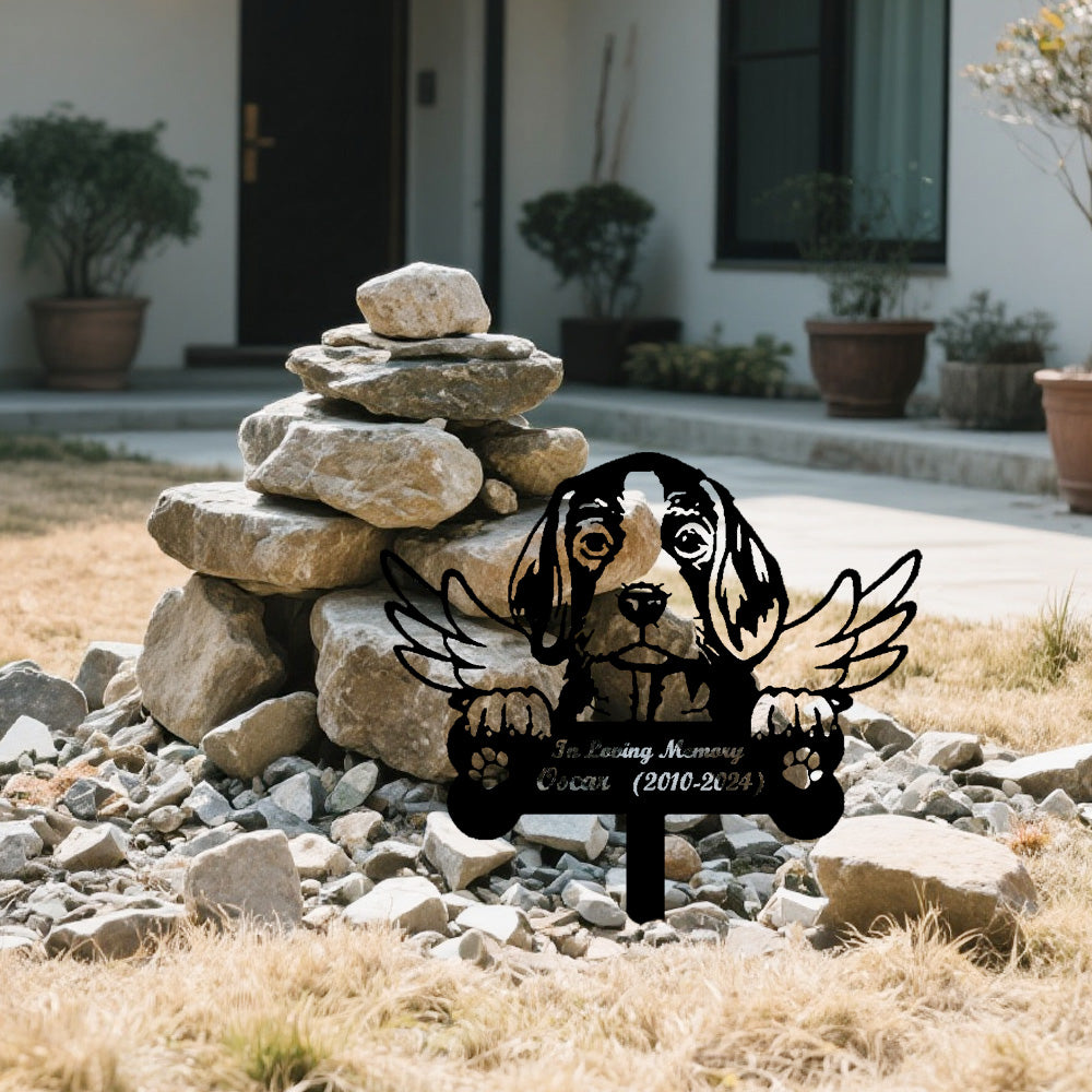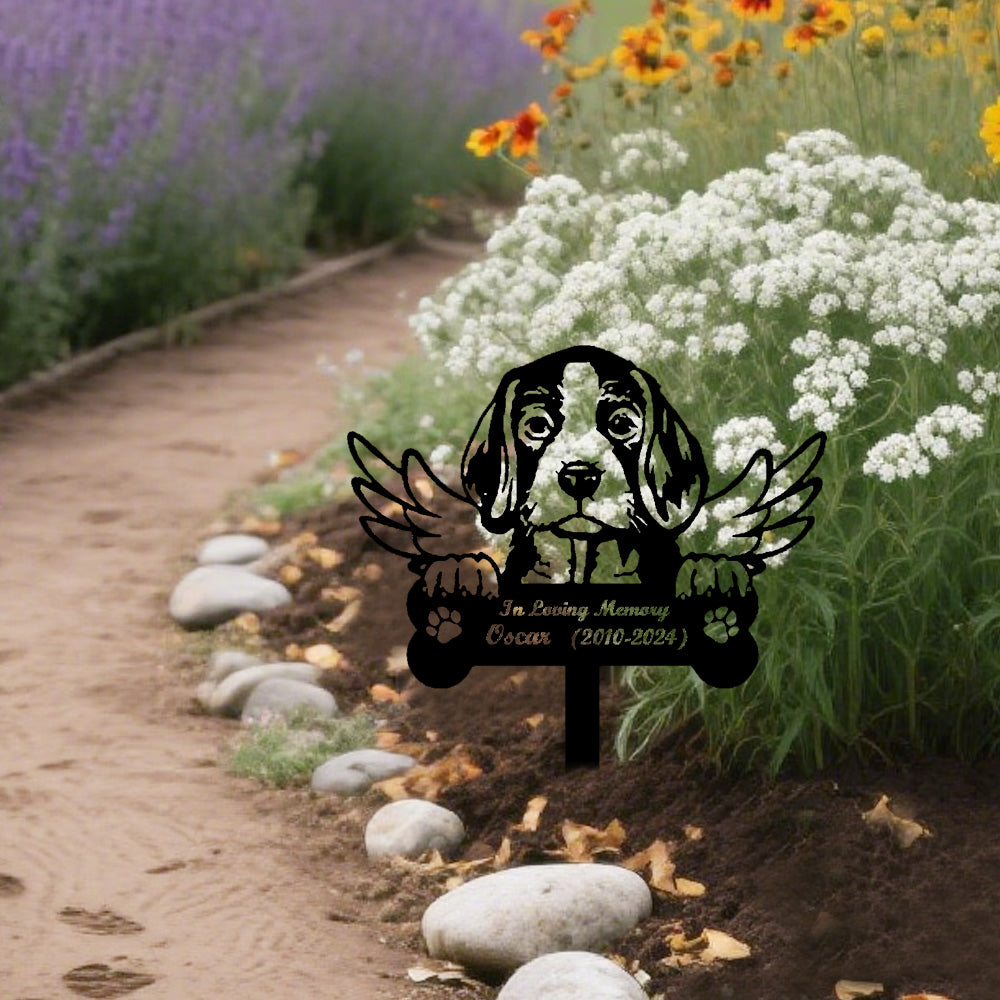 Beagle Dog Custom Memorial Stake with Wings