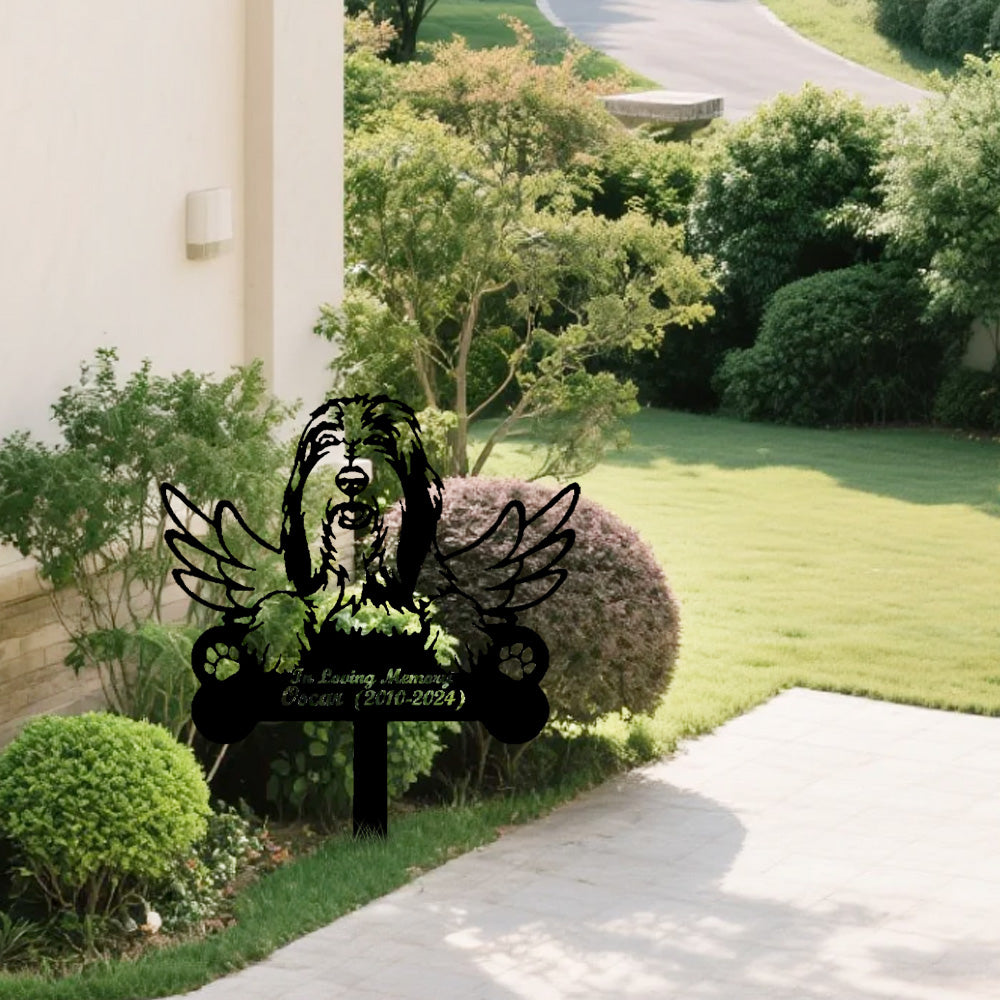 Bearded Collie Dog Custom Memorial Stake with Wings