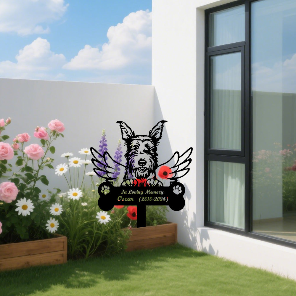 Border Terrier Dog Custom Memorial Stake with Wings
