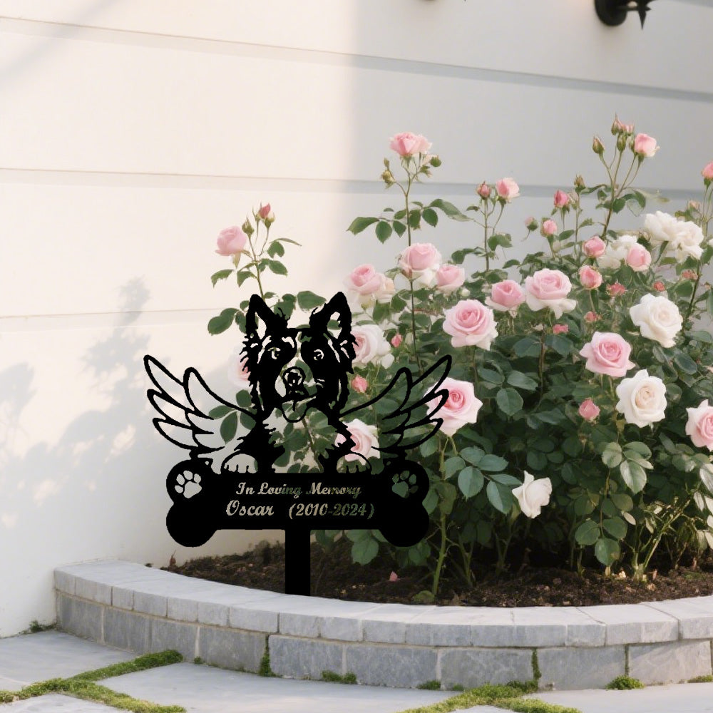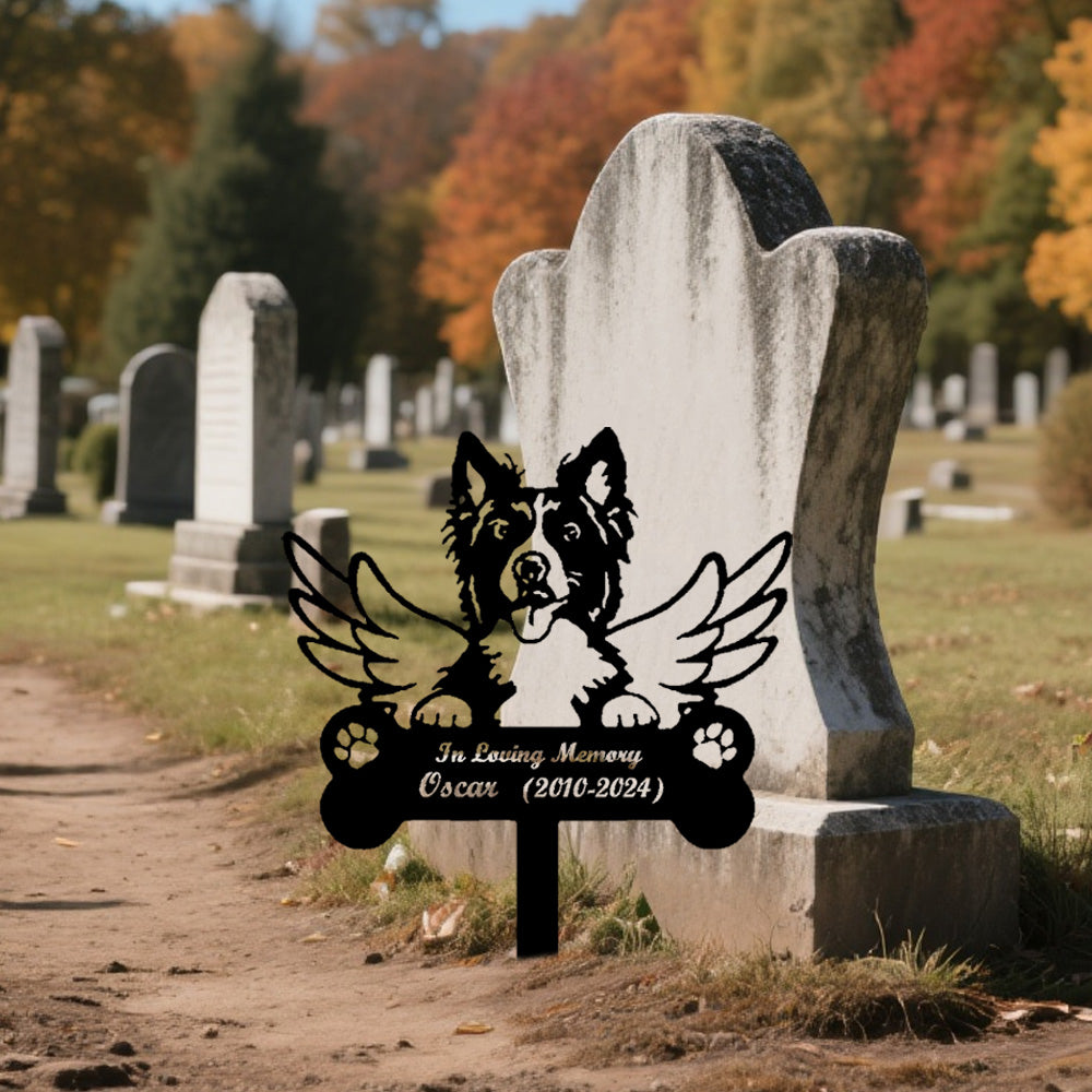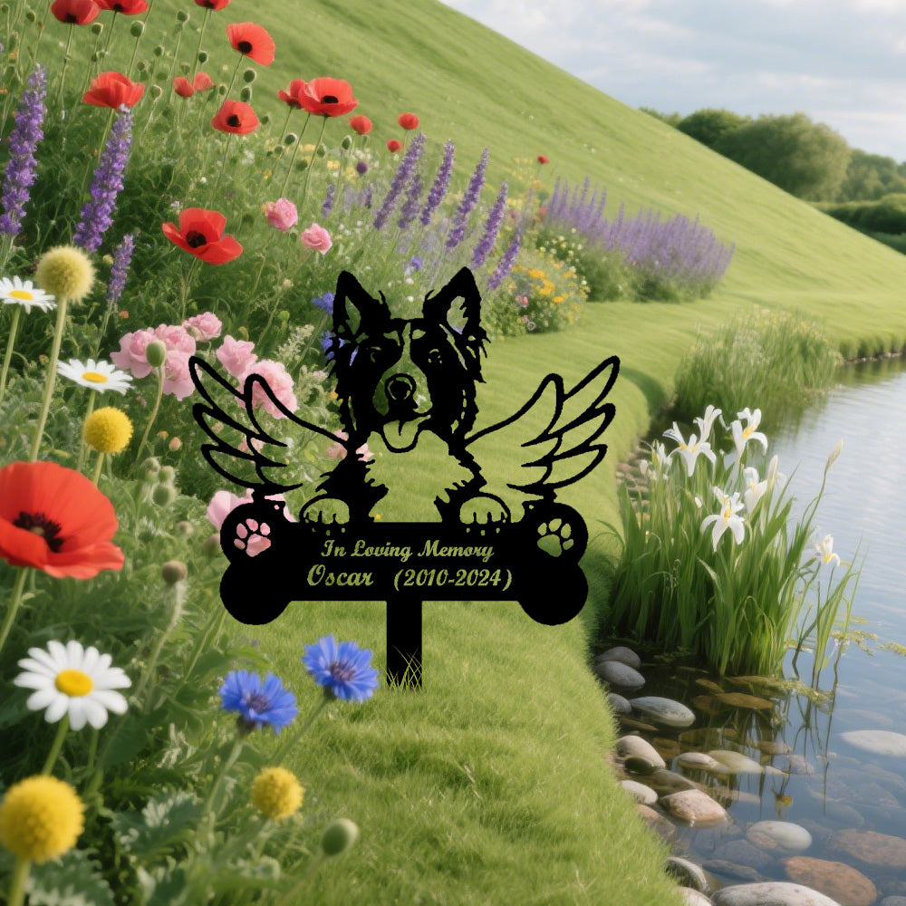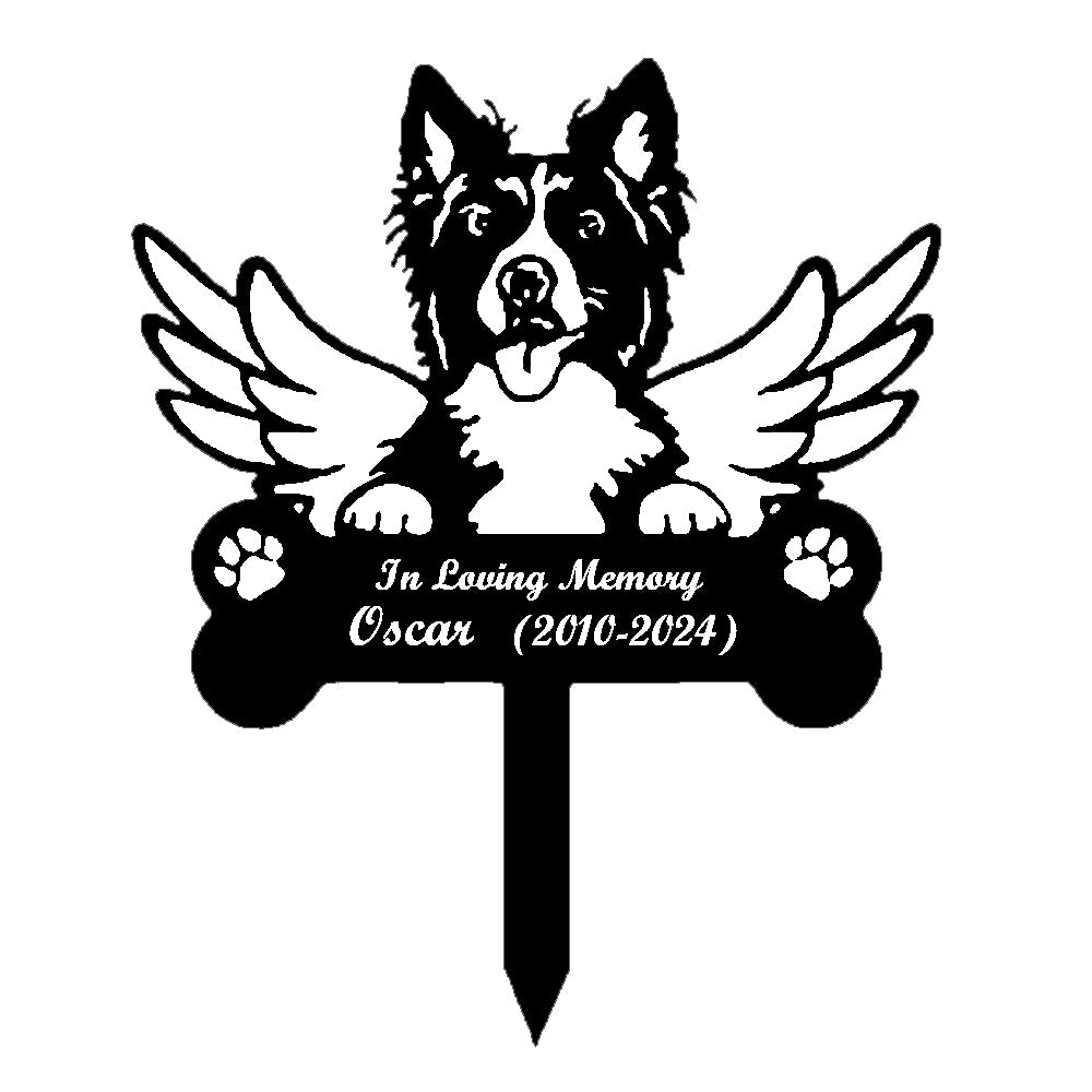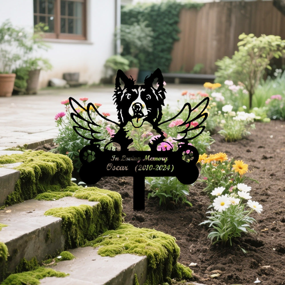 Border Collie Dog Custom Memorial Stake with Wings