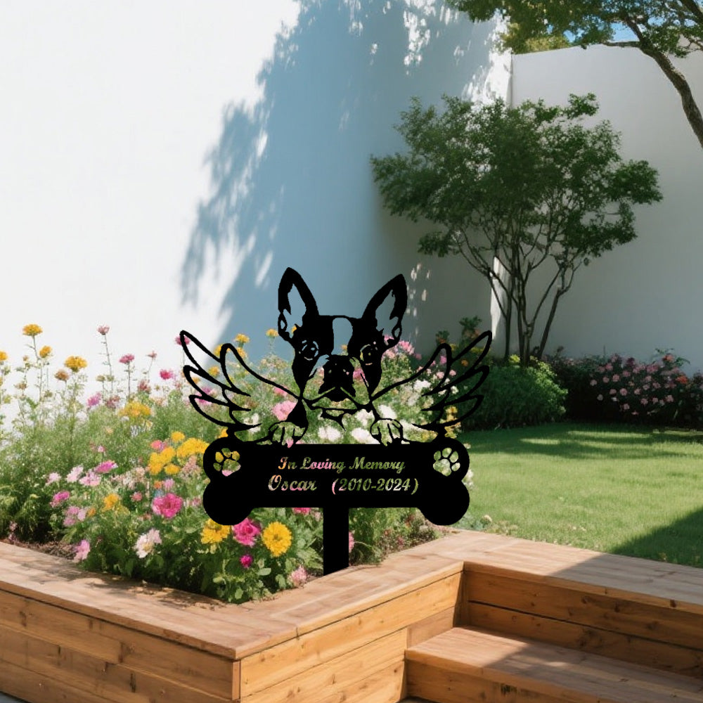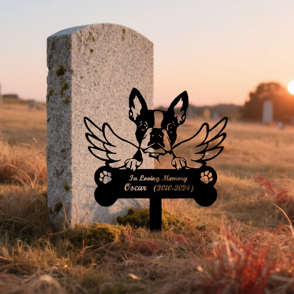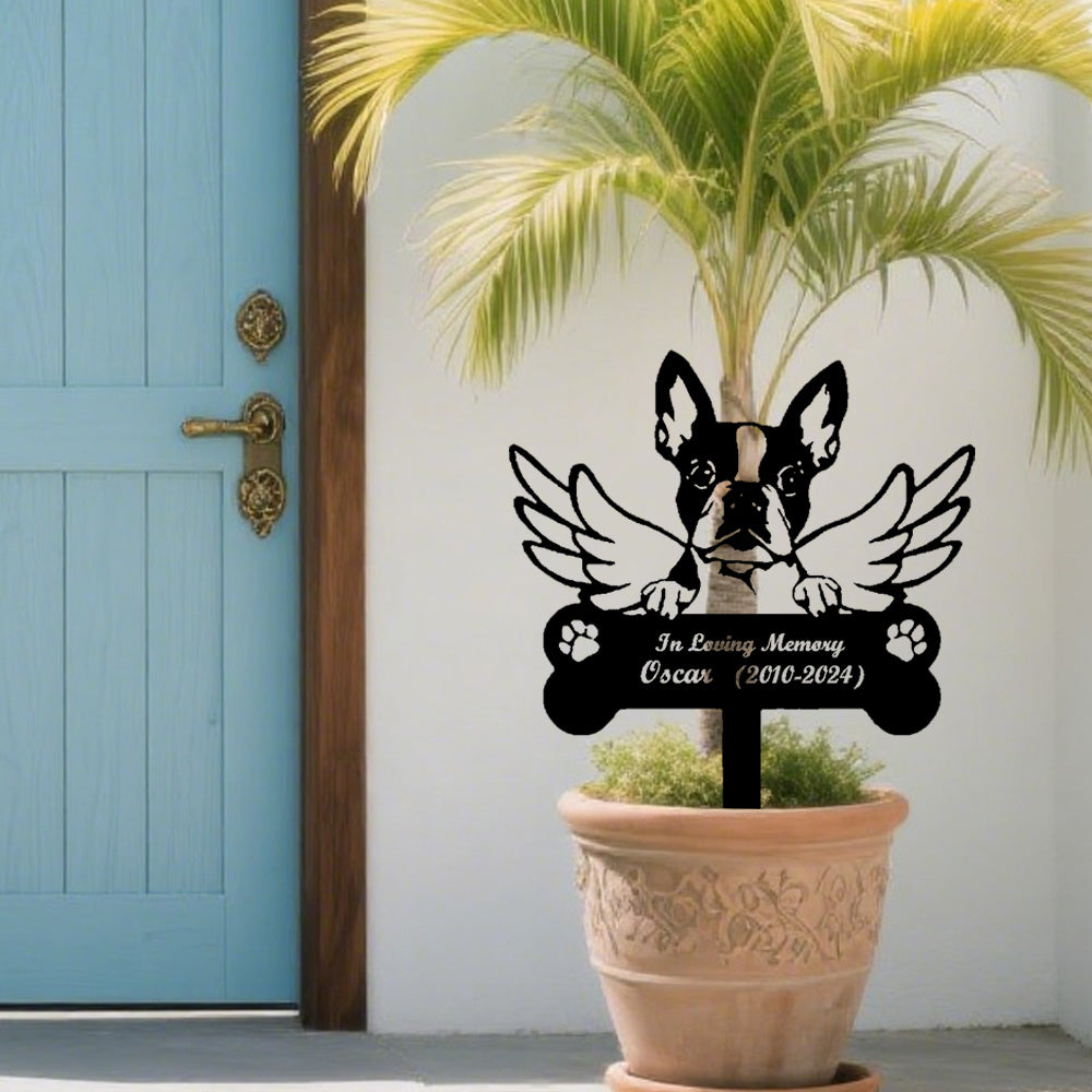 Boston Terrier Dog Custom Memorial Stake with Wings