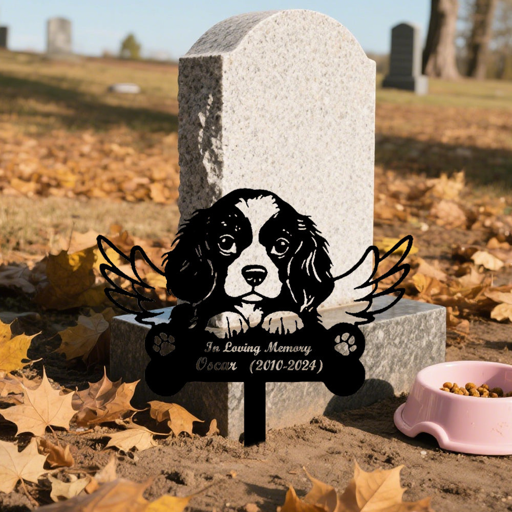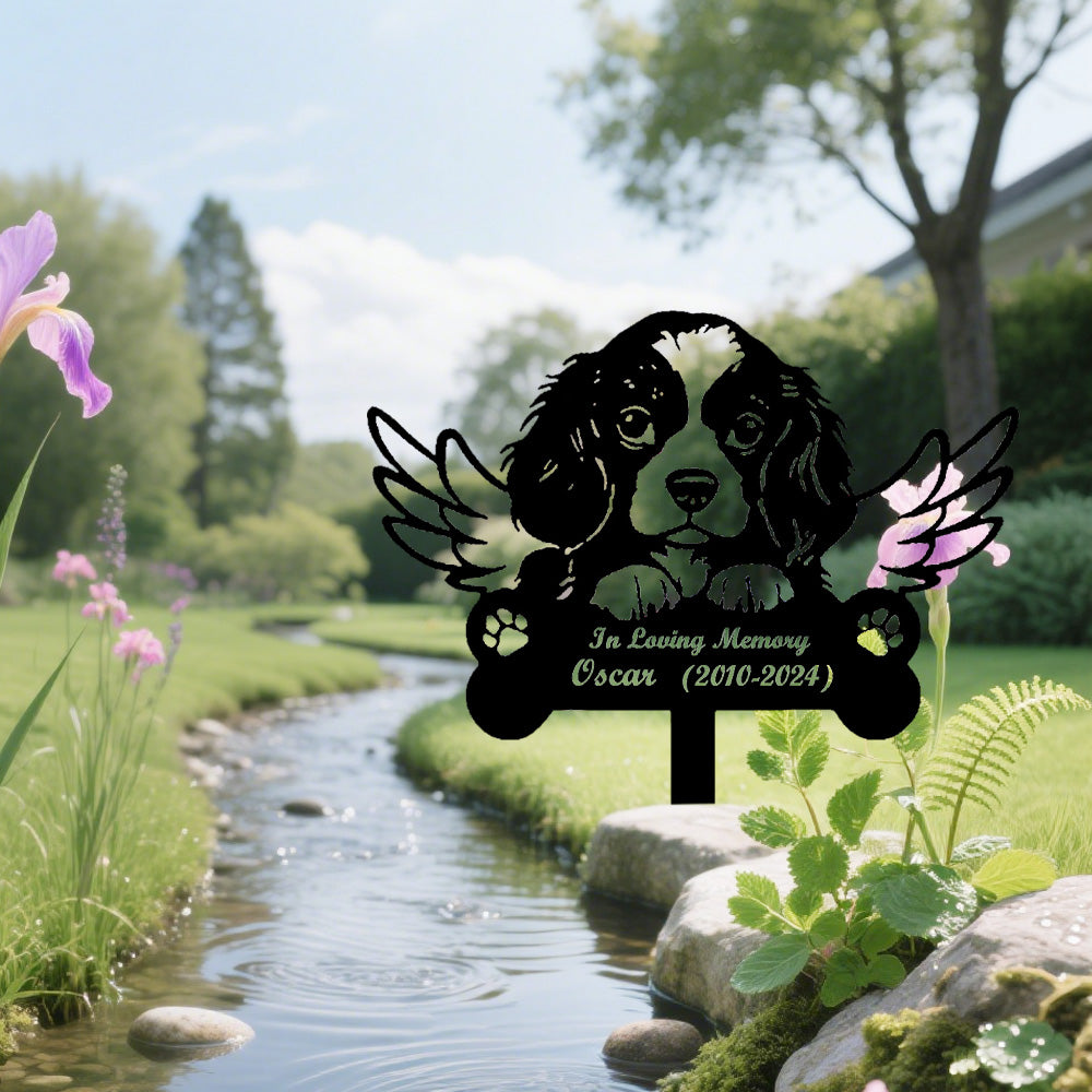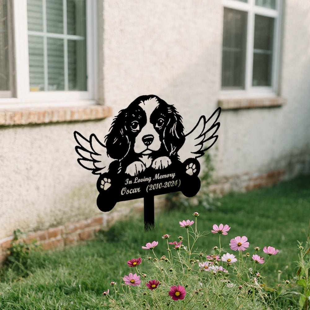 Cavalier King Charles Spaniel Dog Custom Memorial Stake with Wings