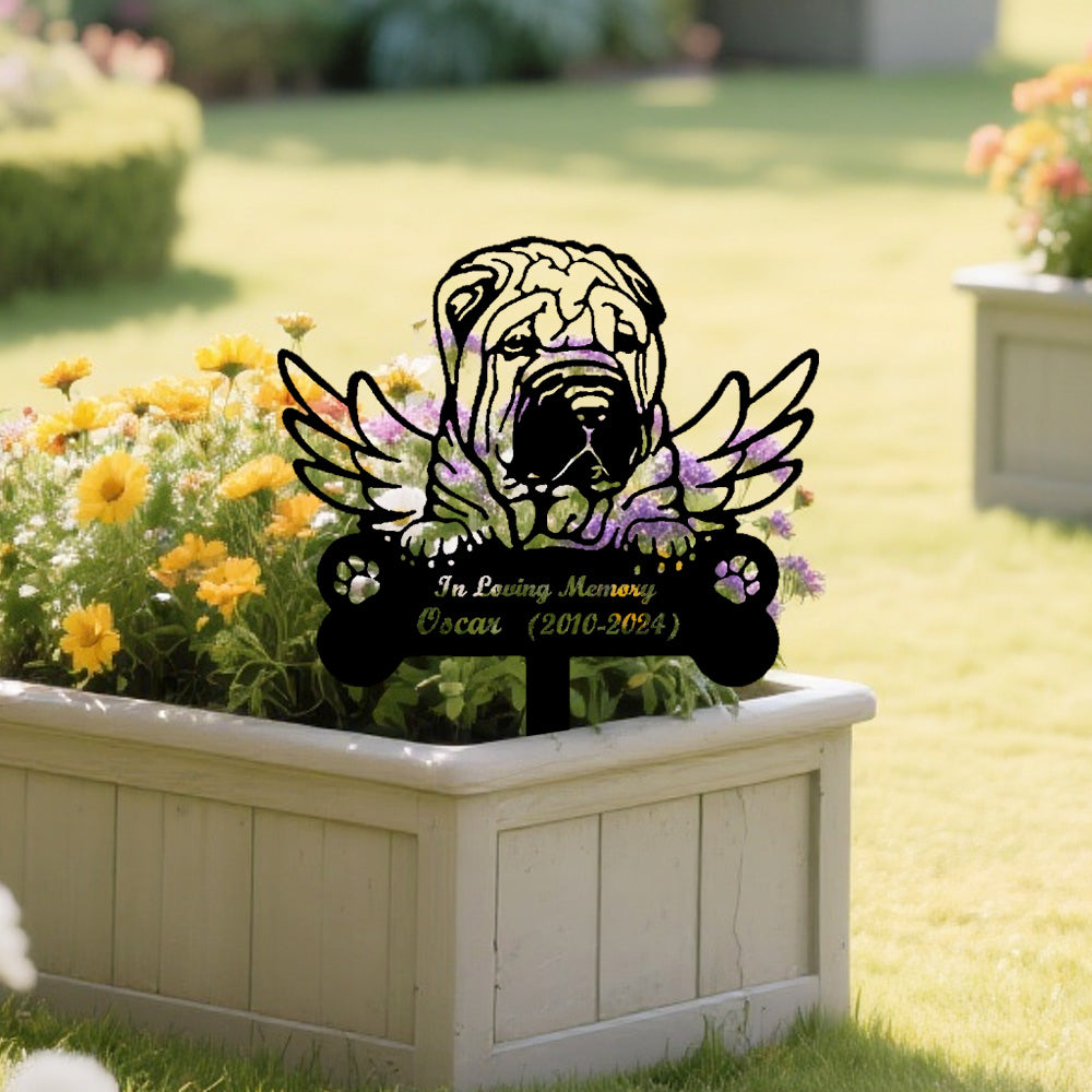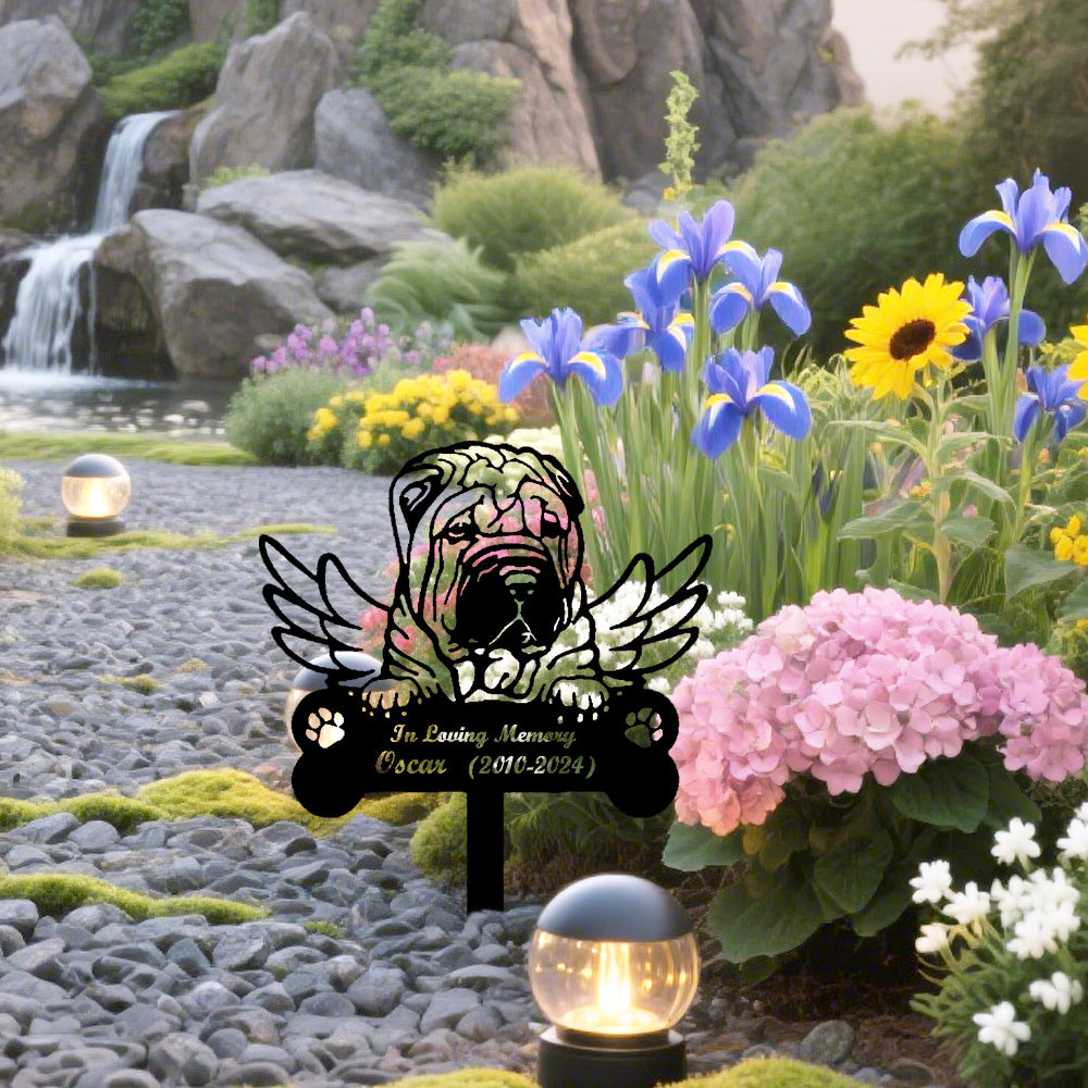 Chinese Shar Pei Dog Custom Memorial Stake with Wings