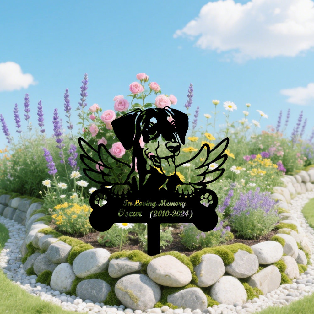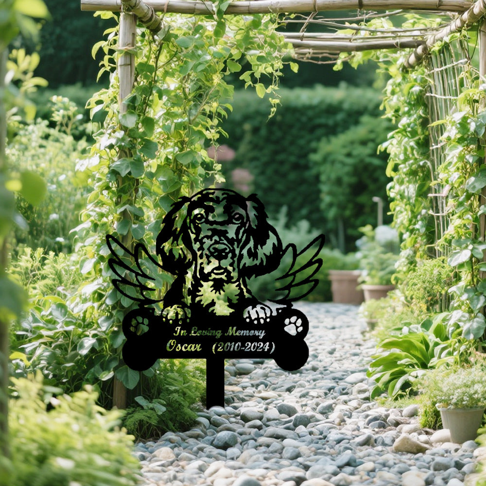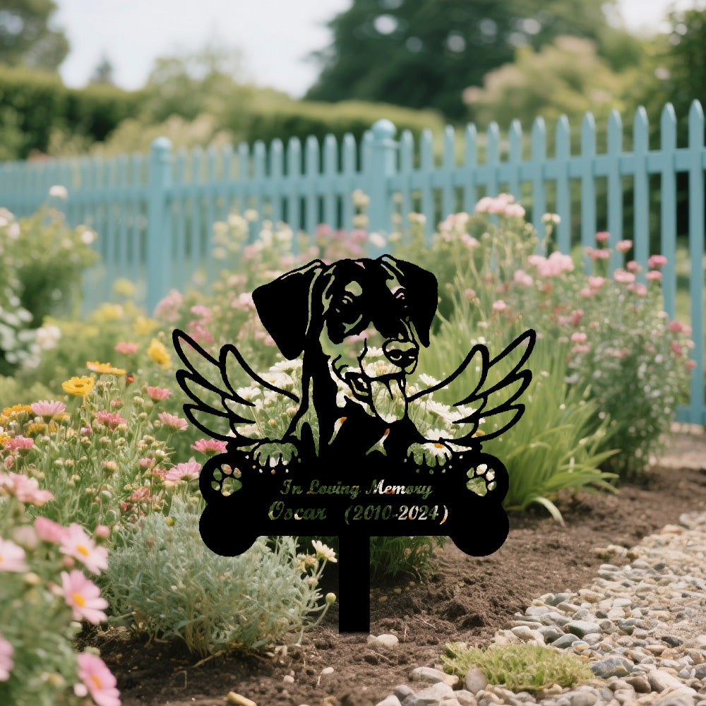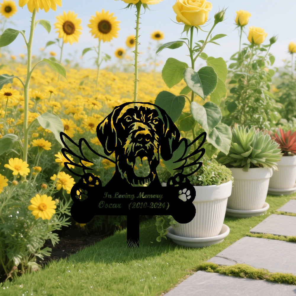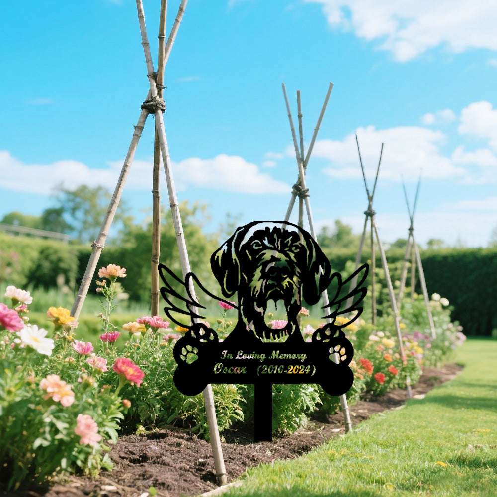 German Wirehaired Pointer Dog Custom Memorial Stake with Wings