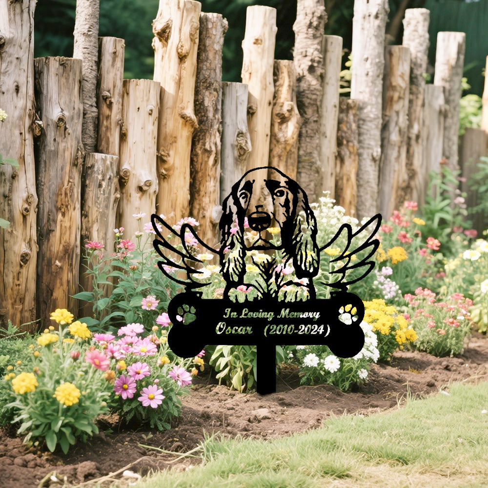 Filed Spaniel Dog Custom Memorial Stake with Wings