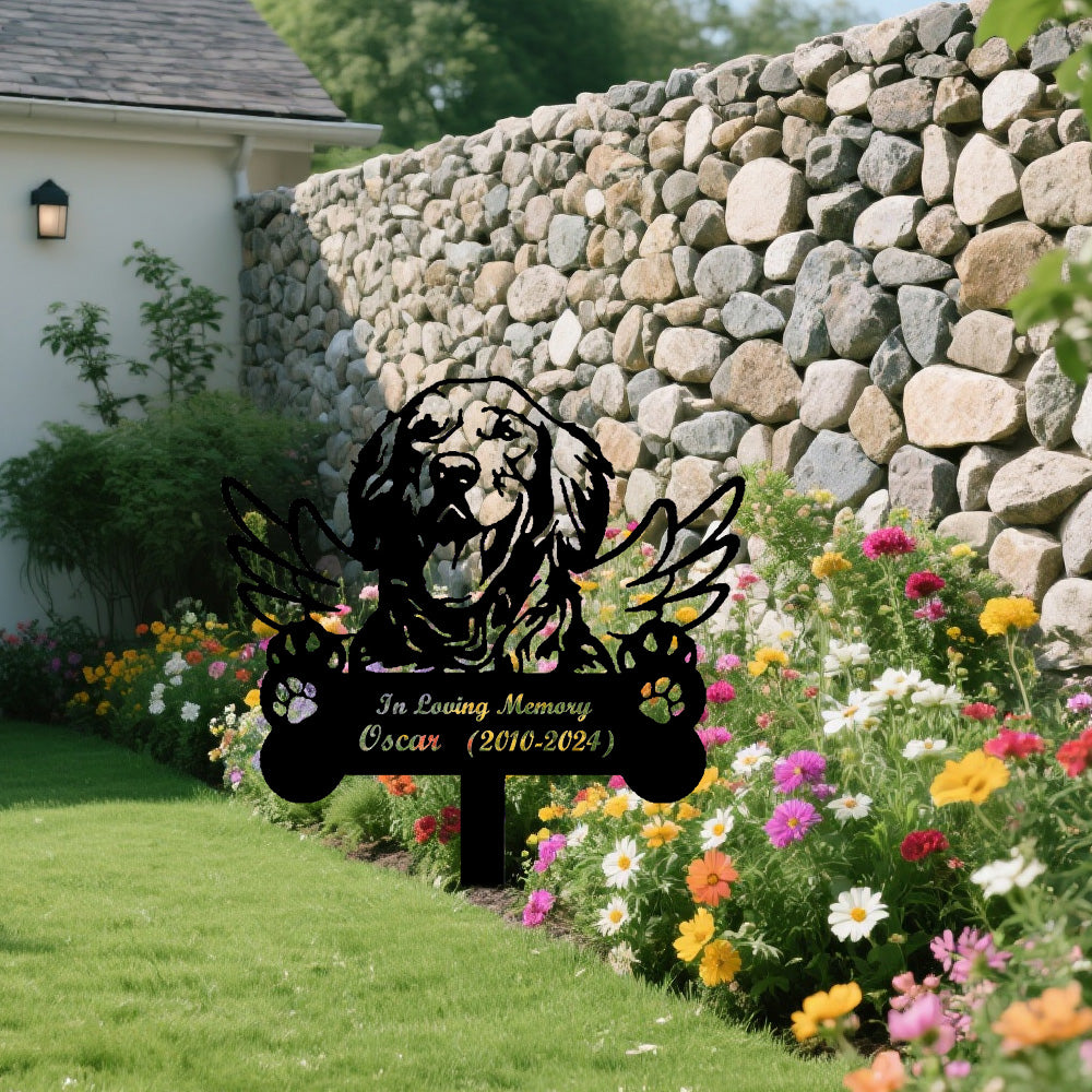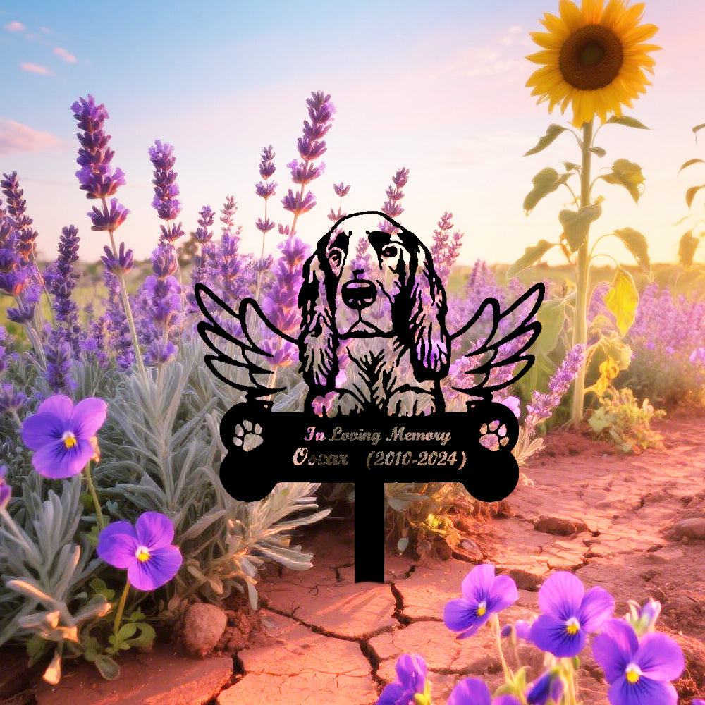 English Setter Dog Custom Memorial Stake with Wings