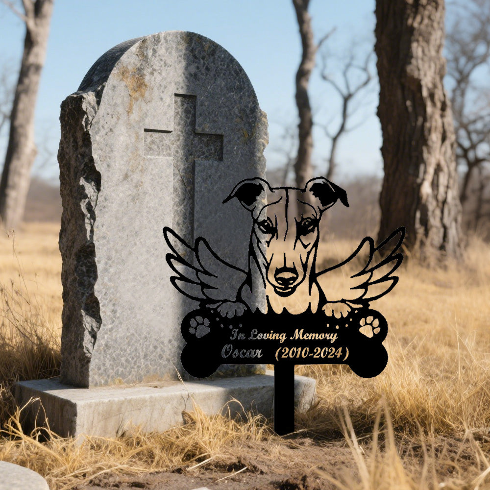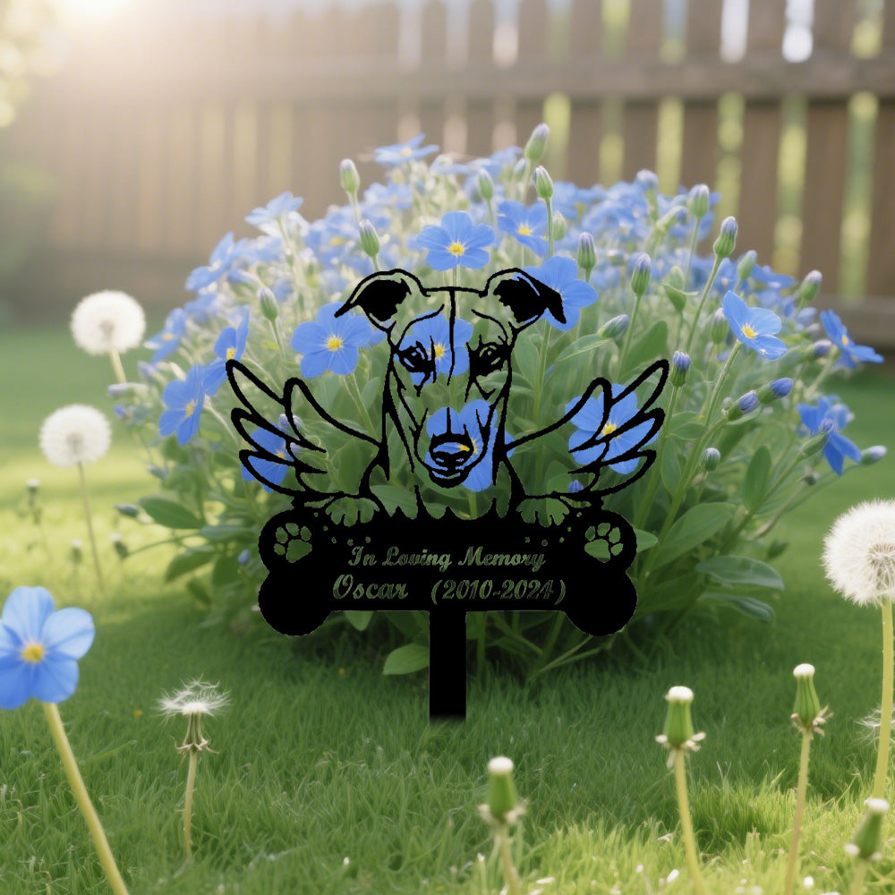 Greyhound Dog Custom Memorial Stake with Wings