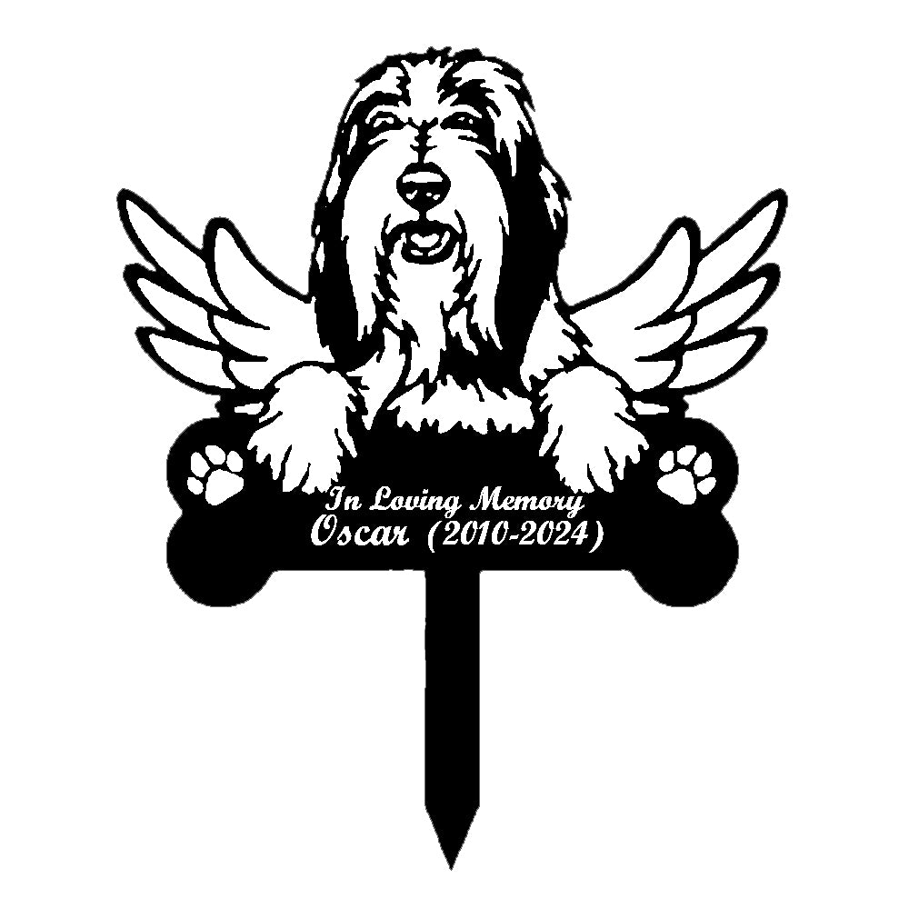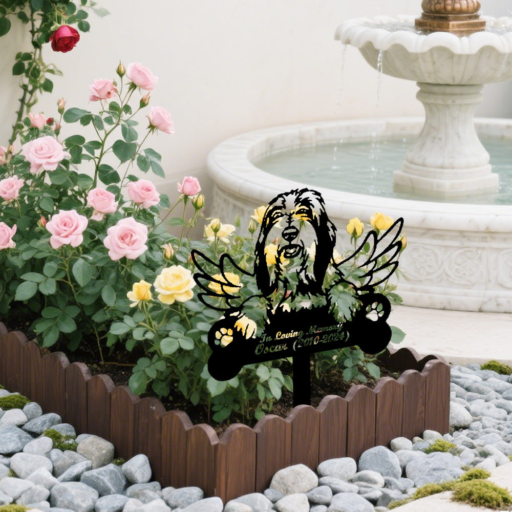 Bearded Collie Dog Custom Memorial Stake with Wings