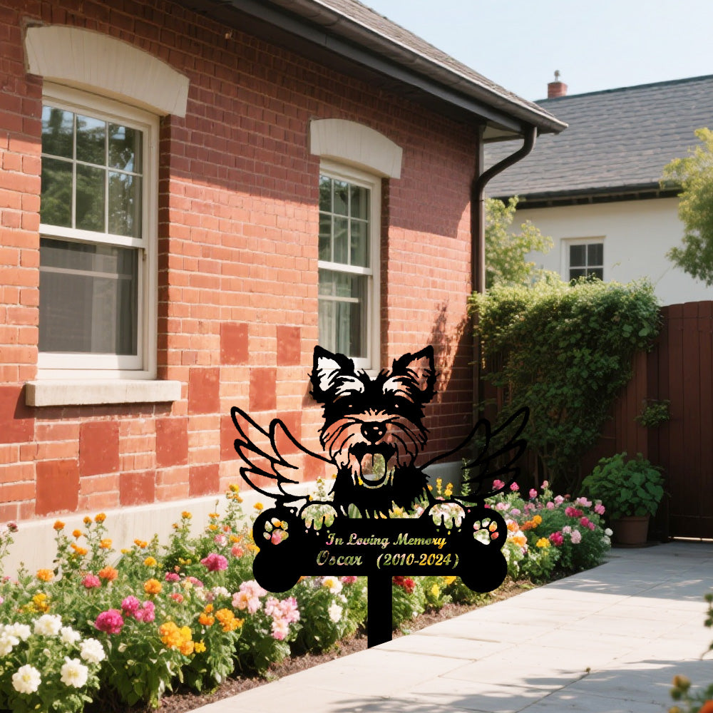 Biewer Terrier Dog Custom Memorial Stake with Wings
