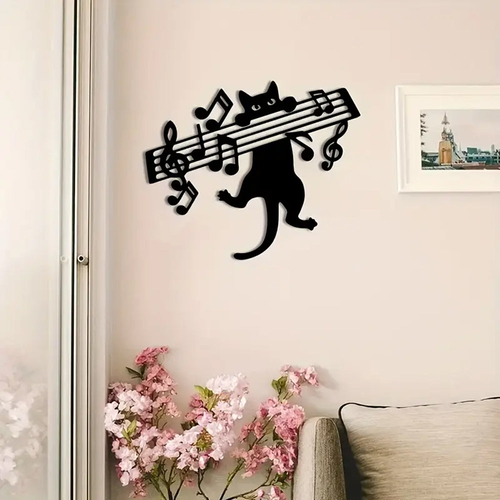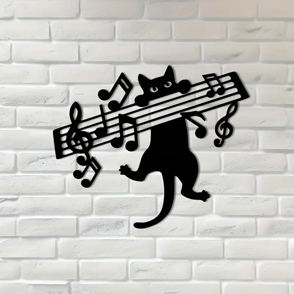 Cat Playing Music Notes Sign Metal Wall Art Decoration