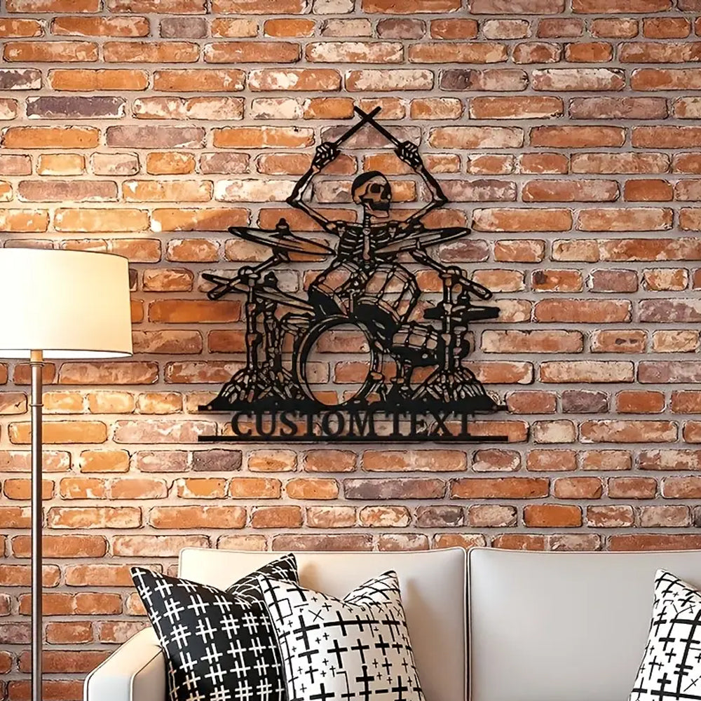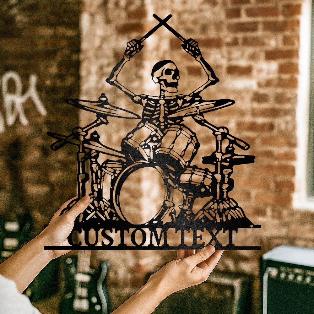 Custom Drummer Skeleton Sign Metal Wall Art Decoration