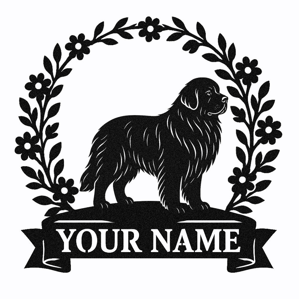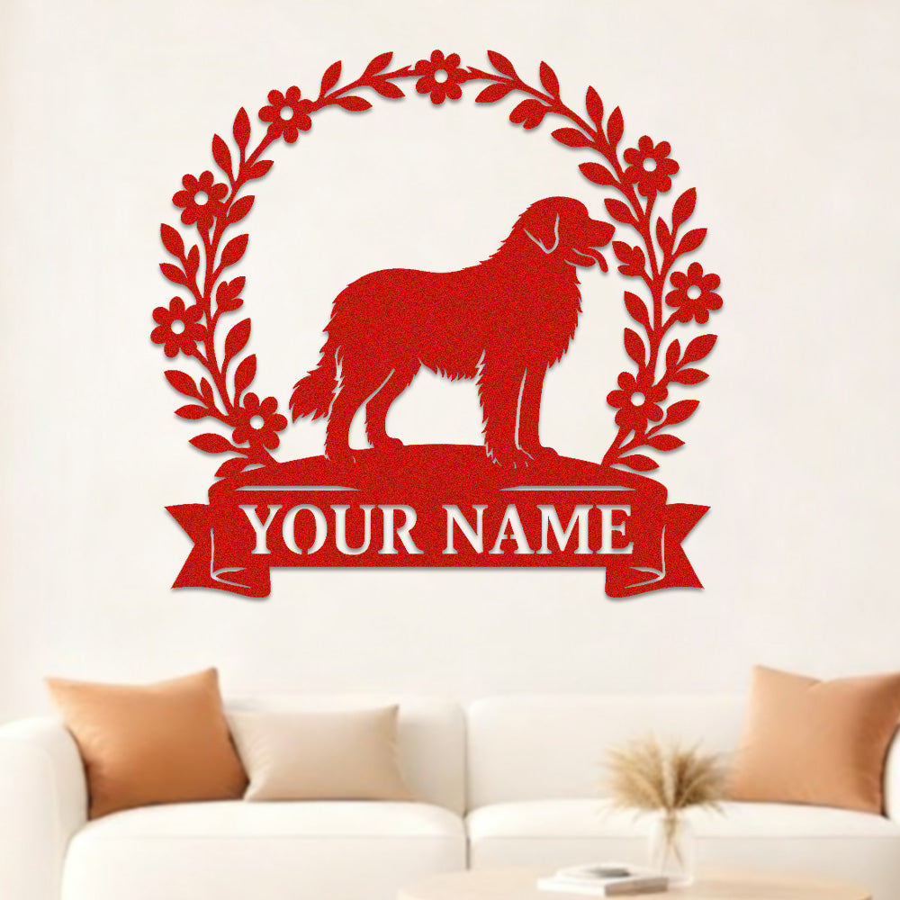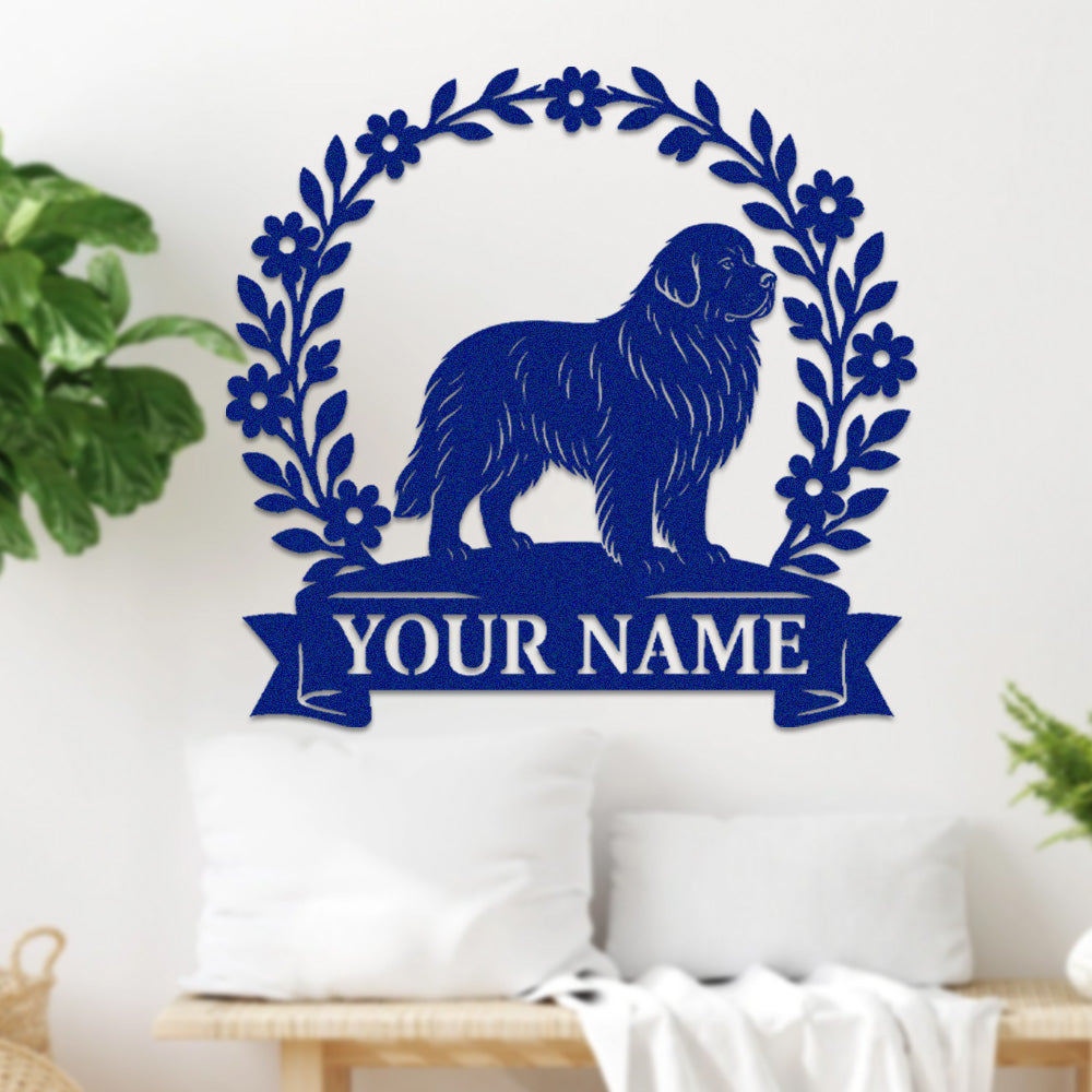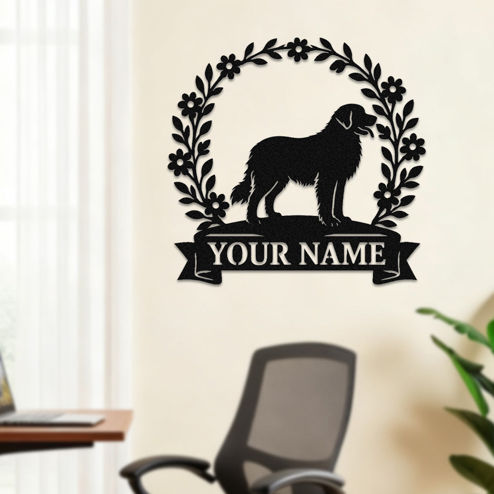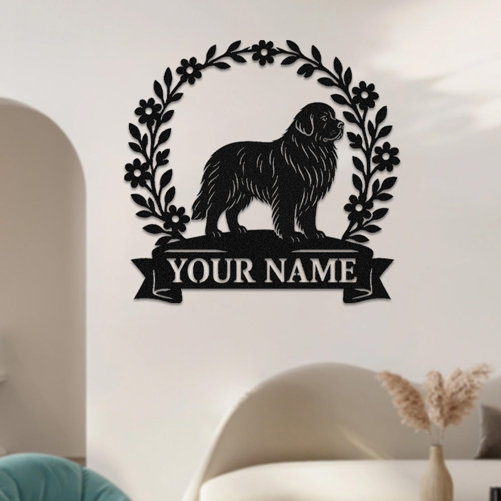 Newfoundland Wreath Metal Wall Art Dog Lover Personalized Memorial Metal Sign