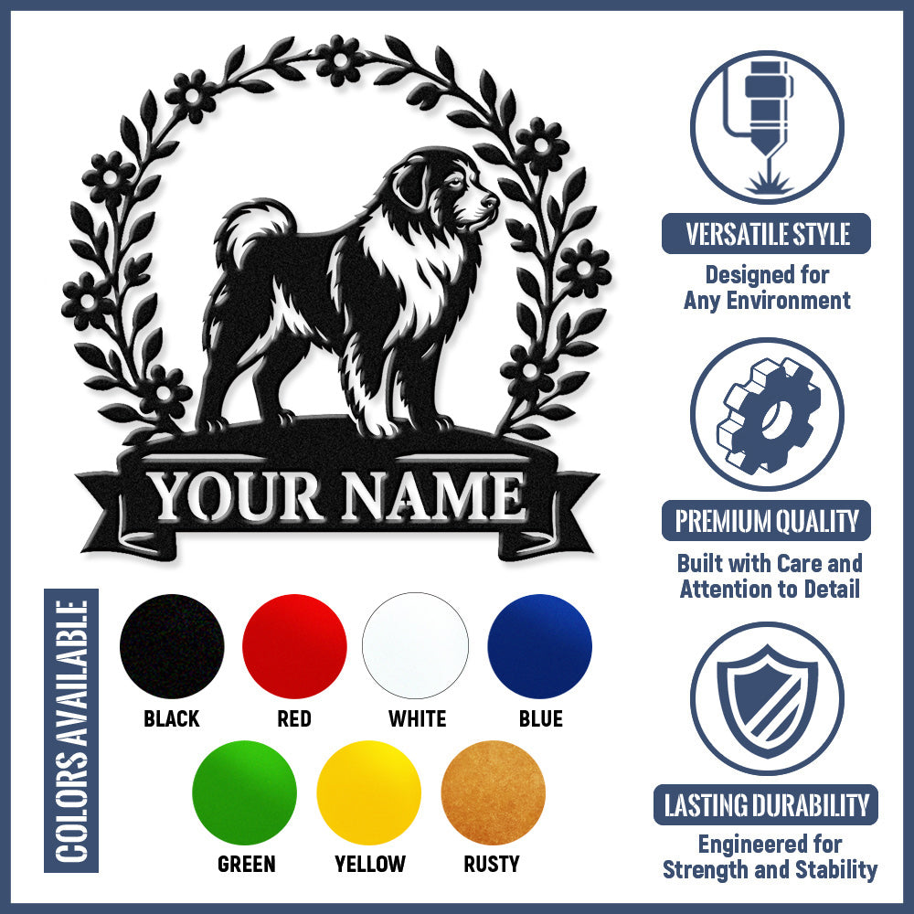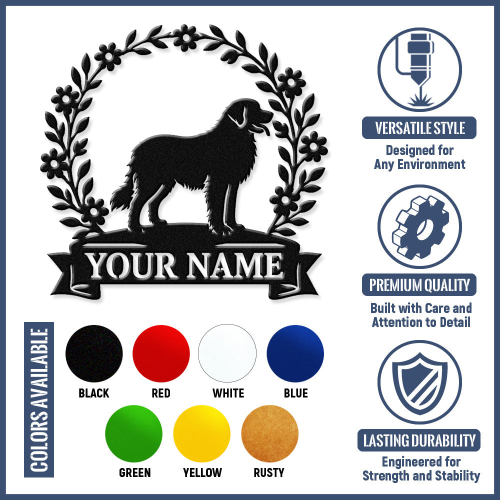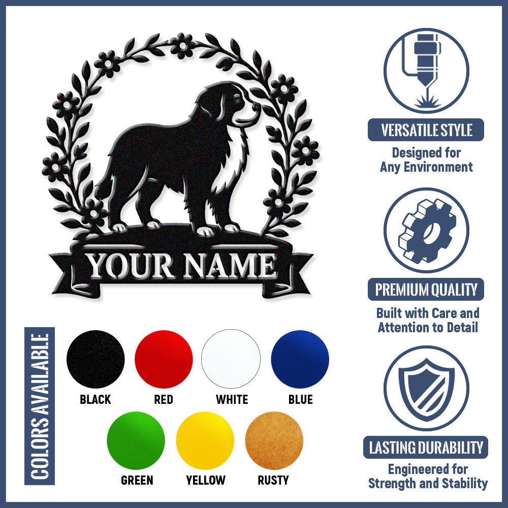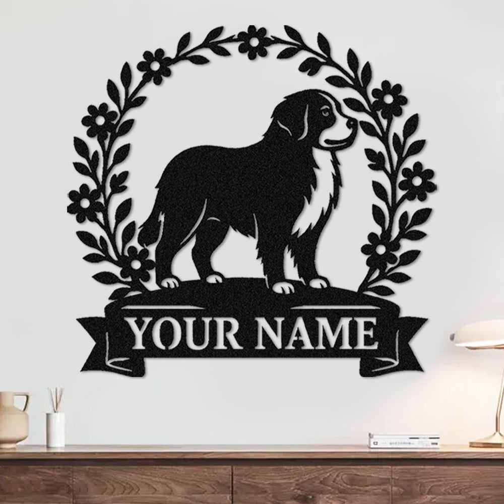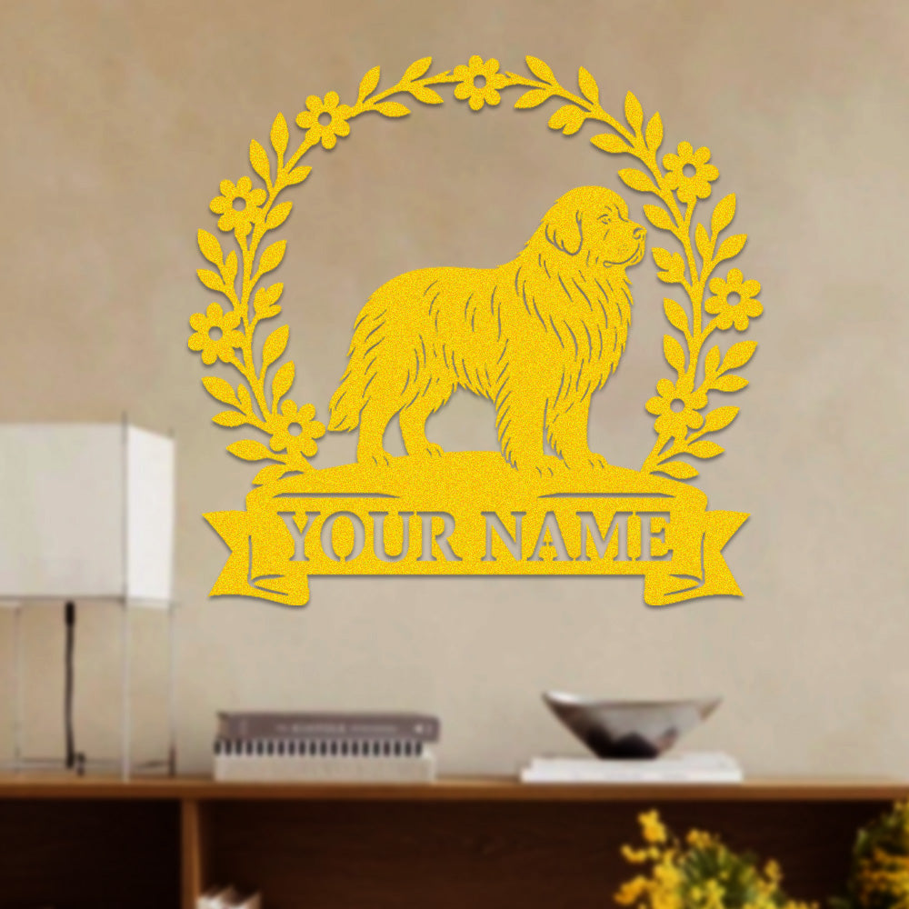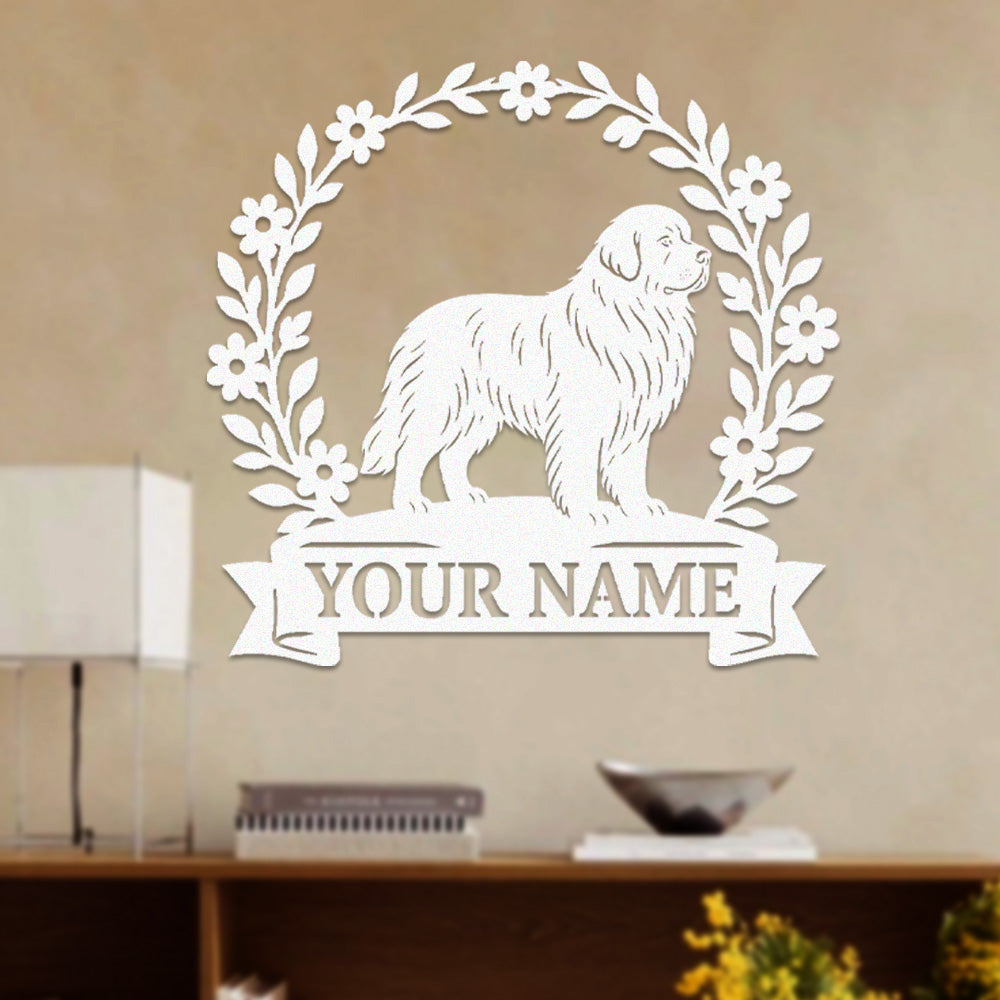 Newfoundland Wreath Metal Wall Art Dog Lover Personalized Memorial Metal Sign