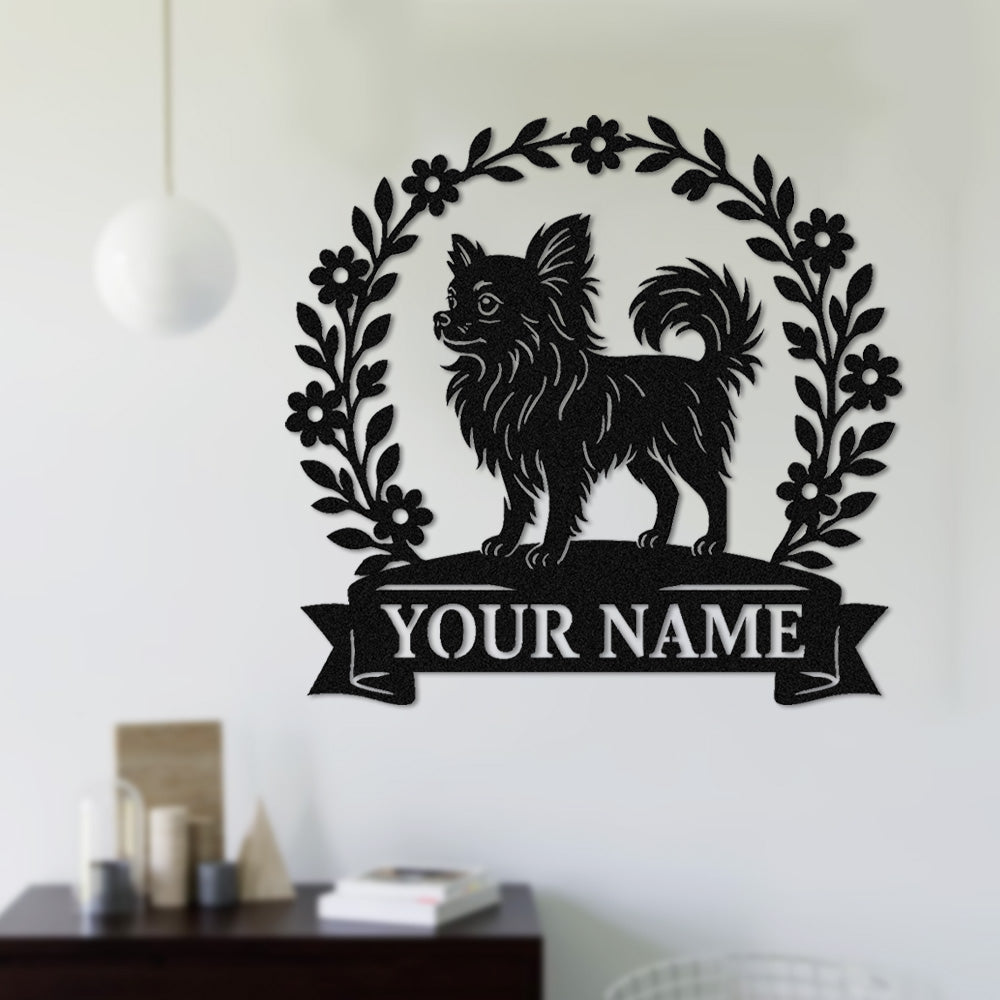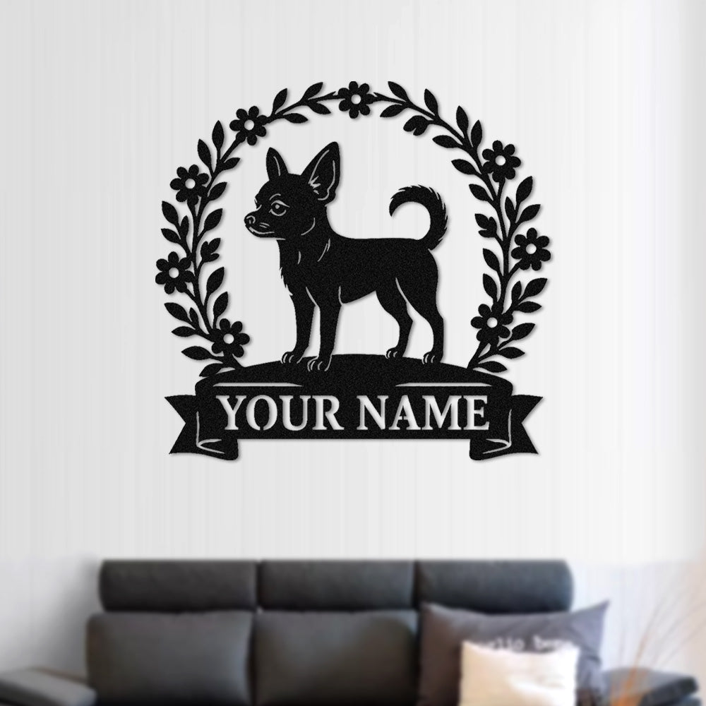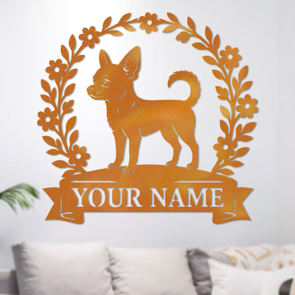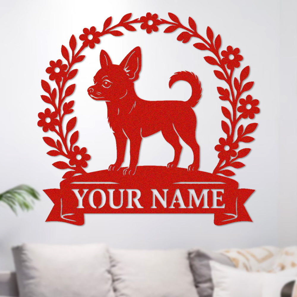 Chihuahua Wreath Metal Wall Art Dog Lover Personalized Memorial Metal Sign
