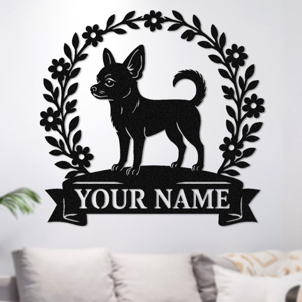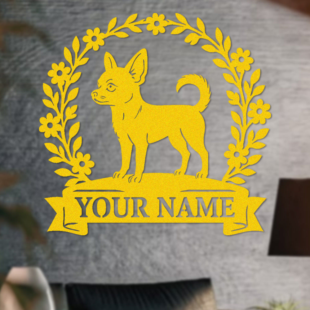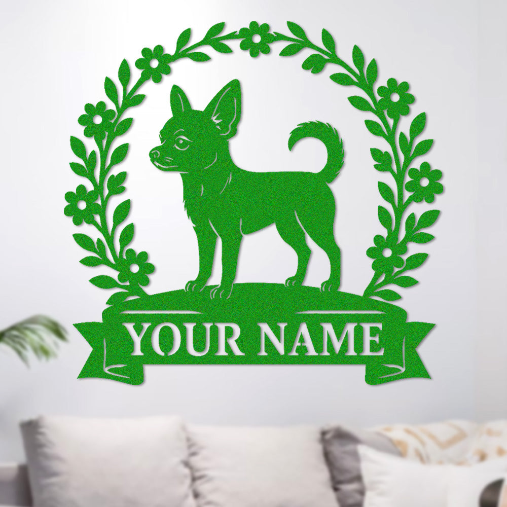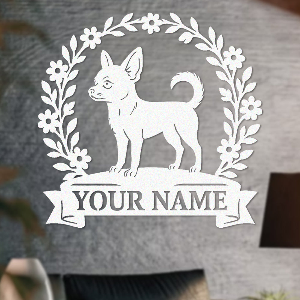 Short-haired Chihuahua Wreath Metal Wall Art Dog Lover Personalized Memorial Metal Sign